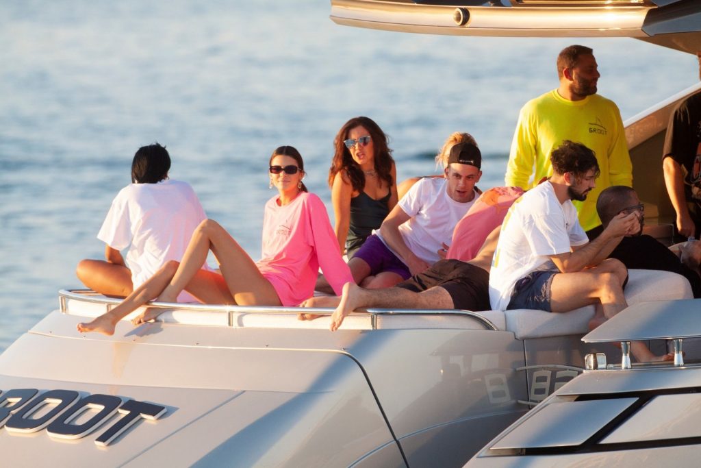 Кендалл Дженнер и друзья отправляются в круиз на роскошной яхте Дэвида Грутмана Groot, и супермодель демонстрирует свою потрясающую фигуру, отдыхая на палубе, 12/06/2019. Кендалл читает книгу, наслаждаясь солнцем Майами.