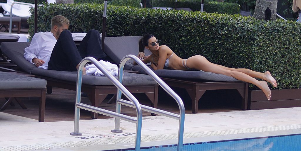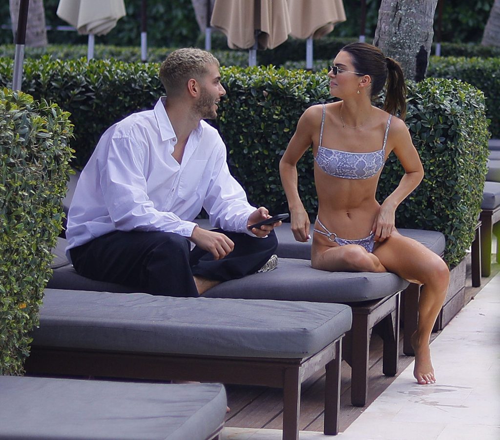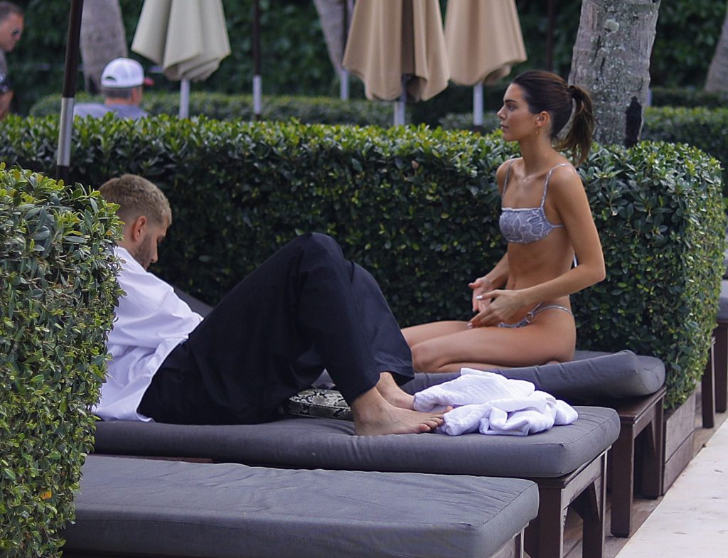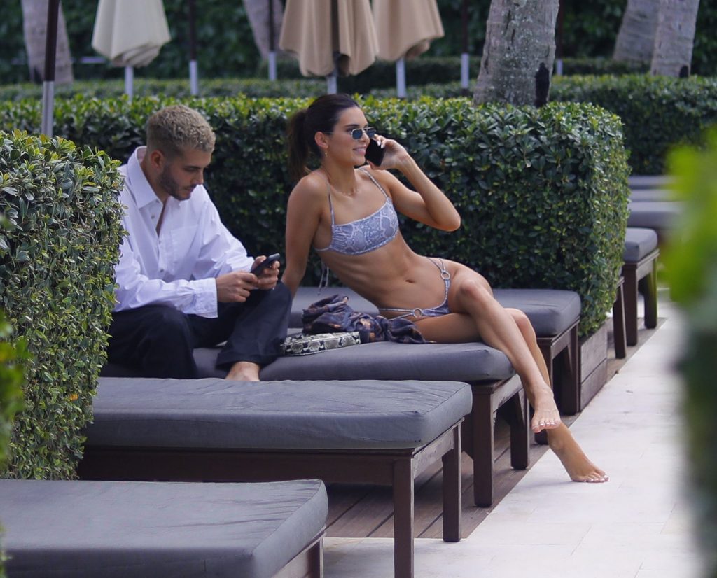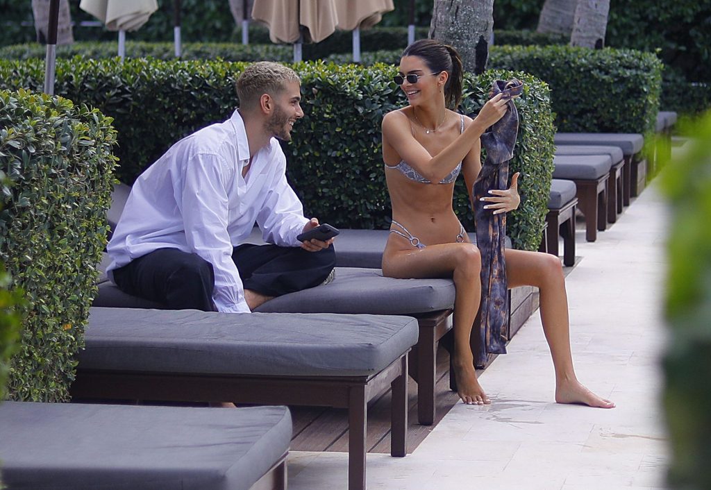 Модель Кендалл Дженнер носит очень откровенный бикини, отдыхая у бассейна вместе с моделью Фаи Хадра в Майами, 12/04/2019.