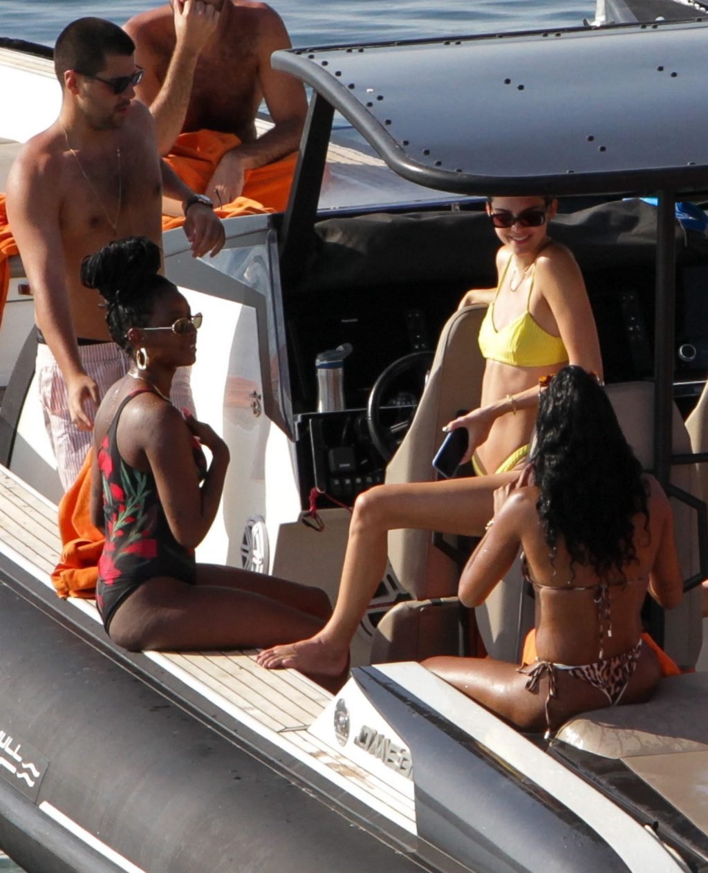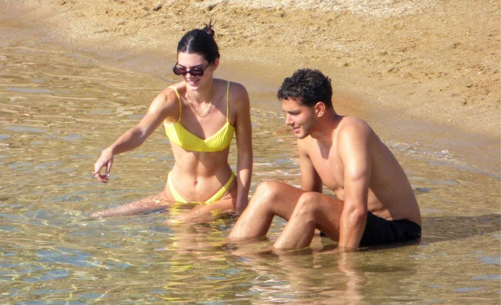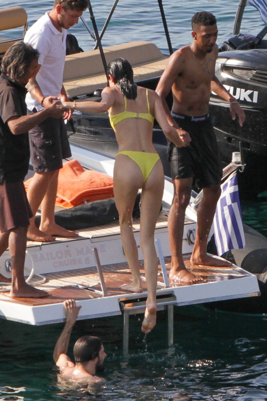 Модель Кендалл Дженнер была замечена в желтом бикини, веселящейся с друзьями на пляже острова Миконос, Греция, 07/08/2019.