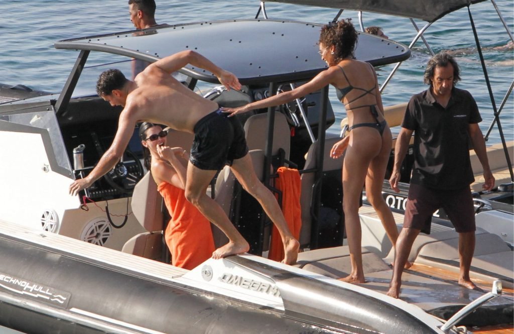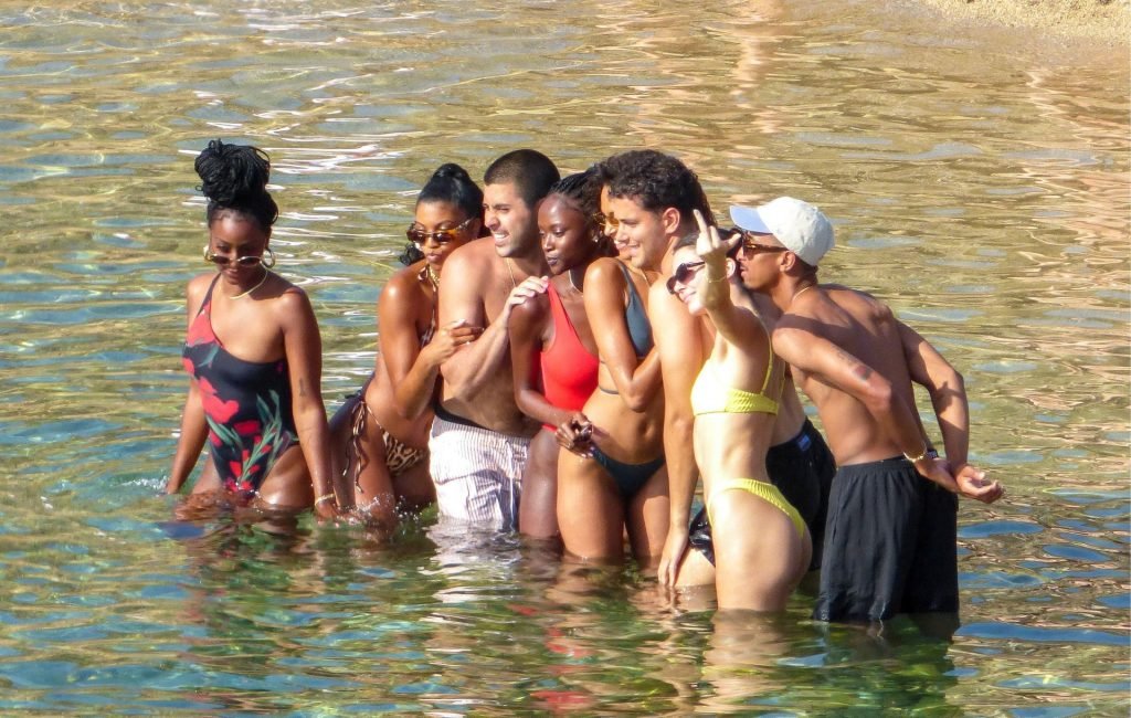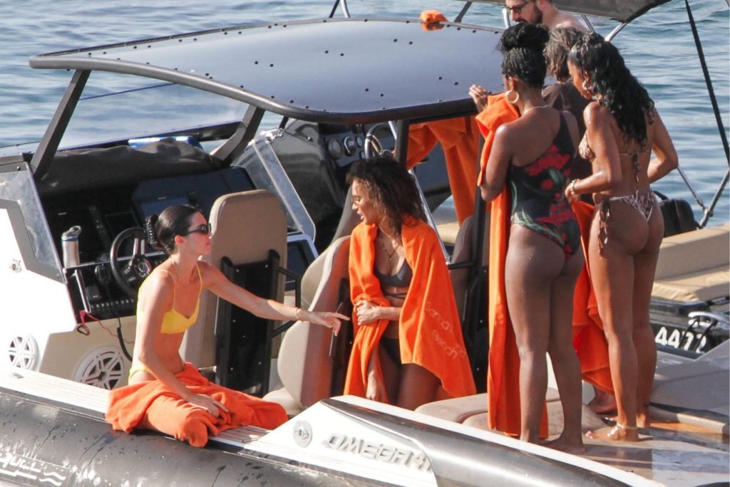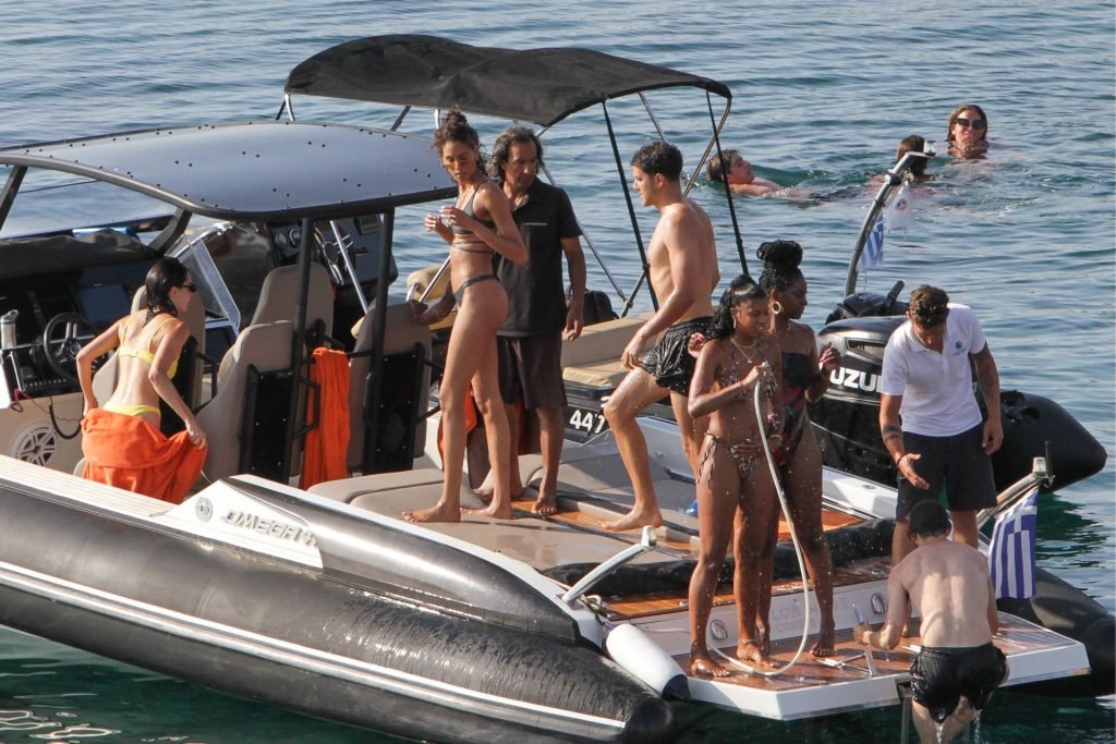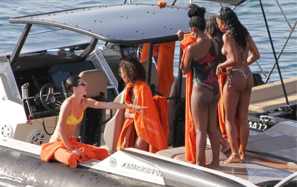 Модель Кендалл Дженнер была замечена в желтом бикини, веселящейся с друзьями на пляже острова Миконос, Греция, 07/08/2019.