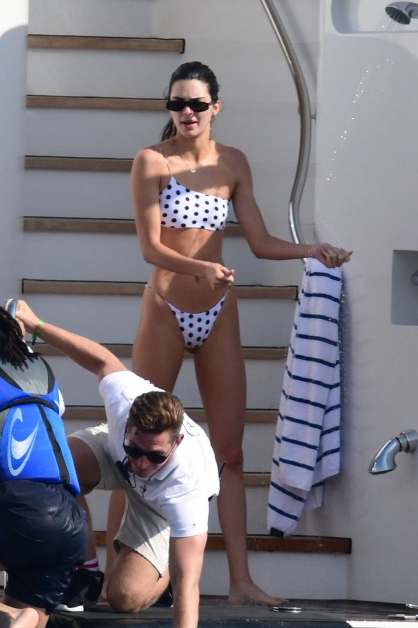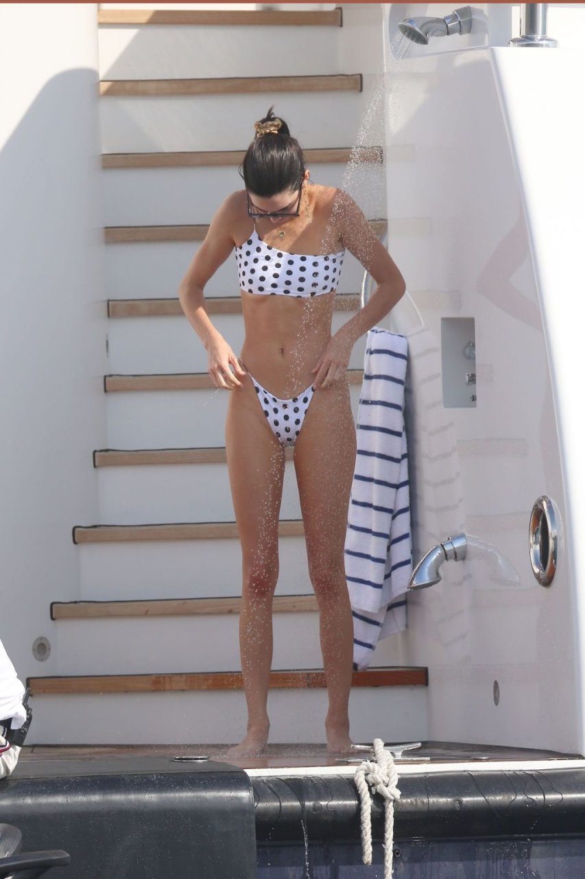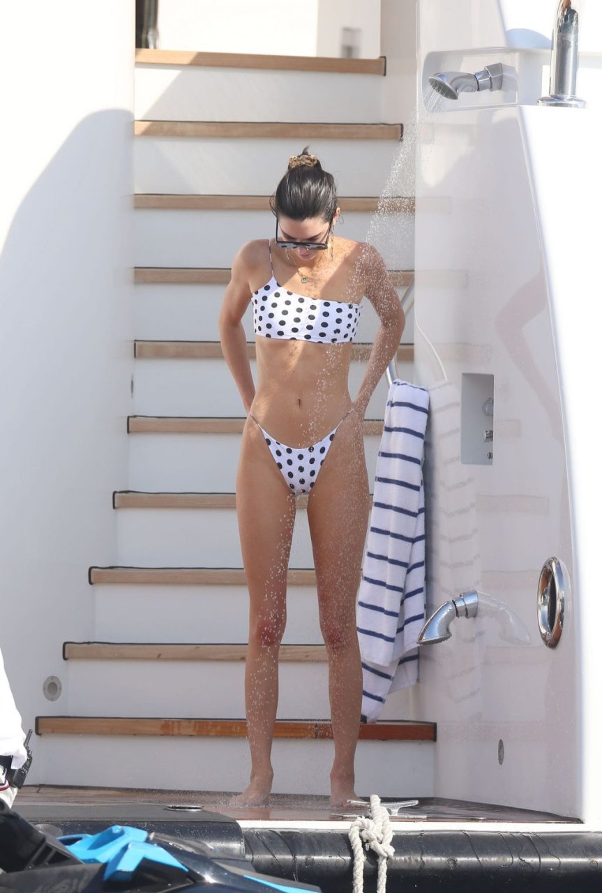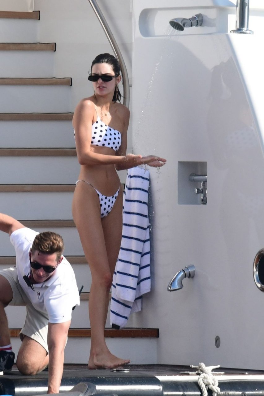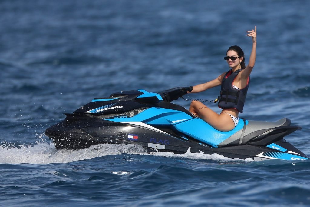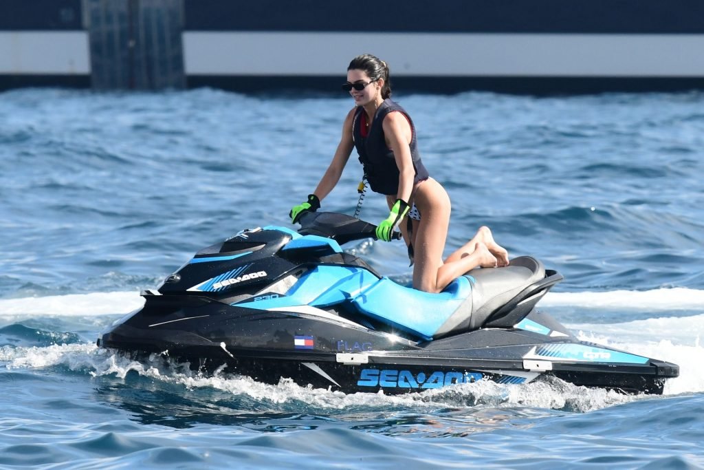 Модель Кендалл Дженнер катается на гидроцикле и после принимает душ, демонстрируя свою потрясающую фигуру в бикини в Монако, Франция, 25.05.2019.