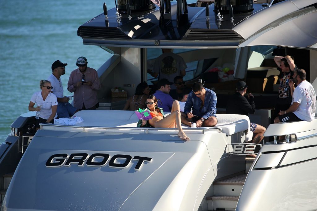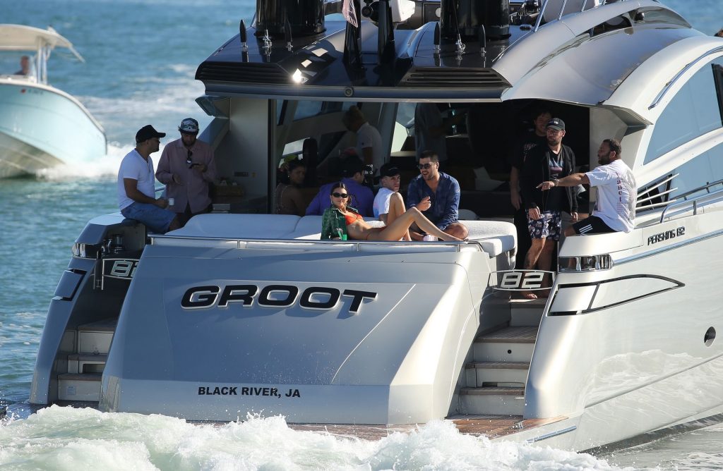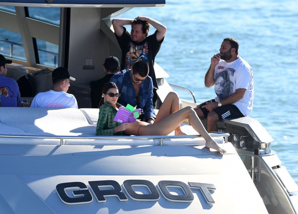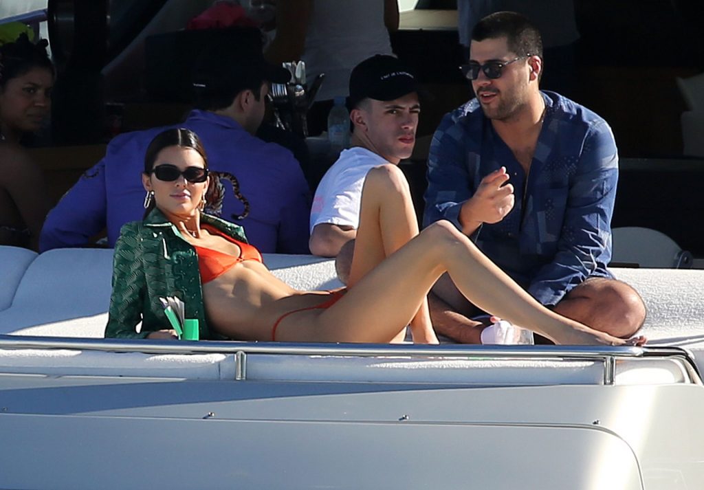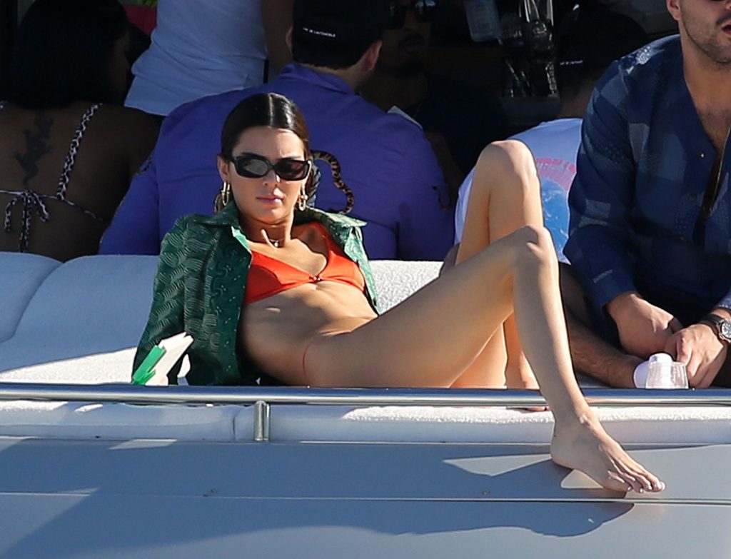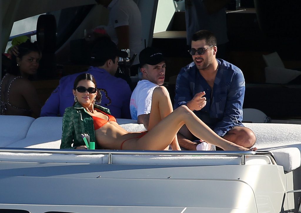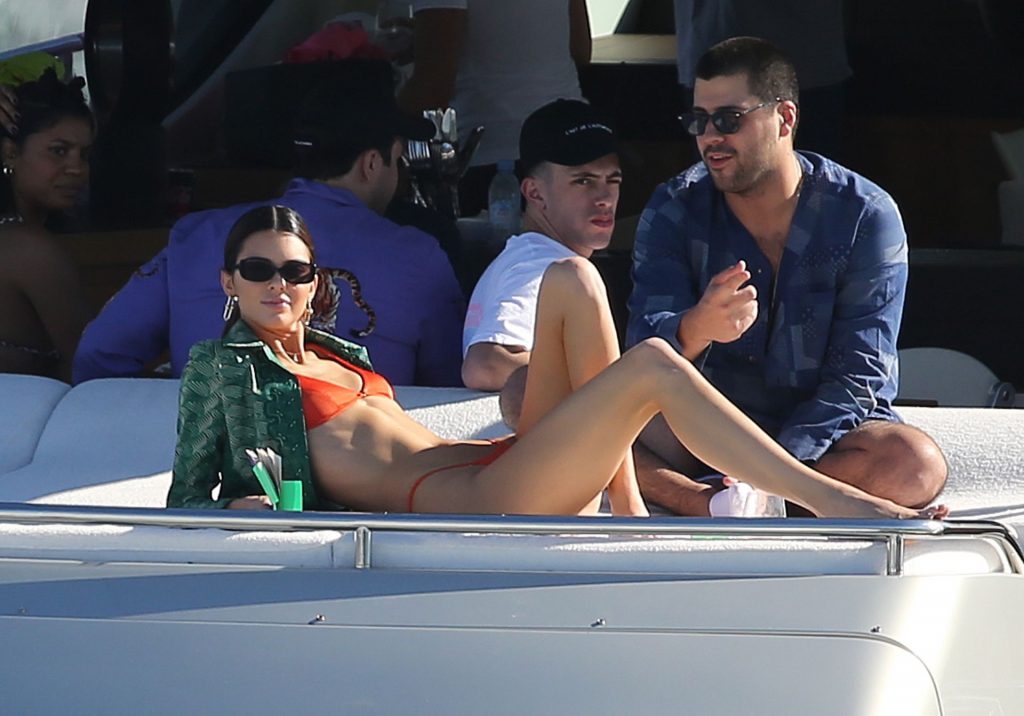 Модель Кендалл Дженнер в крошечном красном бикини катается на яхте SS Groot в Майами, 12/06/2019.