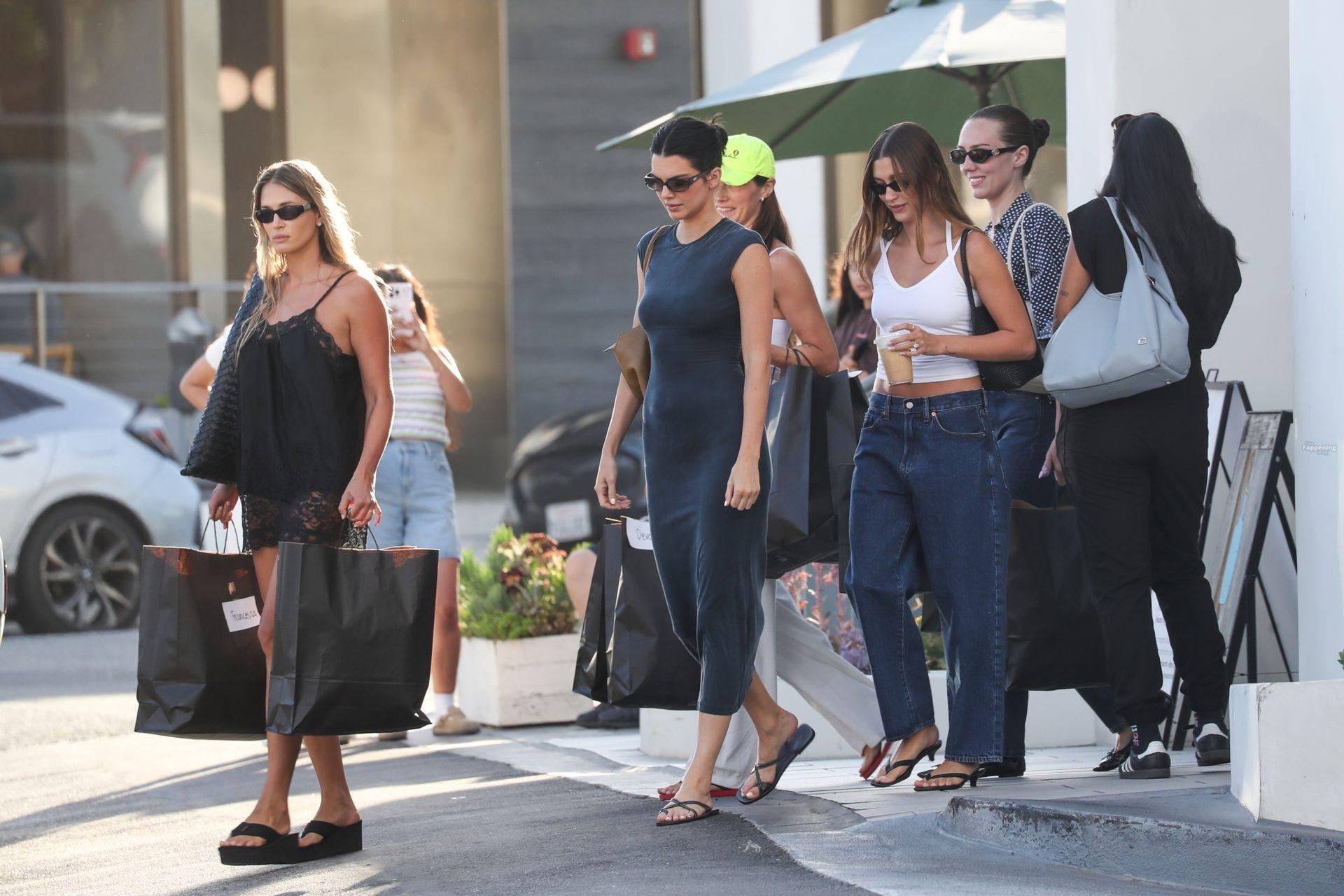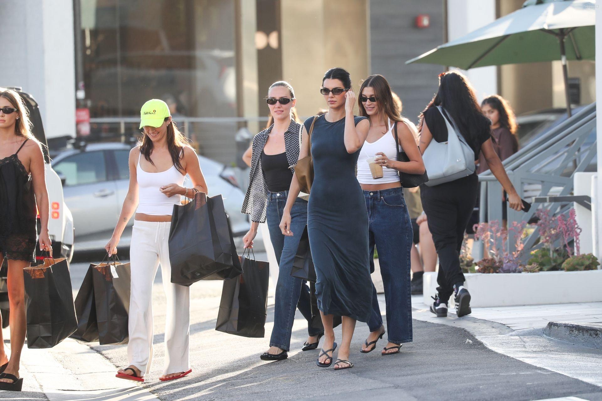 Хейли Бибер и Кендалл Дженнер отправились за покупками одежды в Brandy Melville в Брентвуде, проводя время с их компанией в расслабленный полдень.