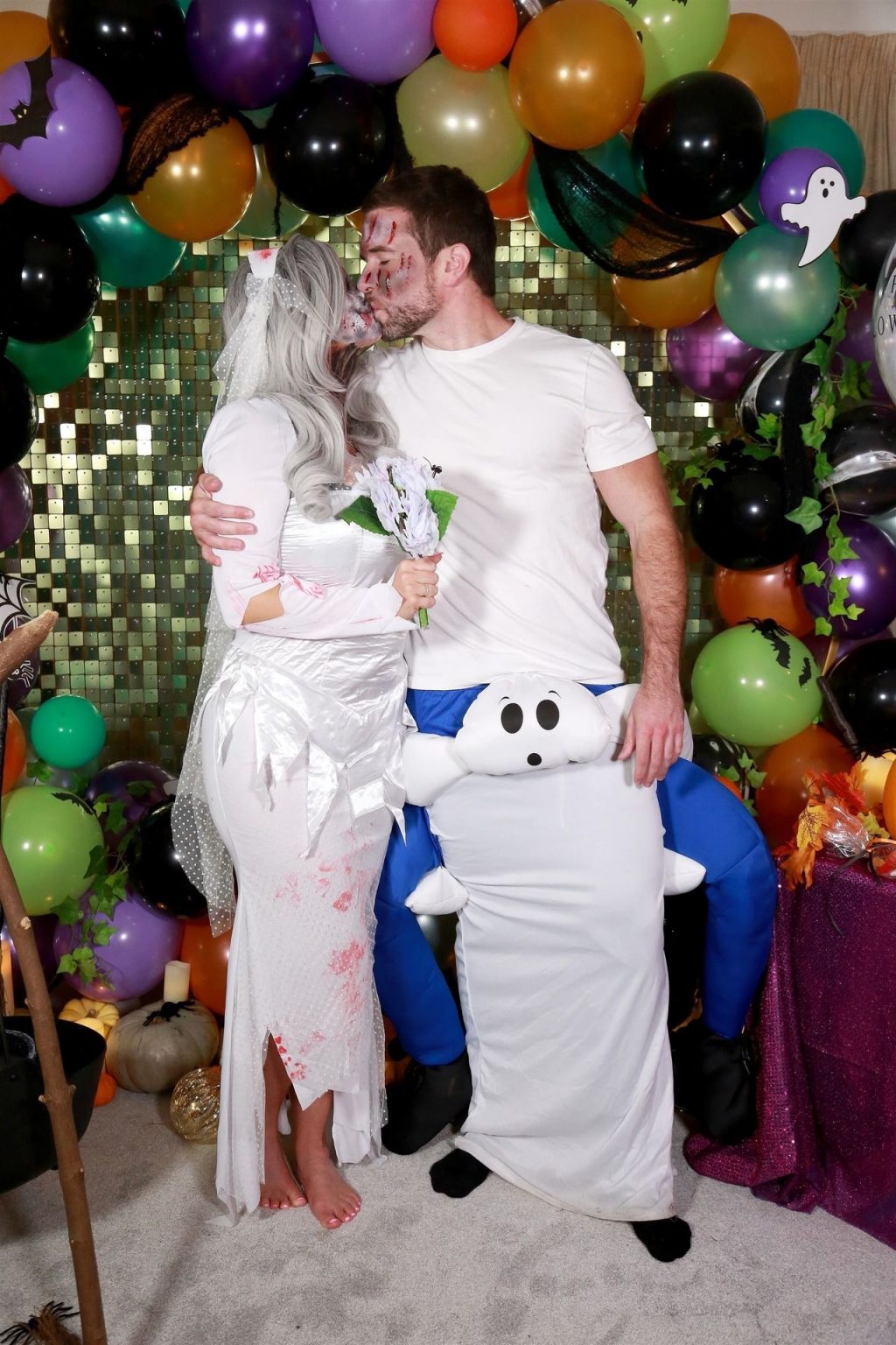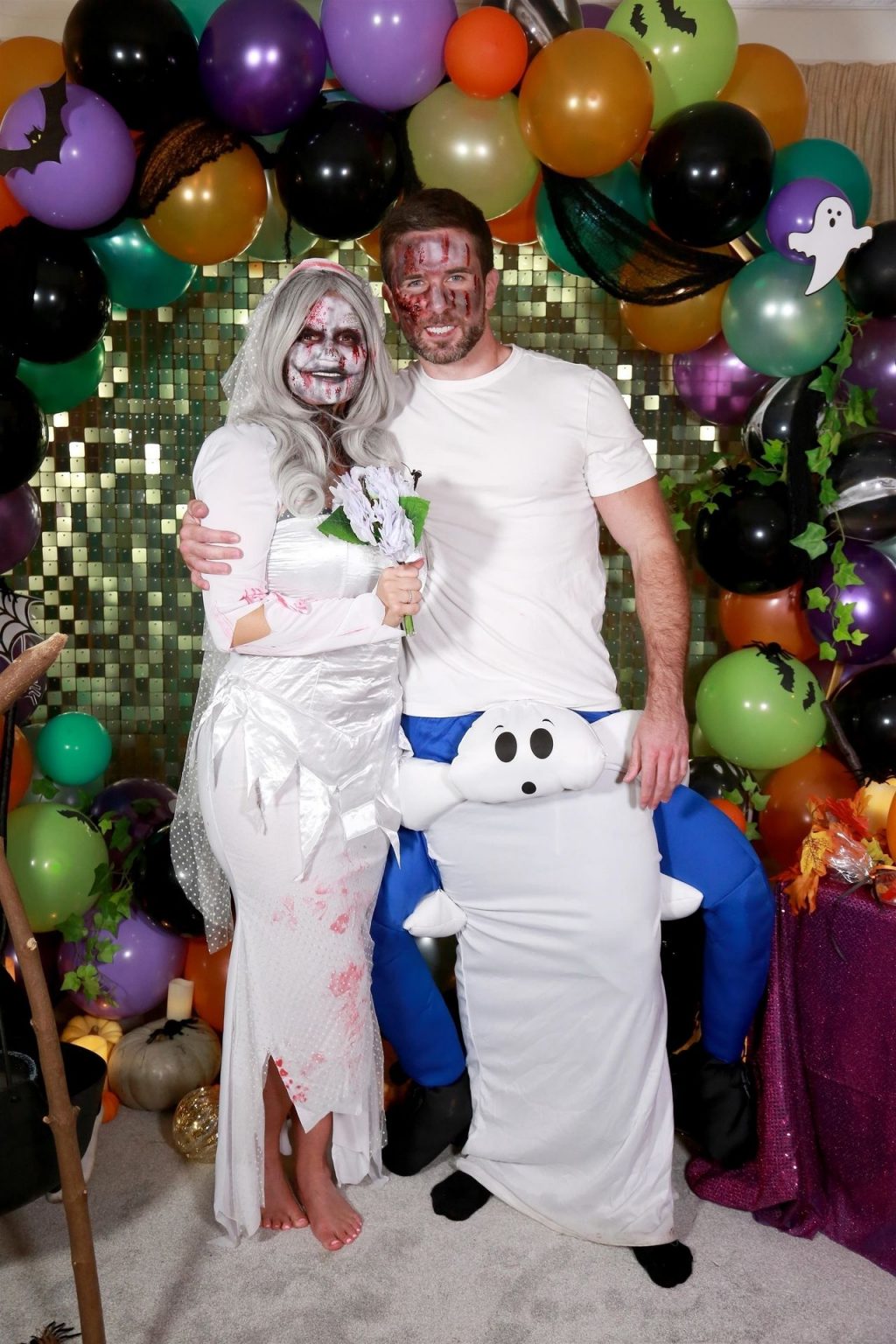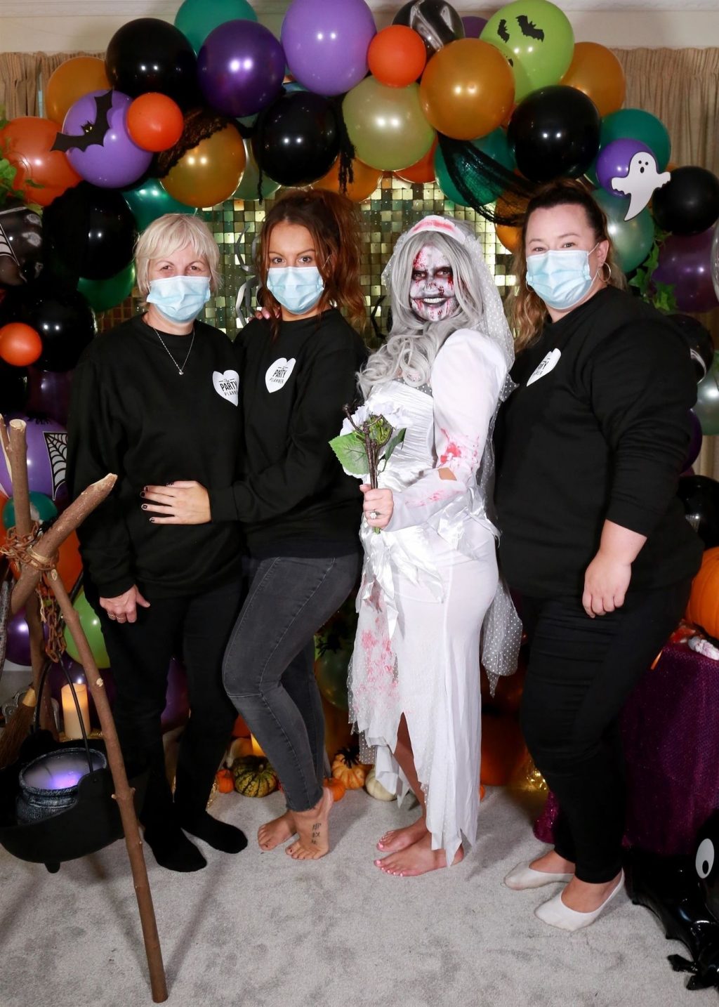 Керри Катона празднует Хэллоуин дома в Сассексе с партнером Райаном и детьми Лилли (17), Хайди (13), Максвеллом (12) и Ди-Джеем (6), 31.10.2020.