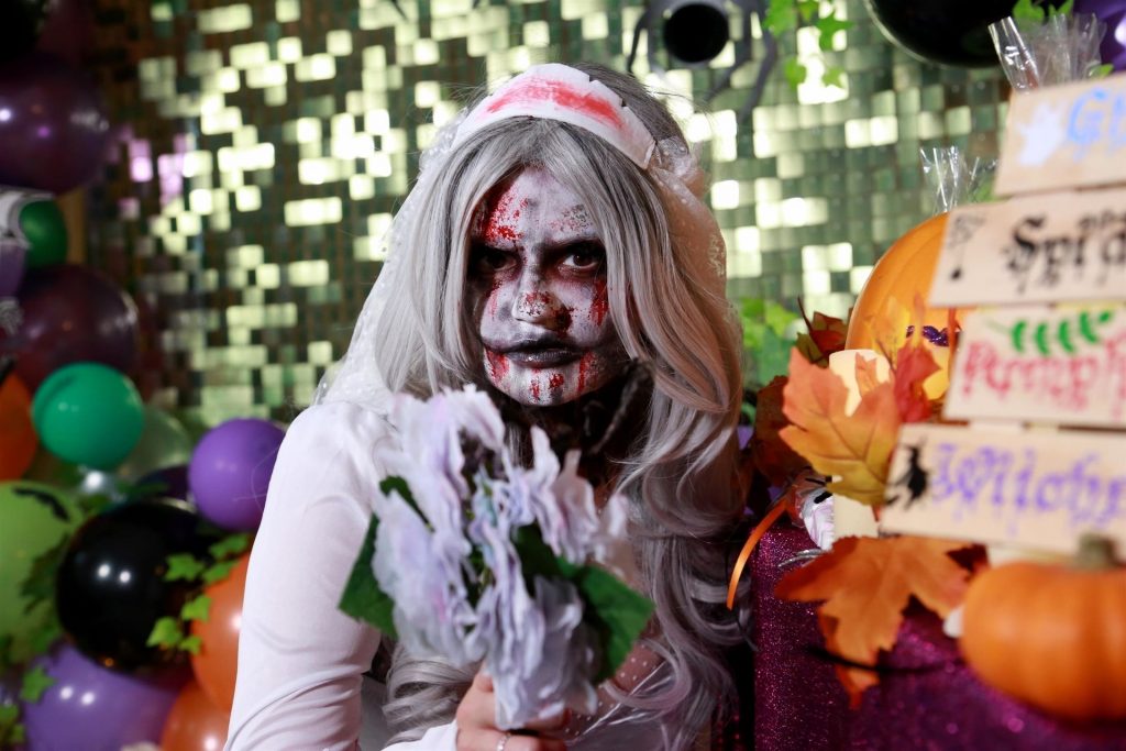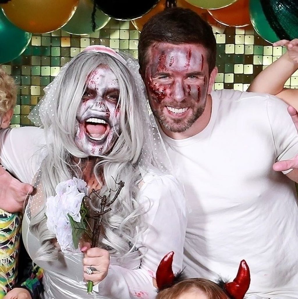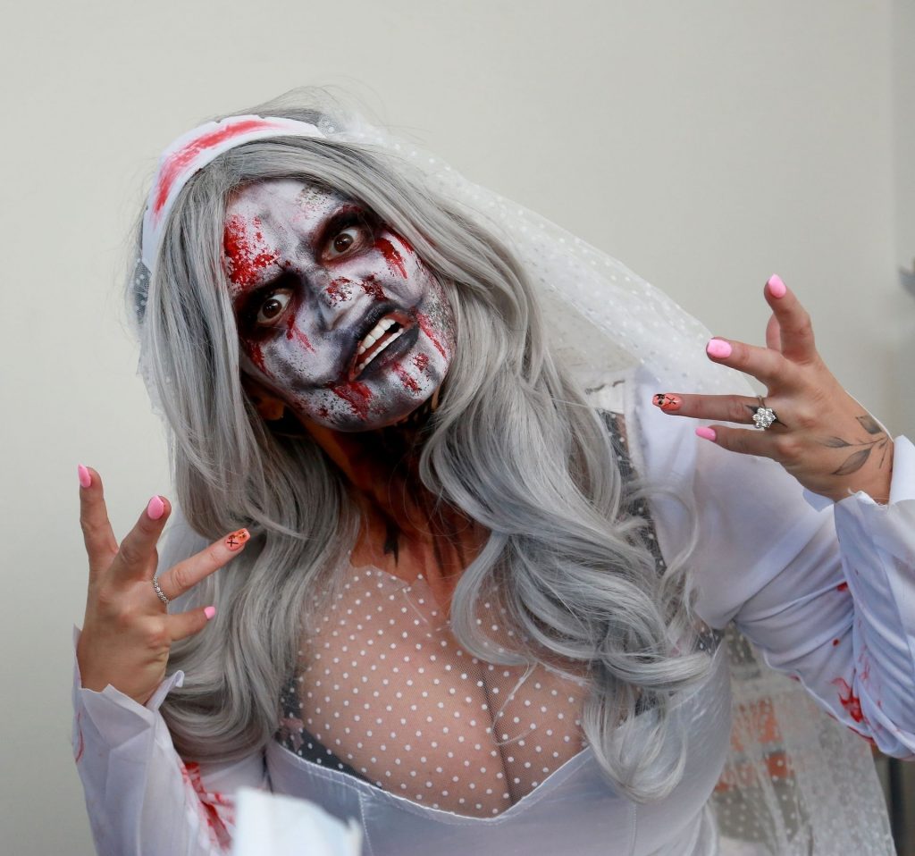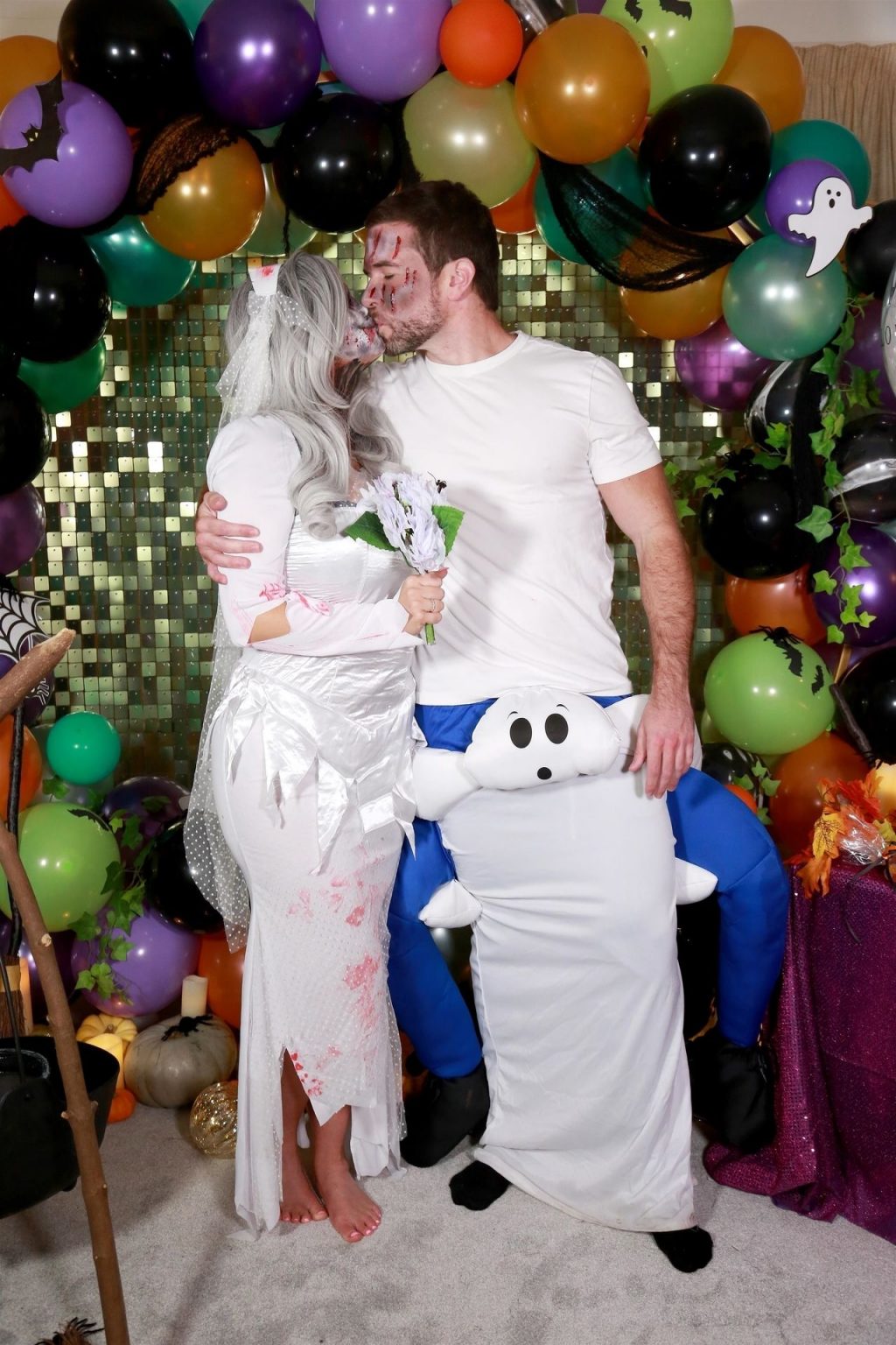 Керри Катона празднует Хэллоуин дома в Сассексе с партнером Райаном и детьми Лилли (17), Хайди (13), Максвеллом (12) и Ди-Джеем (6), 31.10.2020.