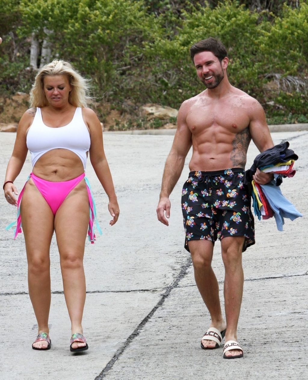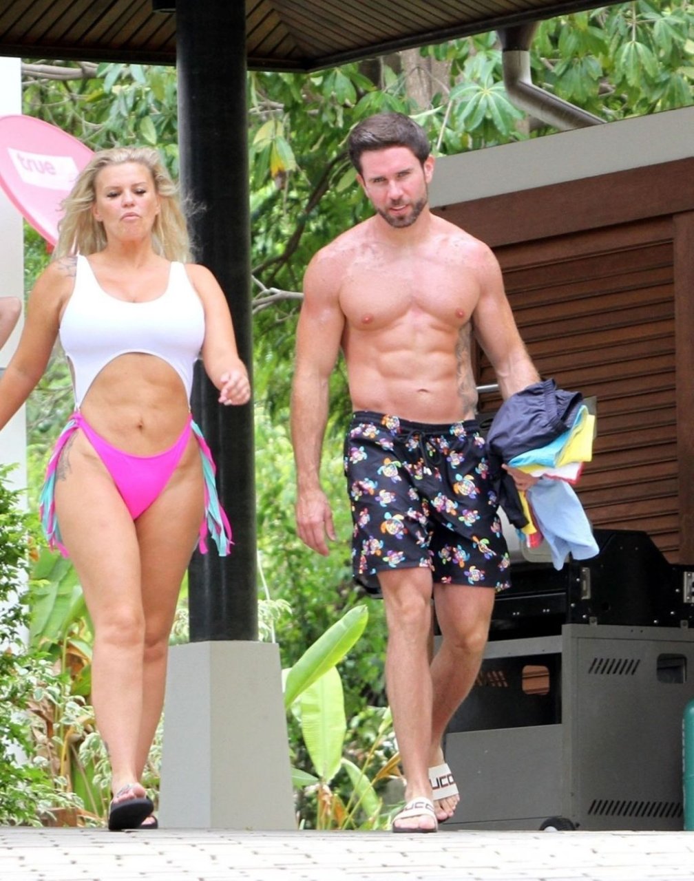 После всех этих изнурительных тренировок за последние недели, Керри продемонстрировала свою соблазнительную фигуру и выглядела великолепно, а ее бойфренд, фитнес-инструктор Райан, показывал свои пресс. Блондинка-бомба Керри была в своей стихии, немного отдыхая и расслабляясь на шезлонге, попивая напиток и наслаждаясь своим отдыхом на Дальнем Востоке.
