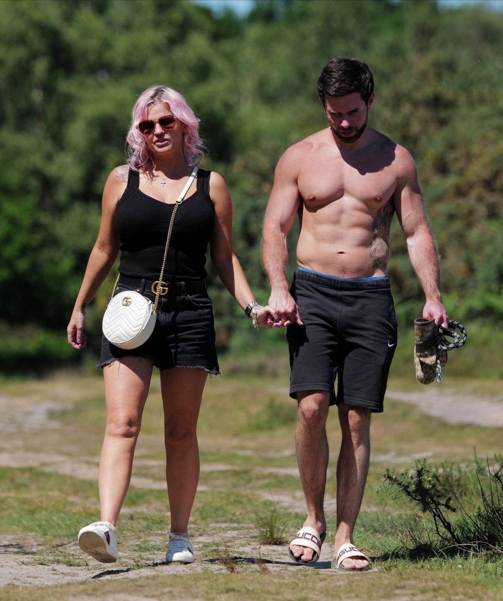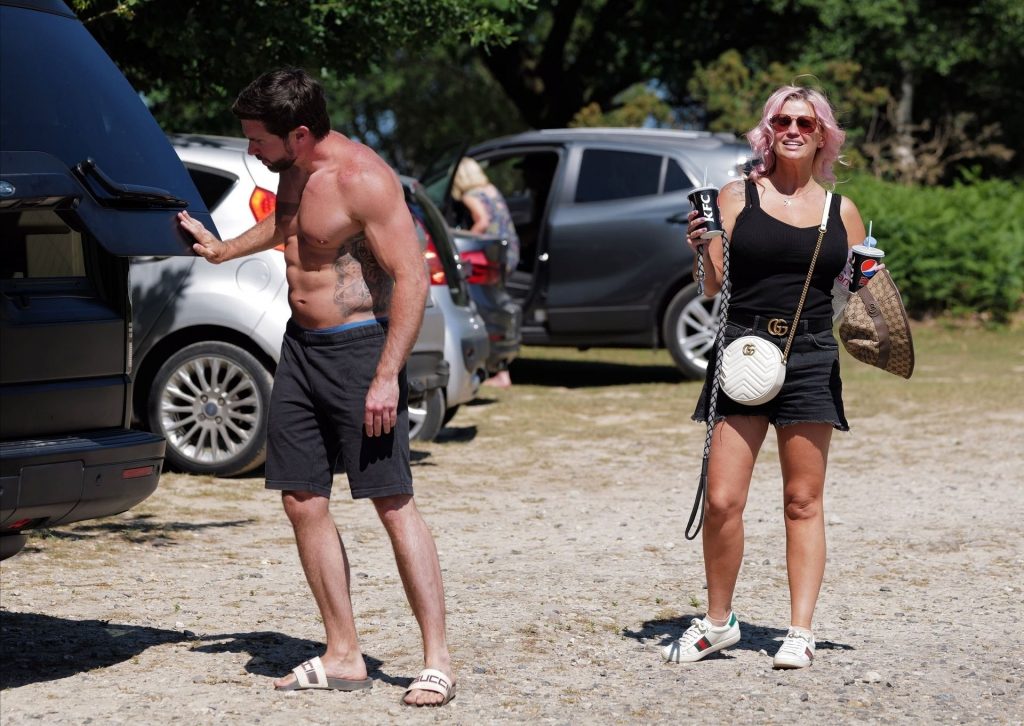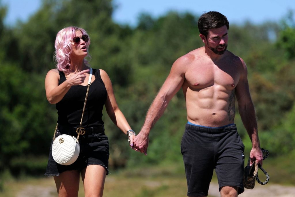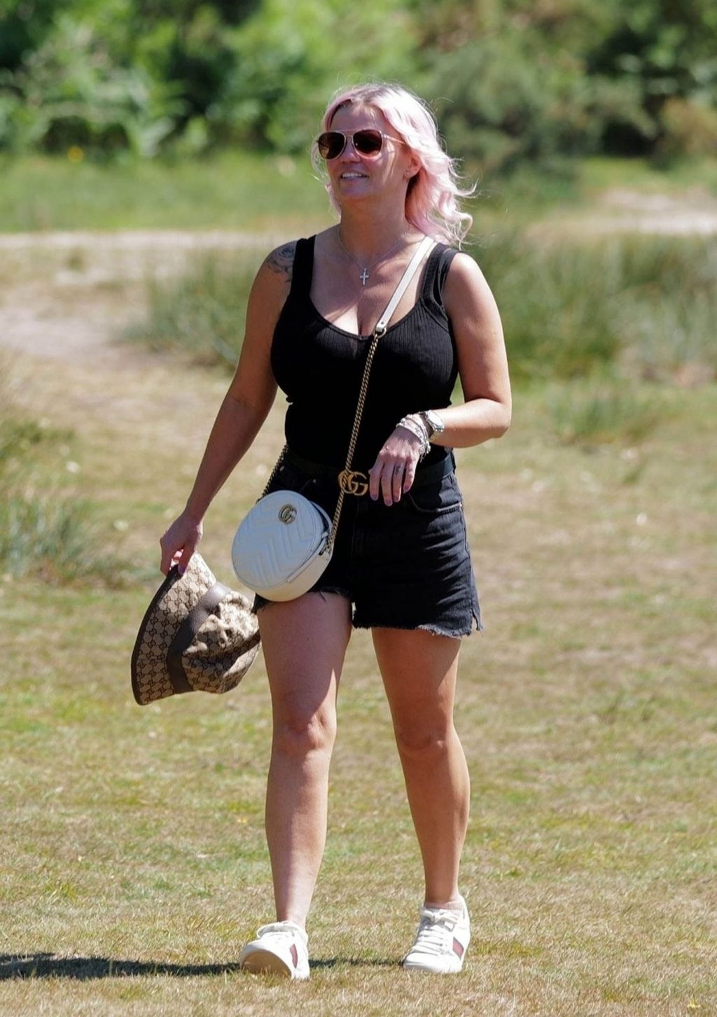 Бывшая певица группы “Atomic Kitten” Керри Катона демонстрирует свои розовые волосы и выглядит в отличном настроении, когда ее фотографируют с бойфрендом Райаном Махони и двумя дочерьми во время солнечного дня в Лондоне, 06/02/2020.