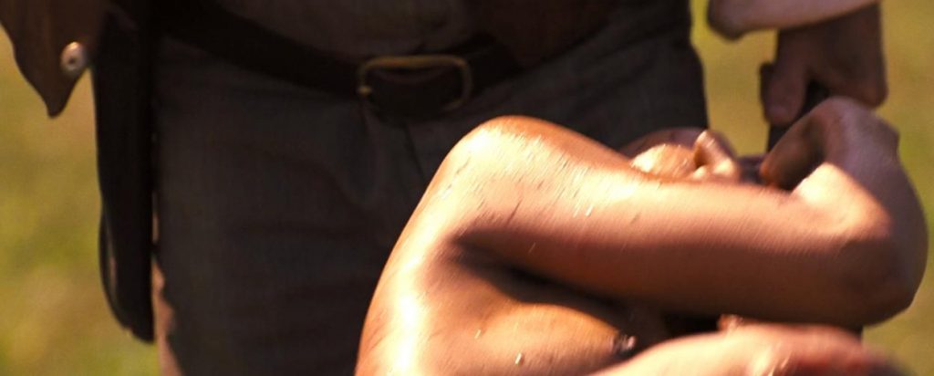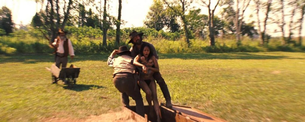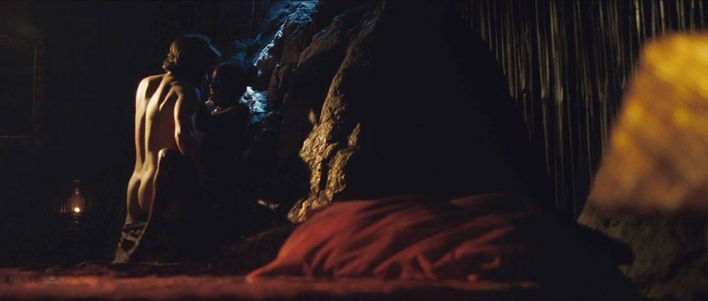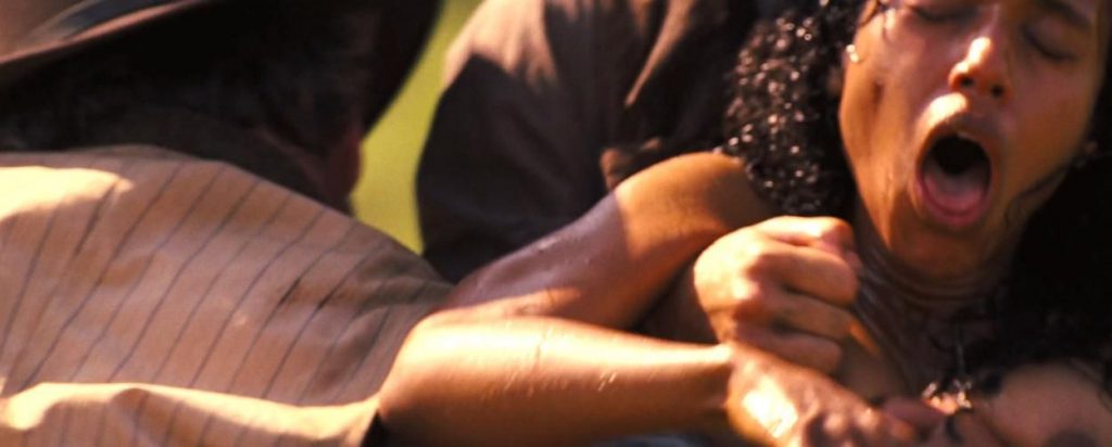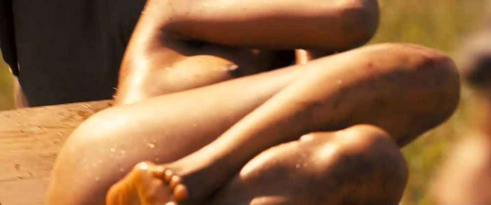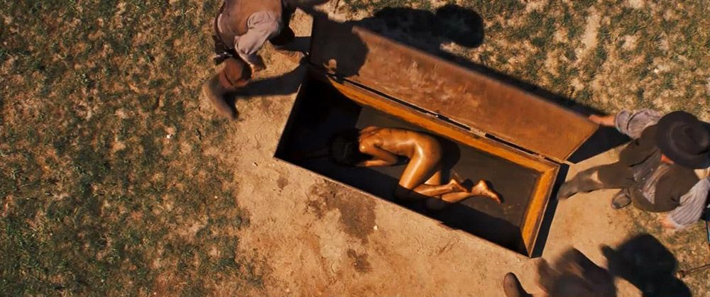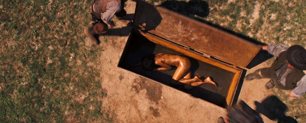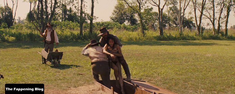 Kerry Washington in ‘Django Unchained’ is lying naked on her side in a box. The few guys open it up and splash a bucket of water on her. We then see her nude tits as they pull her out and place her in a wheelbarrow. We all like forced scenes on TFB!