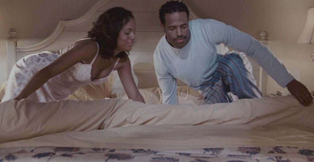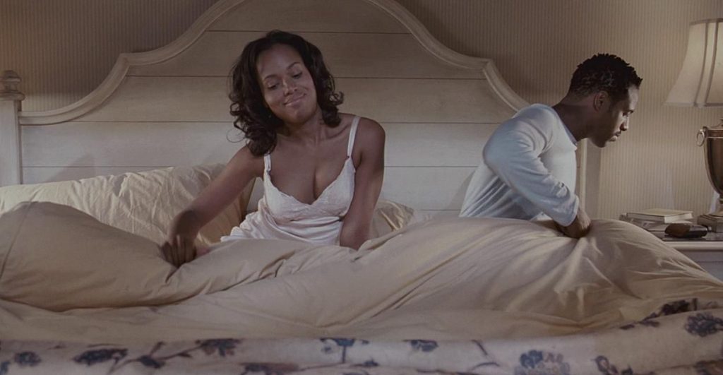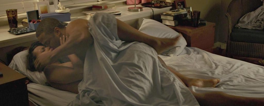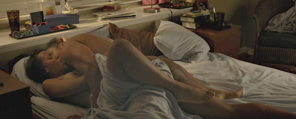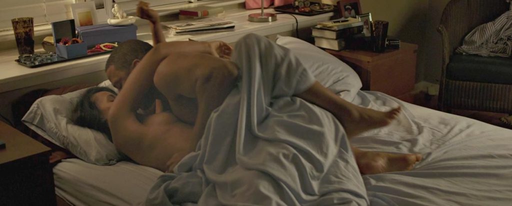Next are two sex scenes of Kerry Washington’s nude. She is underneath a guy as they have sex in bed; her boobs are seen. Then in the other one, Kerry Washington is exposing her nude breasts and bush again. She climbs into bed with a guy and then giving us a longer view of her tits.