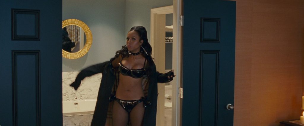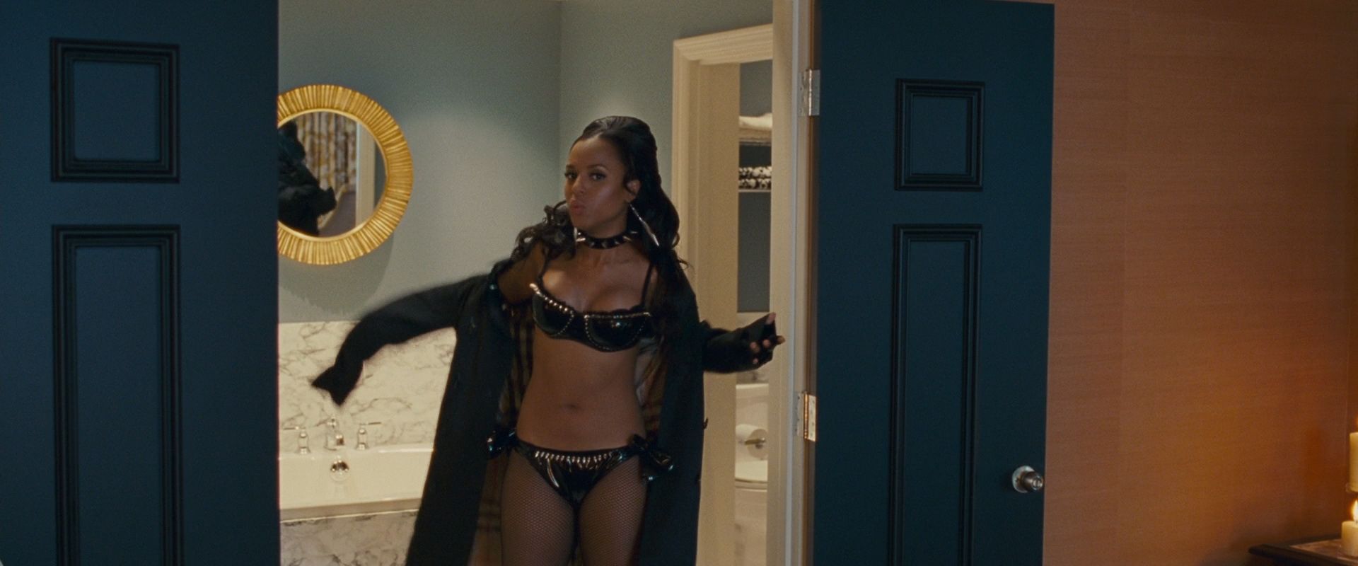 In the third long scene, Kerry Washington is walking into a room in some black lingerie. This is a nice view of her butt in a thong before she stands in front of a guy and talks to him. Then the guy is standing with Kerry holding on to him with her legs wrapped around him and fucking her in a great sex scene!