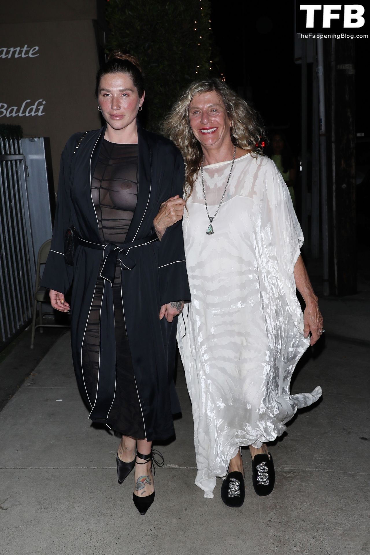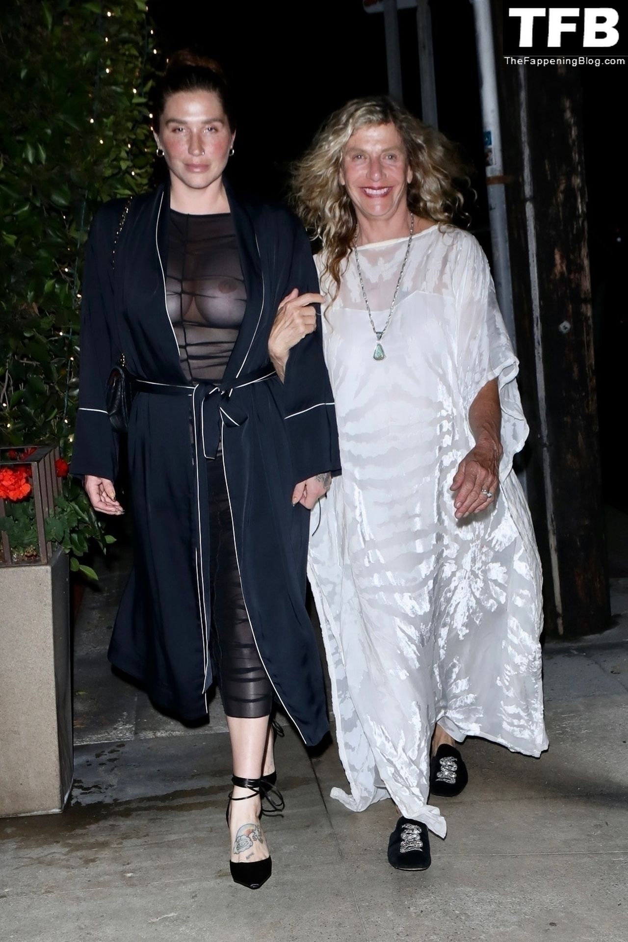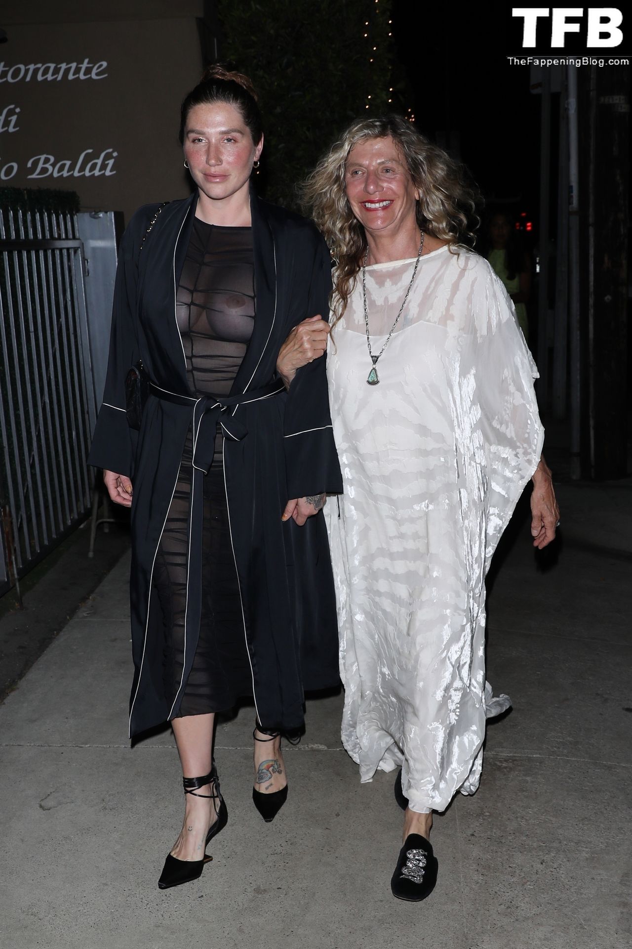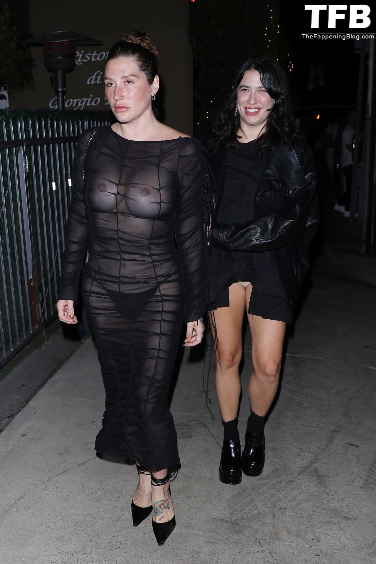 Певица Кеша оставляет мало места для воображения, покидая ресторан Giorgio Baldi в чёрном прозрачном платье из сетки с подходящим нижним бельём вместе со своей матерью Пиби Себерт и другом в Санта-Монике, 07.08.2022.