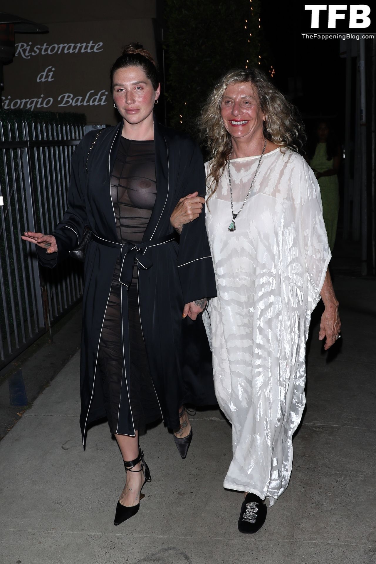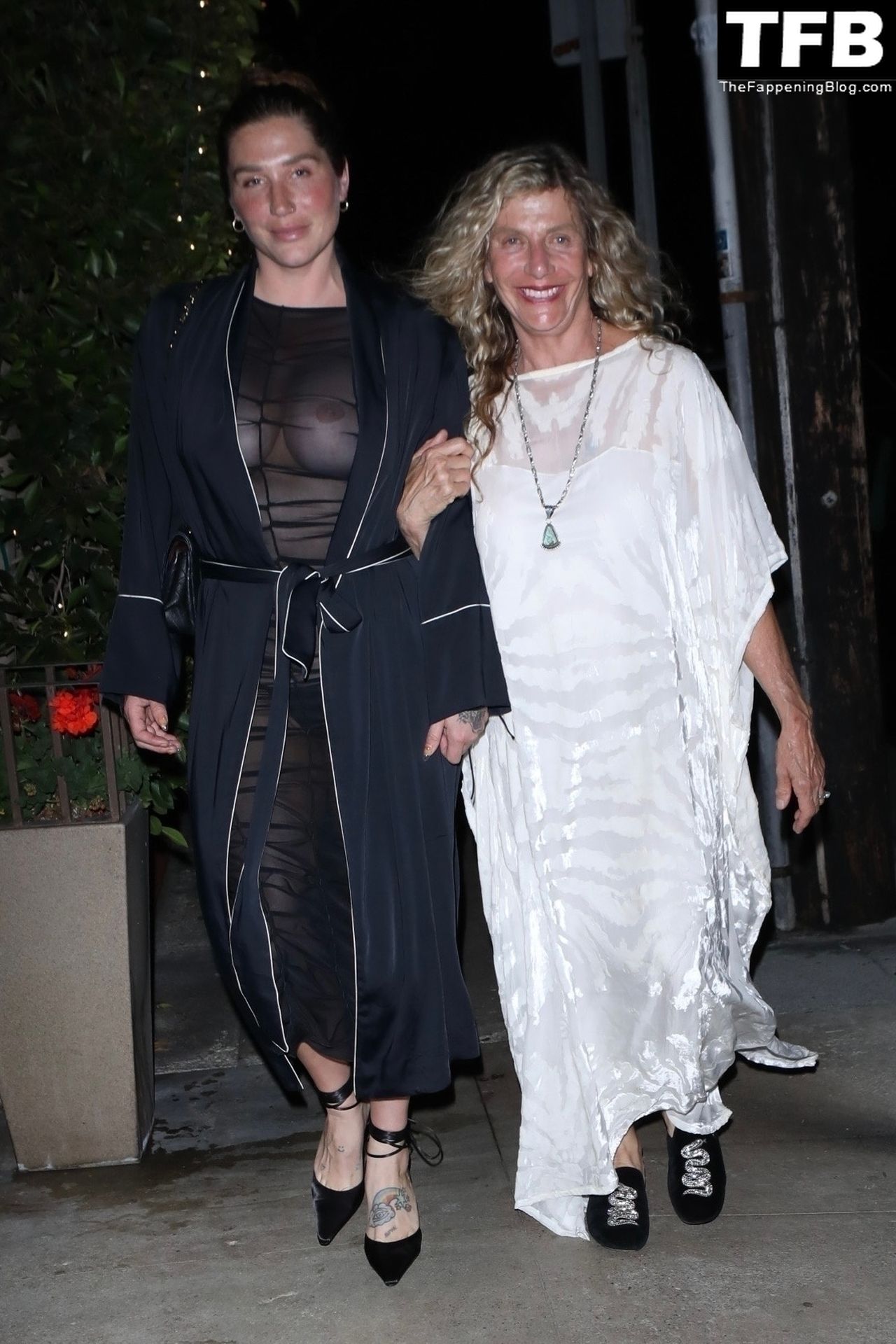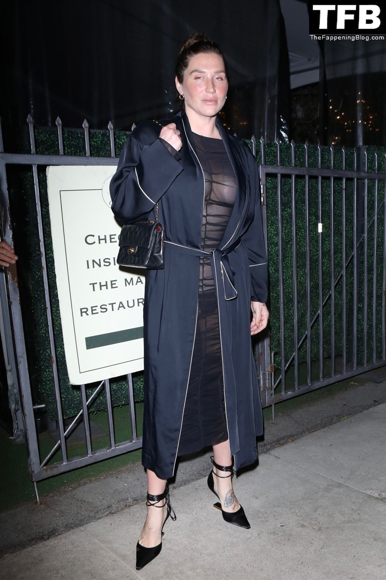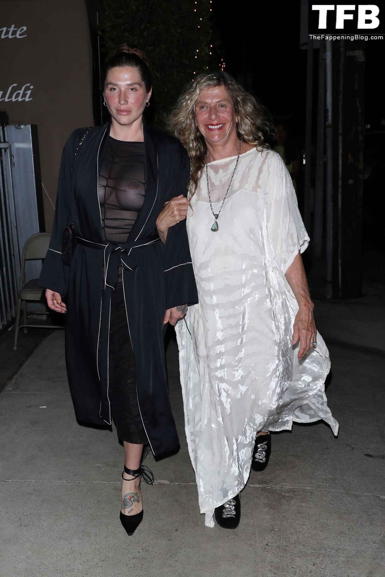 Певица Кеша оставляет мало места для воображения, покидая ресторан Giorgio Baldi в чёрном прозрачном платье из сетки с подходящим нижним бельём вместе со своей матерью Пиби Себерт и другом в Санта-Монике, 07.08.2022.