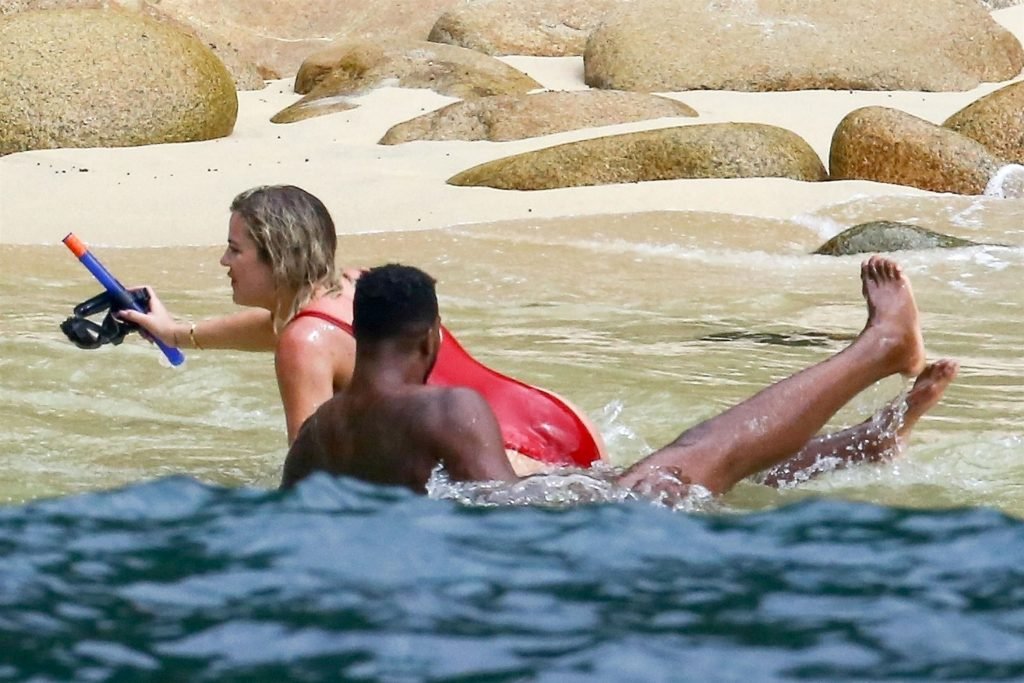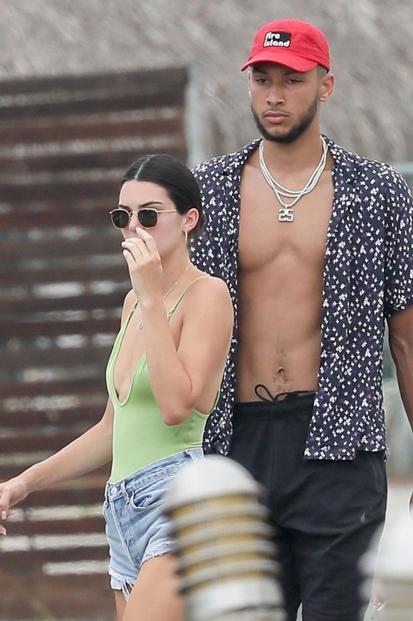 Сестры Хлое Кардашьян и Кендалл Дженнер наслаждаются веселым днем на пляже со своими вторыми половинками Тристаном Томпсоном и Беном Симмонсом в Мексике, 15.08.2018.