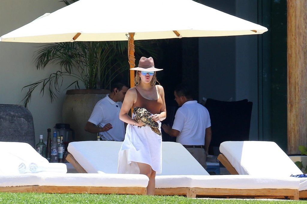 Пока Хлое быстро окунулась в океан перед возвращением к бассейну, Кендалл изо всех сил пыталась покататься на бодиборде и падлборде, прежде чем вернуться к бассейну.