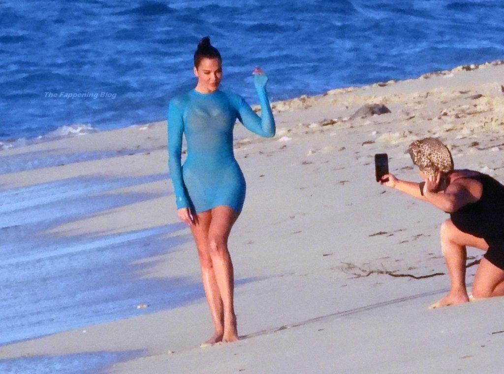 Khloe flaunted her gorgeous figure in a cheeky one-piece with a body-hugging turquoise coverup that showed off her iconic curves to perfection. With her hair pulled back in a high knot, the reality star looked incredibly refreshed as she posed for pictures.