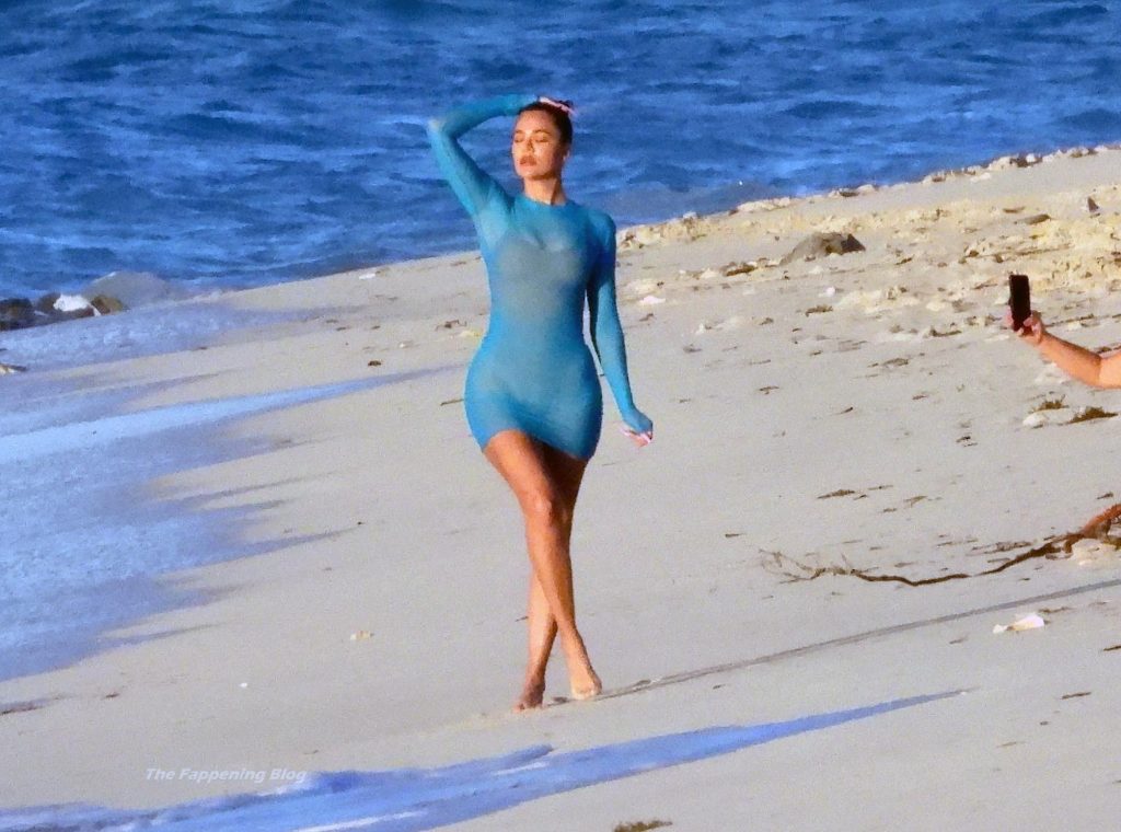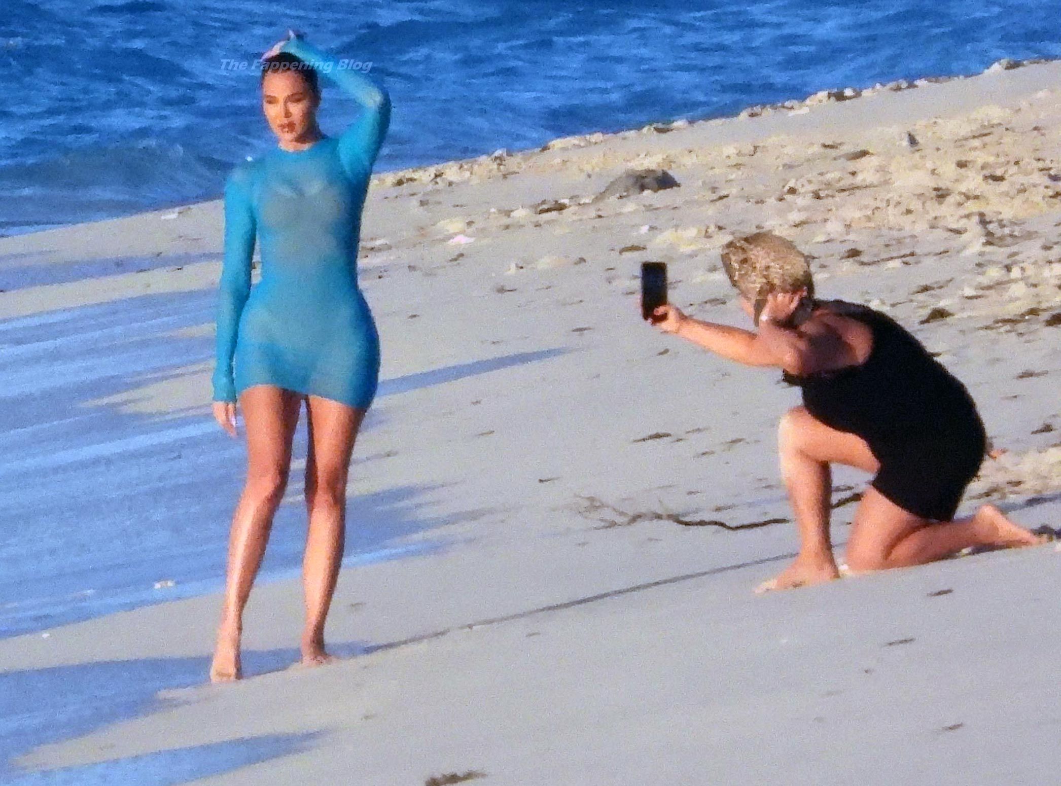 Mama, you’re scorching! Khloe Kardashian poses for a photo shoot on the beach in Turks and Caicos.