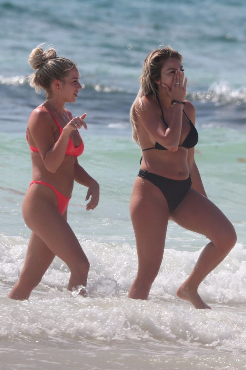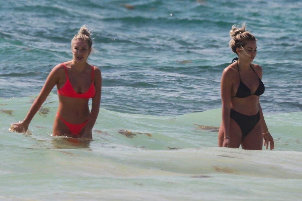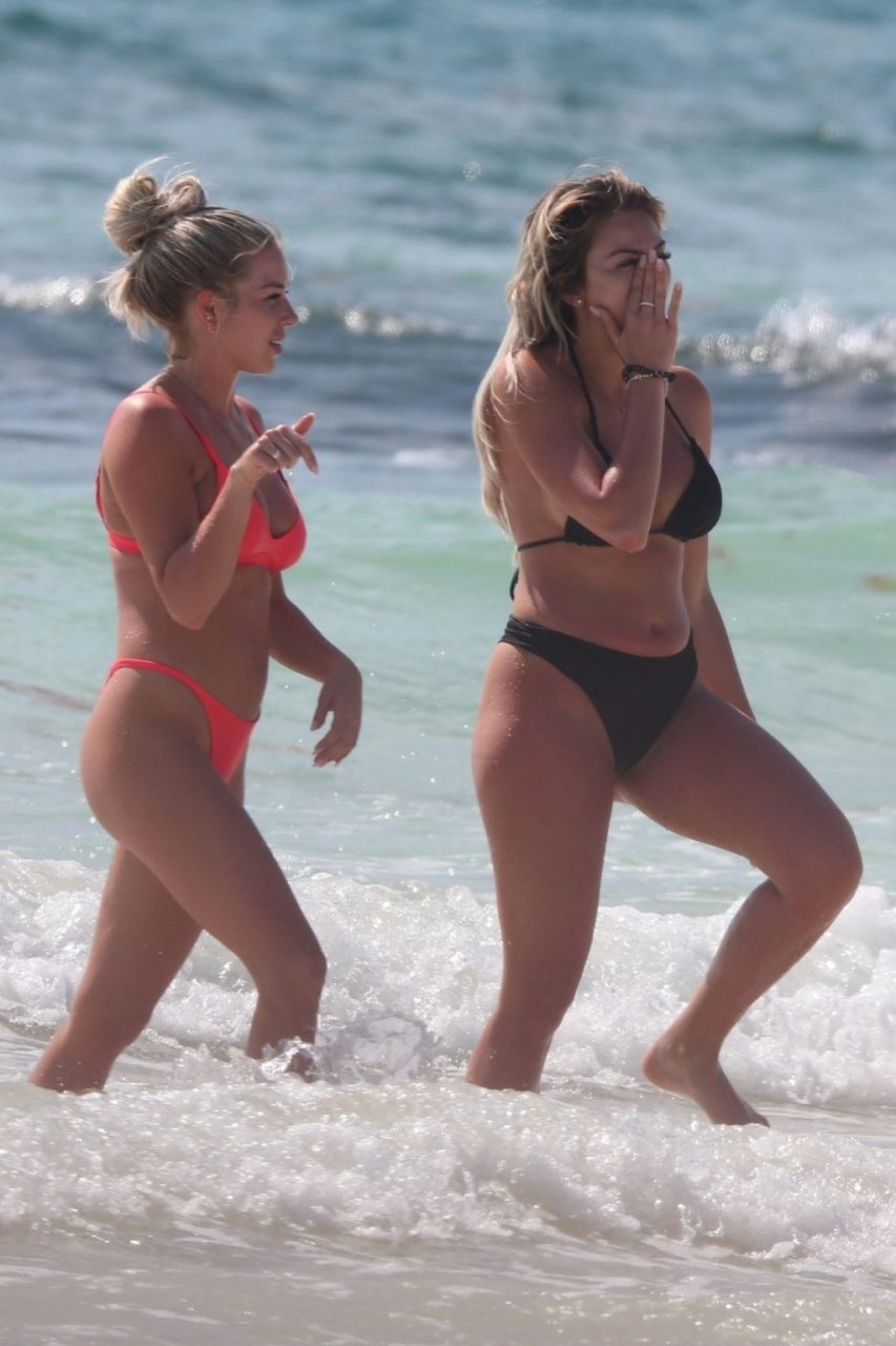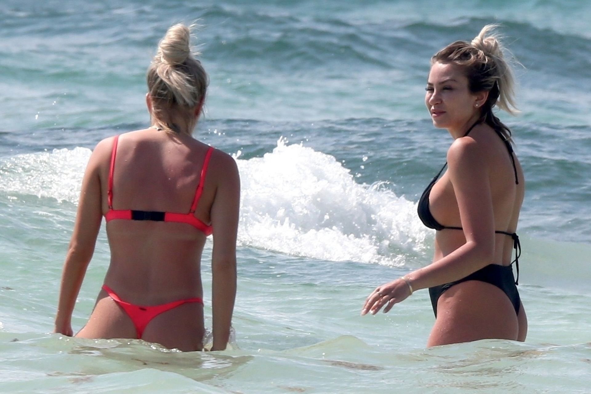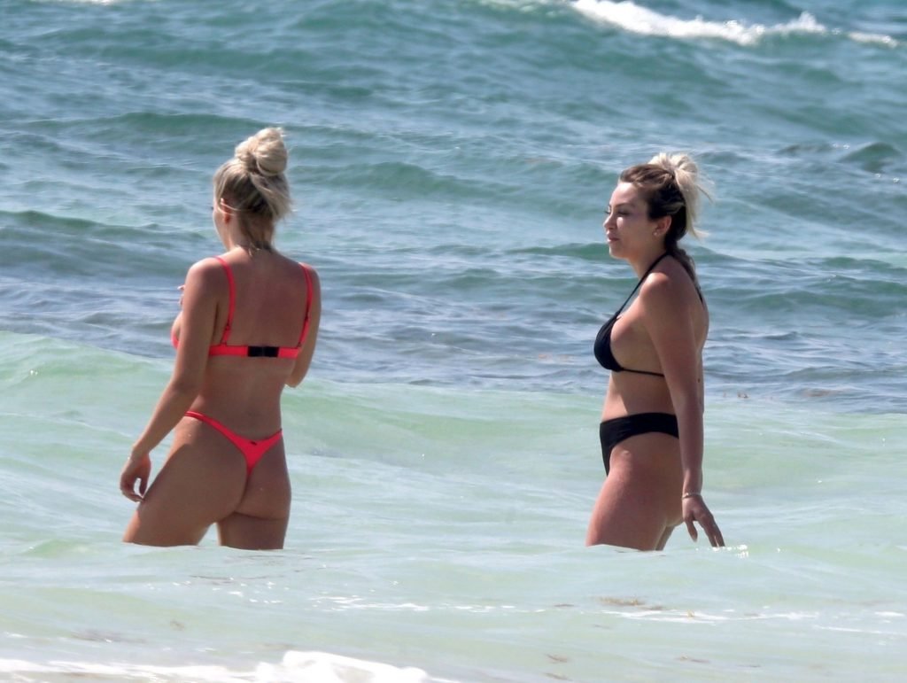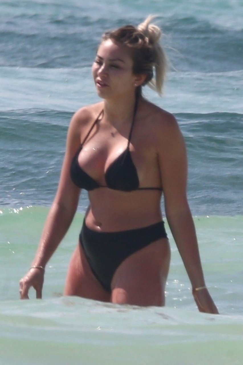 Khloe Terae продолжает зажигать на пляже в Тулуме, 03.04.2019. Модель Playboy продемонстрировала свою фигуру в крошечном черном бикини, резвясь в океанских волнах вместе с подругой.