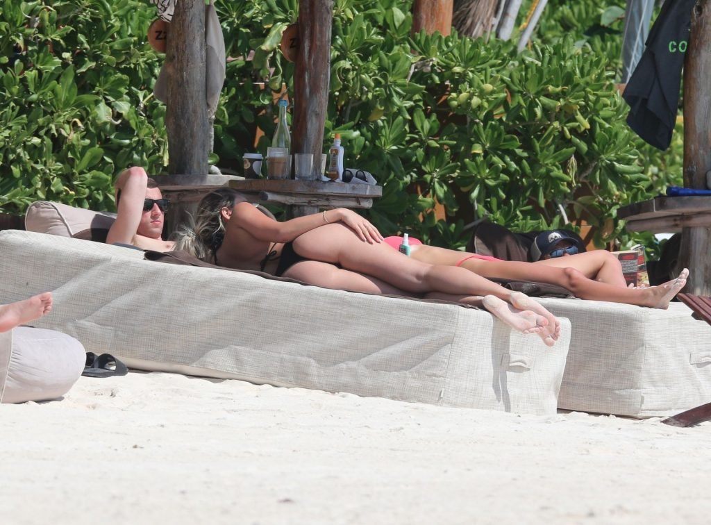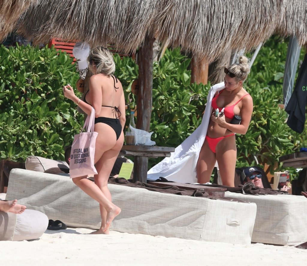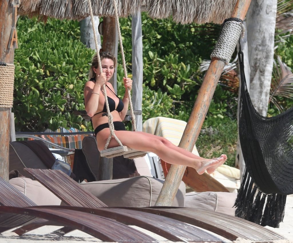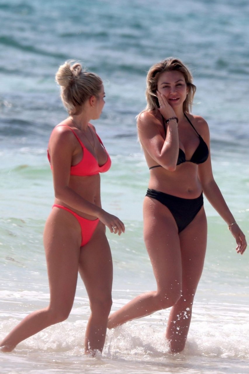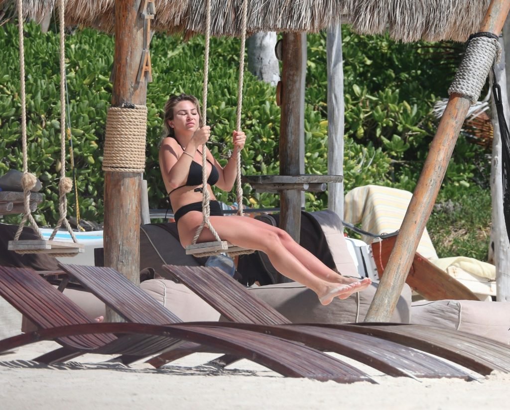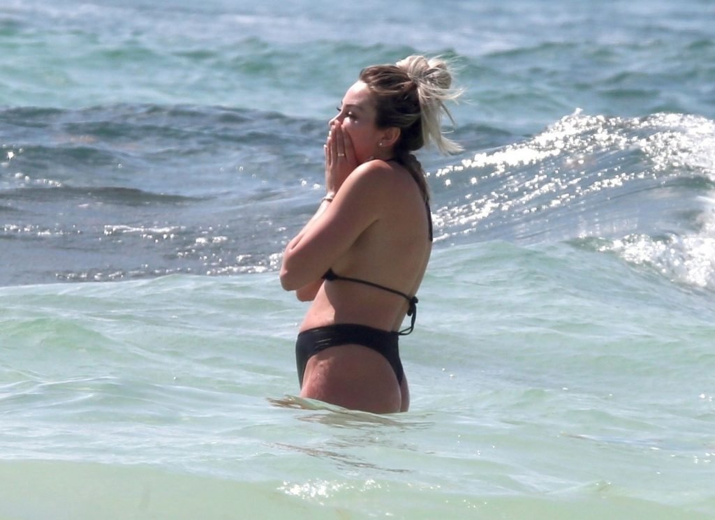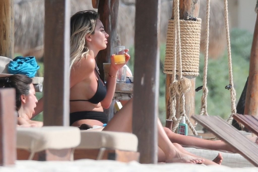 Khloe Terae продолжает зажигать на пляже в Тулуме, 03.04.2019. Модель Playboy продемонстрировала свою фигуру в крошечном черном бикини, резвясь в океанских волнах вместе с подругой.