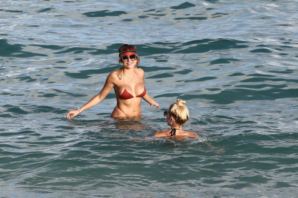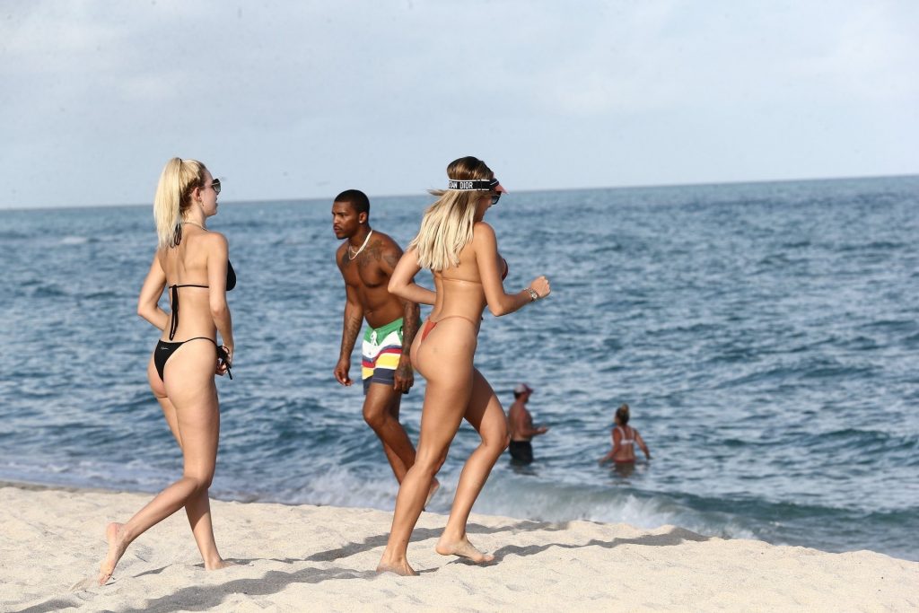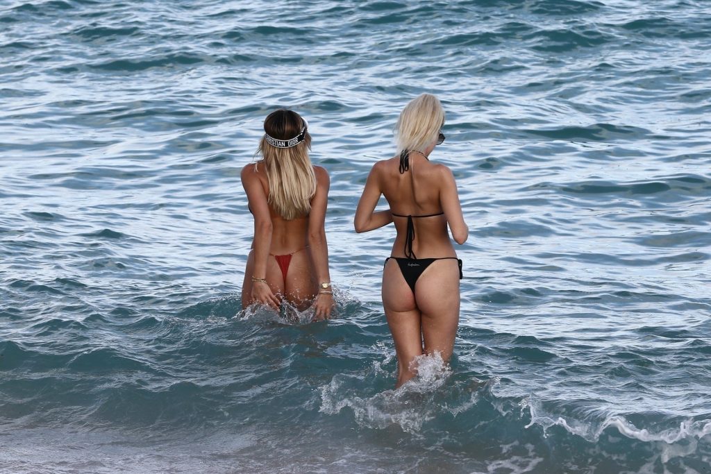 Модель Khloe Terae наслаждается декабрьским солнцем вместе с подругой в Майами, 11.12.2019. Девушки были в крошечных бикини, резвясь на пляже.