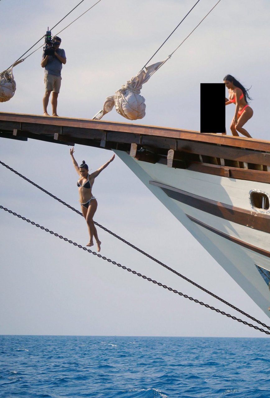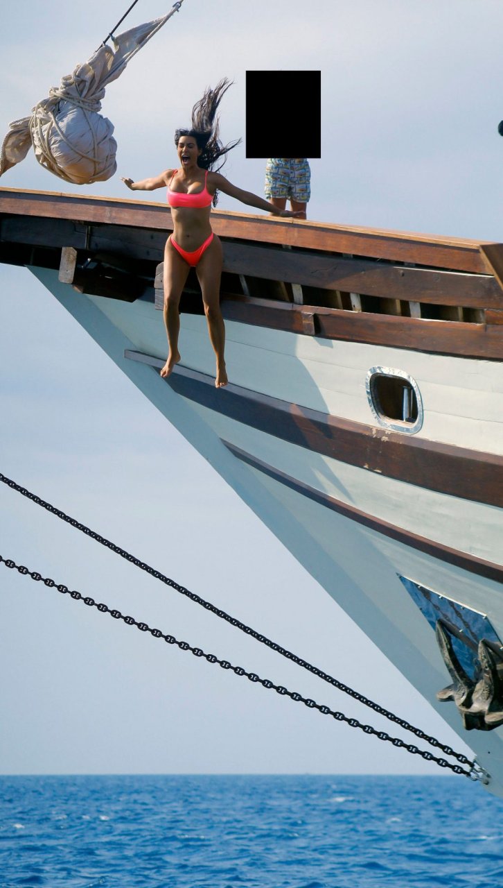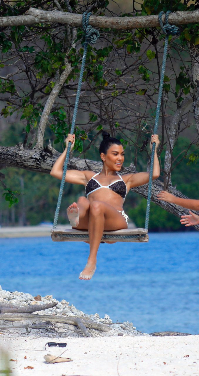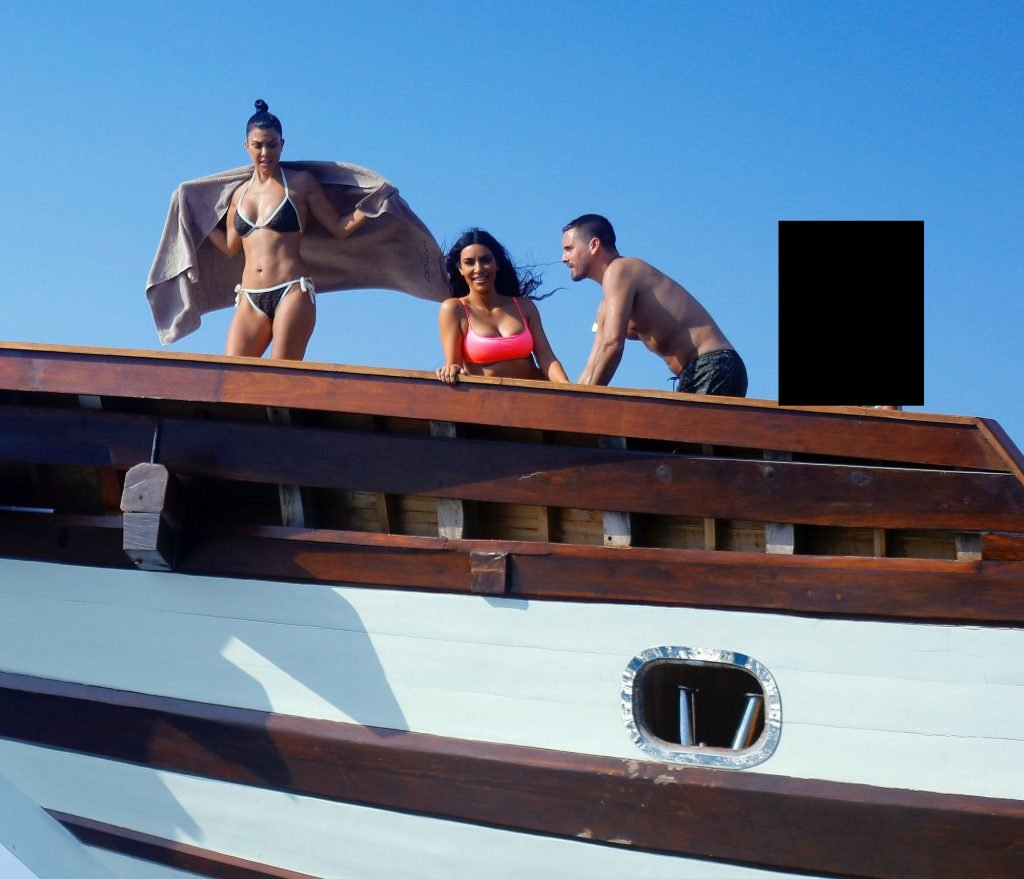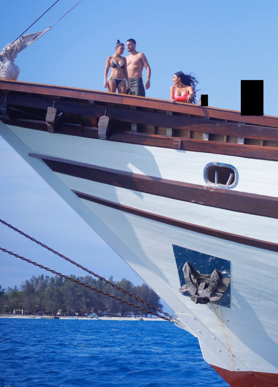 Ким и Кортни Кардашьян весело проводят время с детьми на пляже и на огромной лодке на Бали, 30.10.2018. Скотт Дисик тоже был там, играя с детьми в океане.