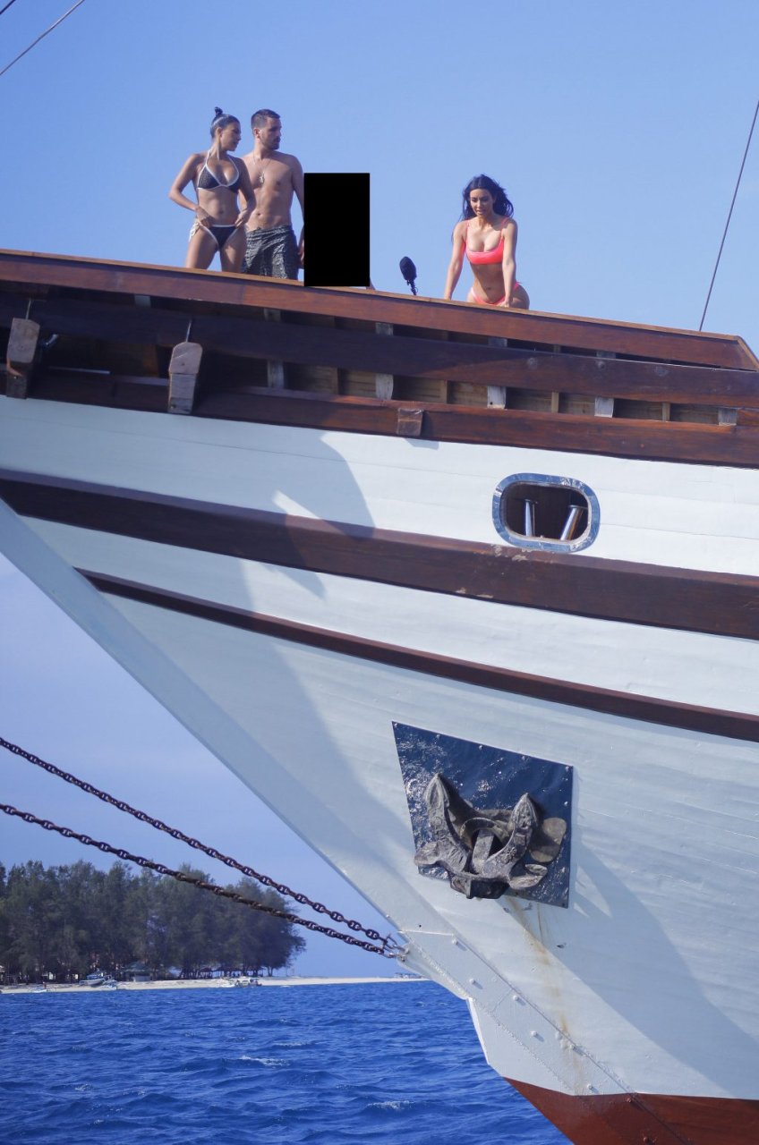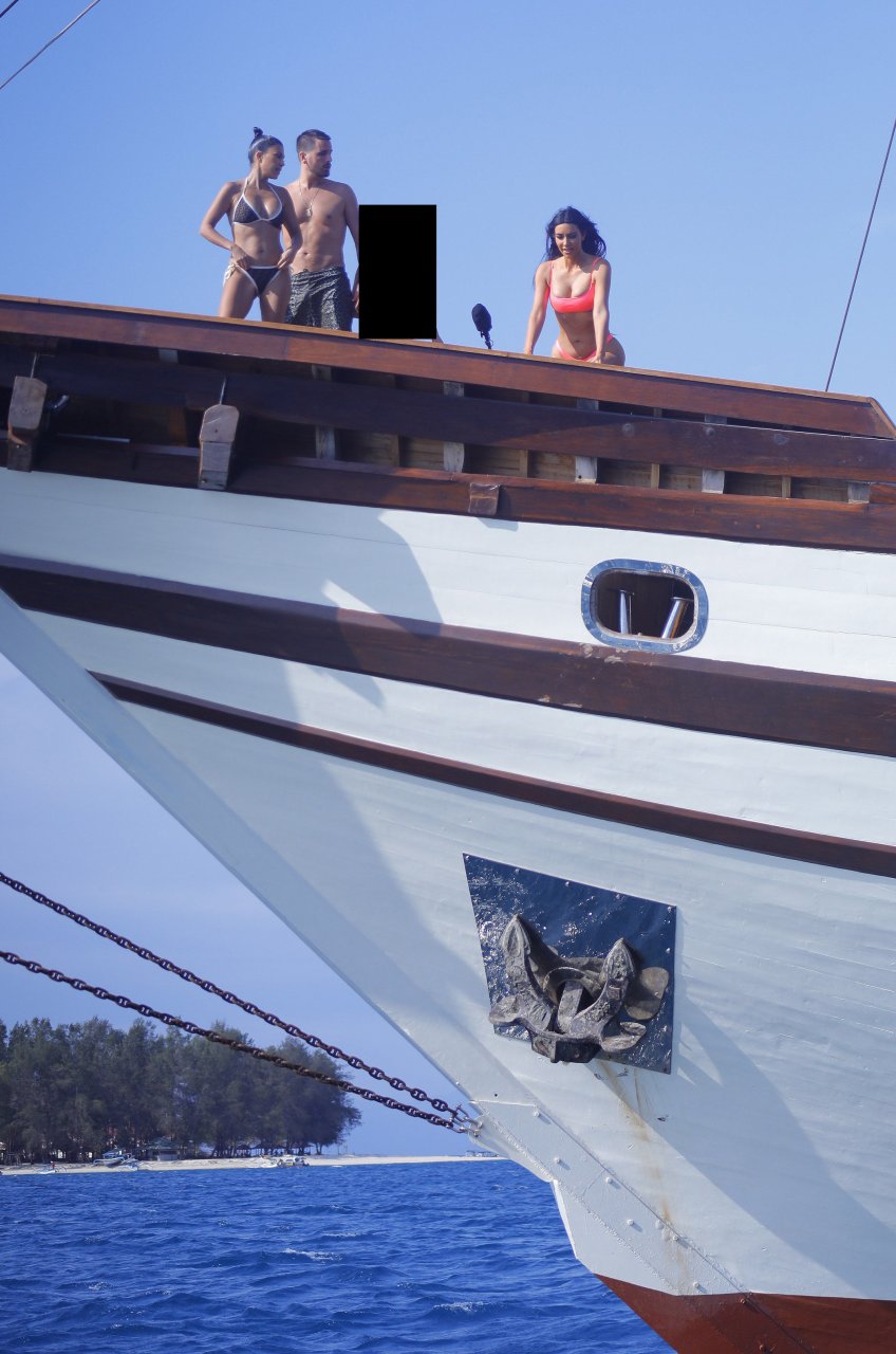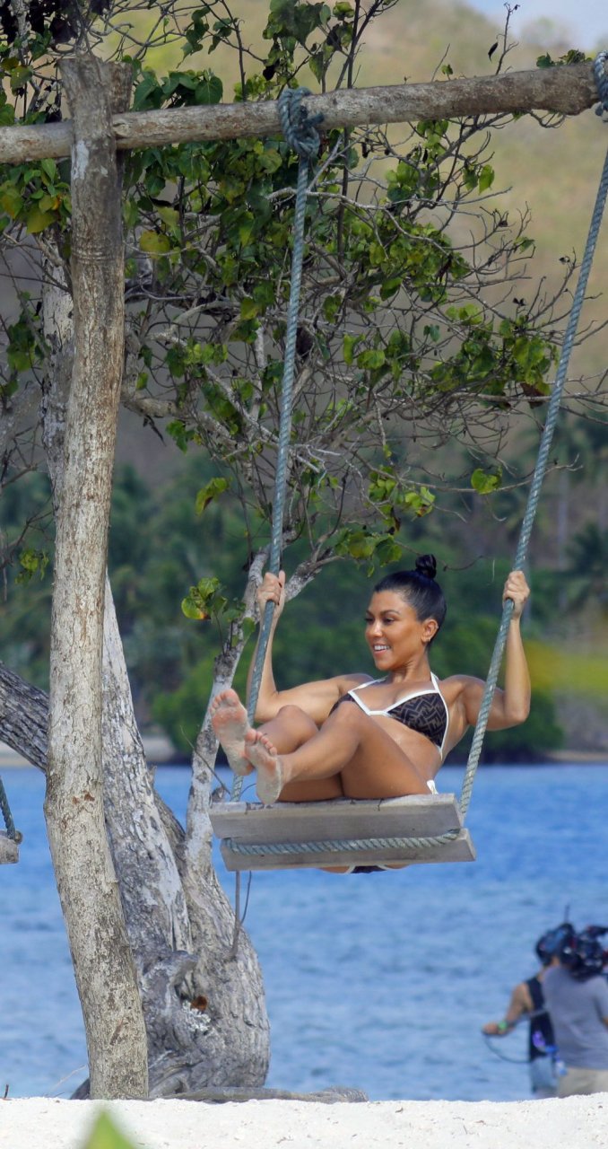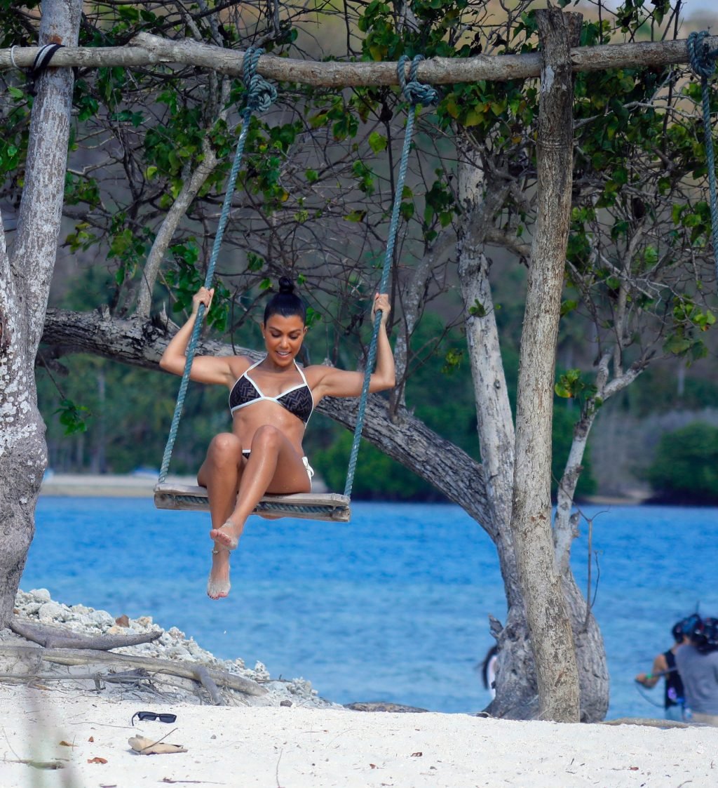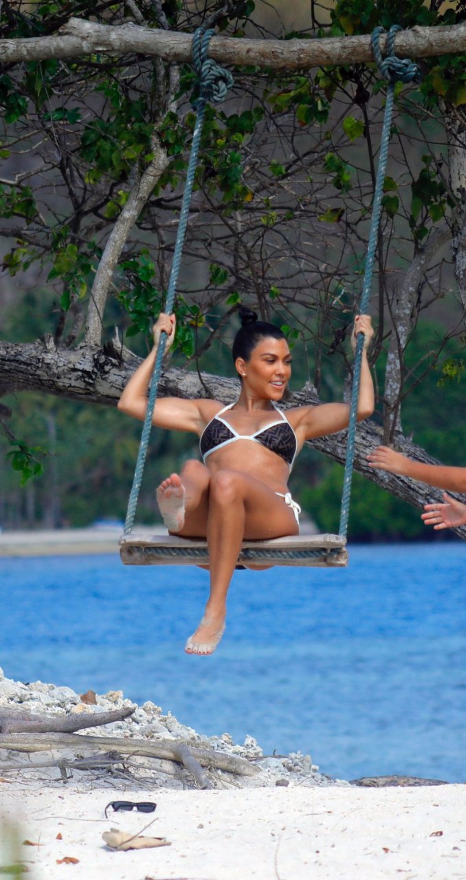 Ким и Кортни Кардашьян весело проводят время с детьми на пляже и на огромной лодке на Бали, 30.10.2018. Скотт Дисик тоже был там, играя с детьми в океане.