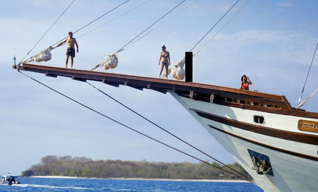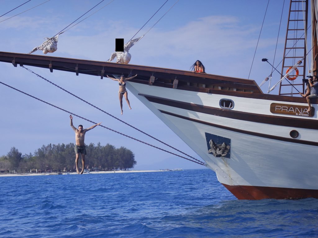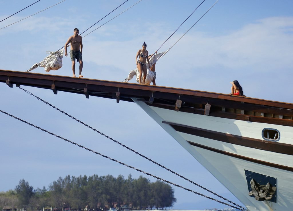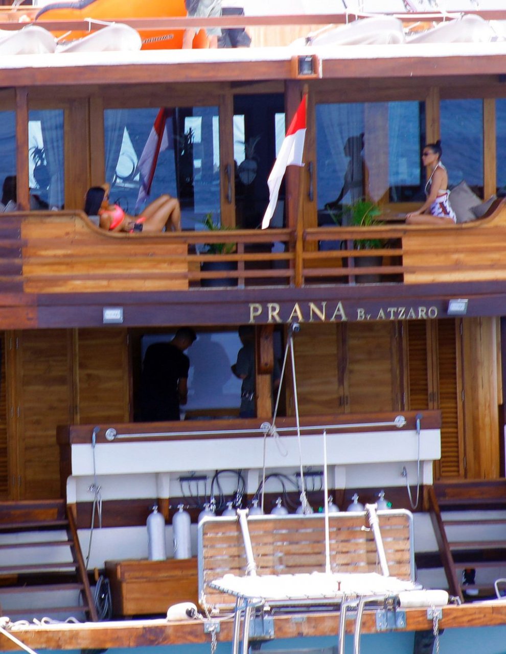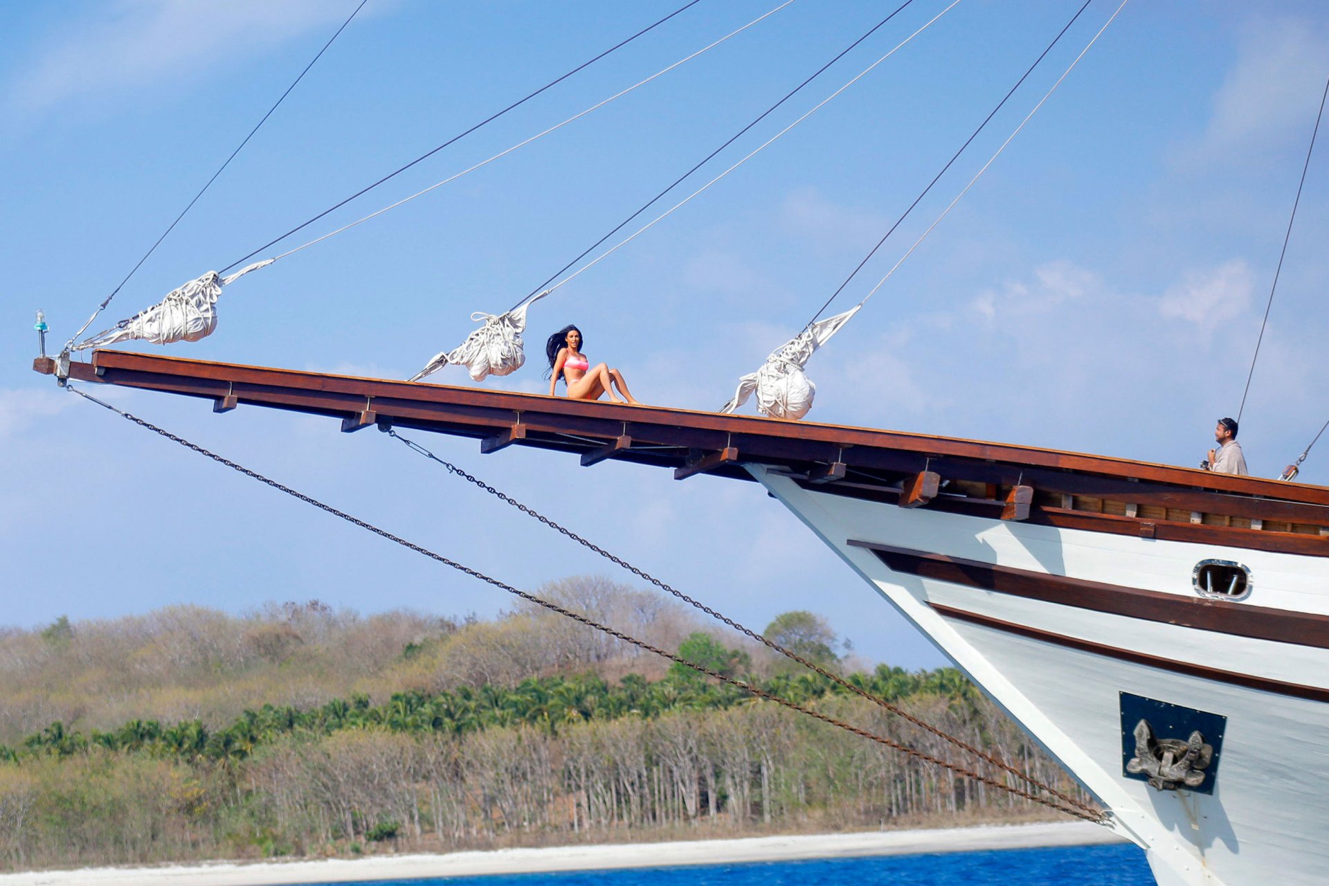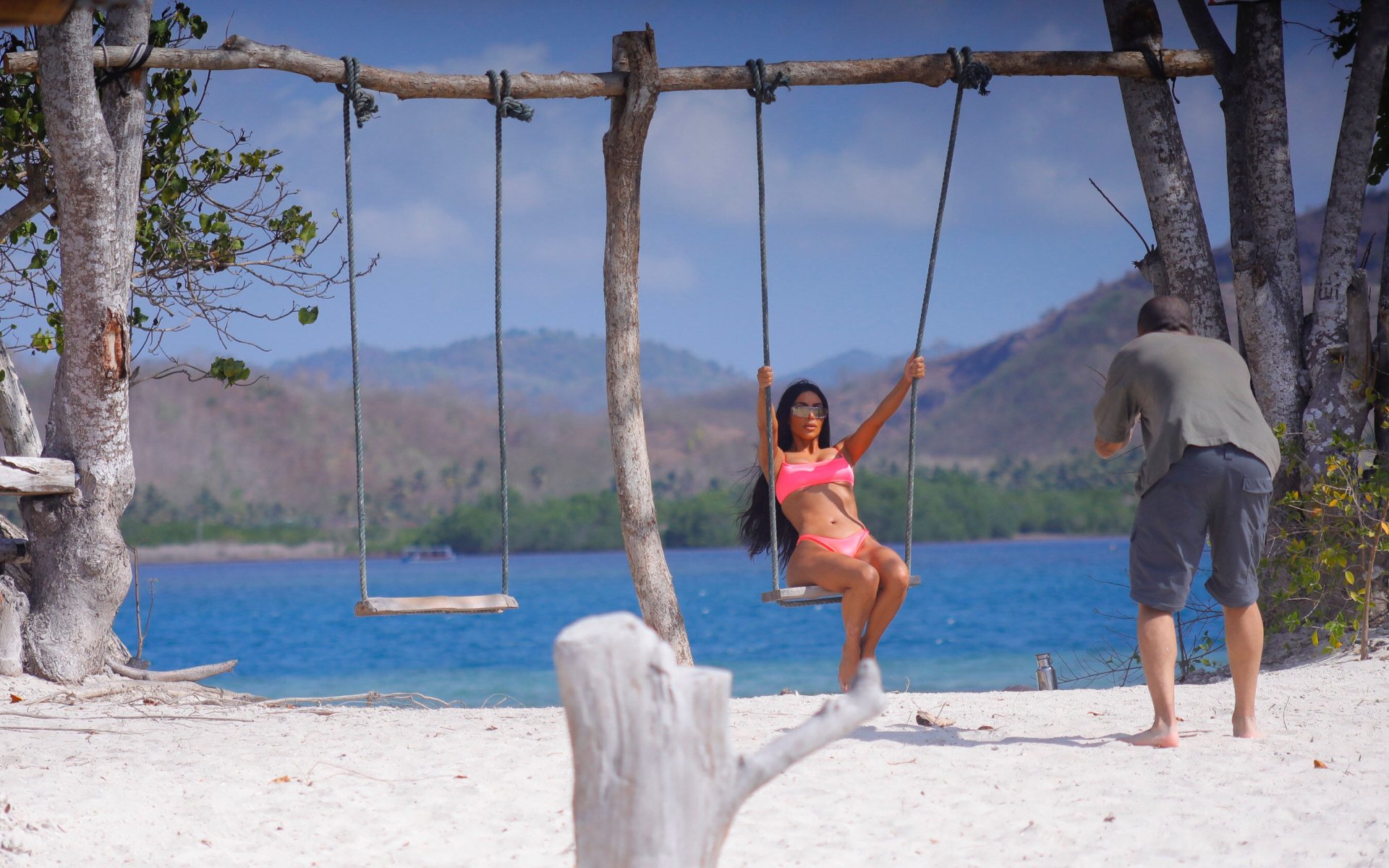 Ким и Кортни Кардашьян весело проводят время с детьми на пляже и на огромной лодке на Бали, 30.10.2018. Скотт Дисик тоже был там, играя с детьми в океане.