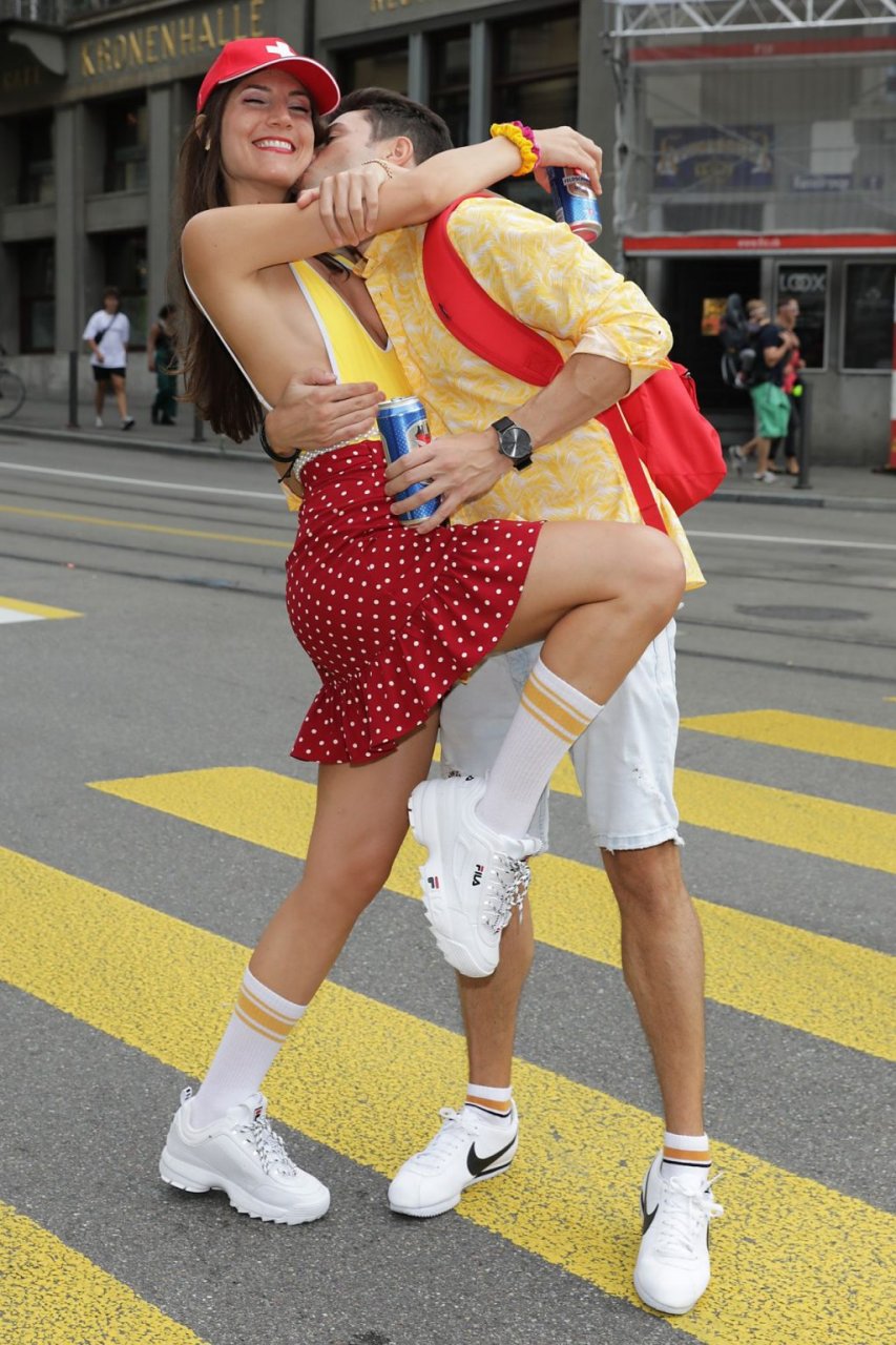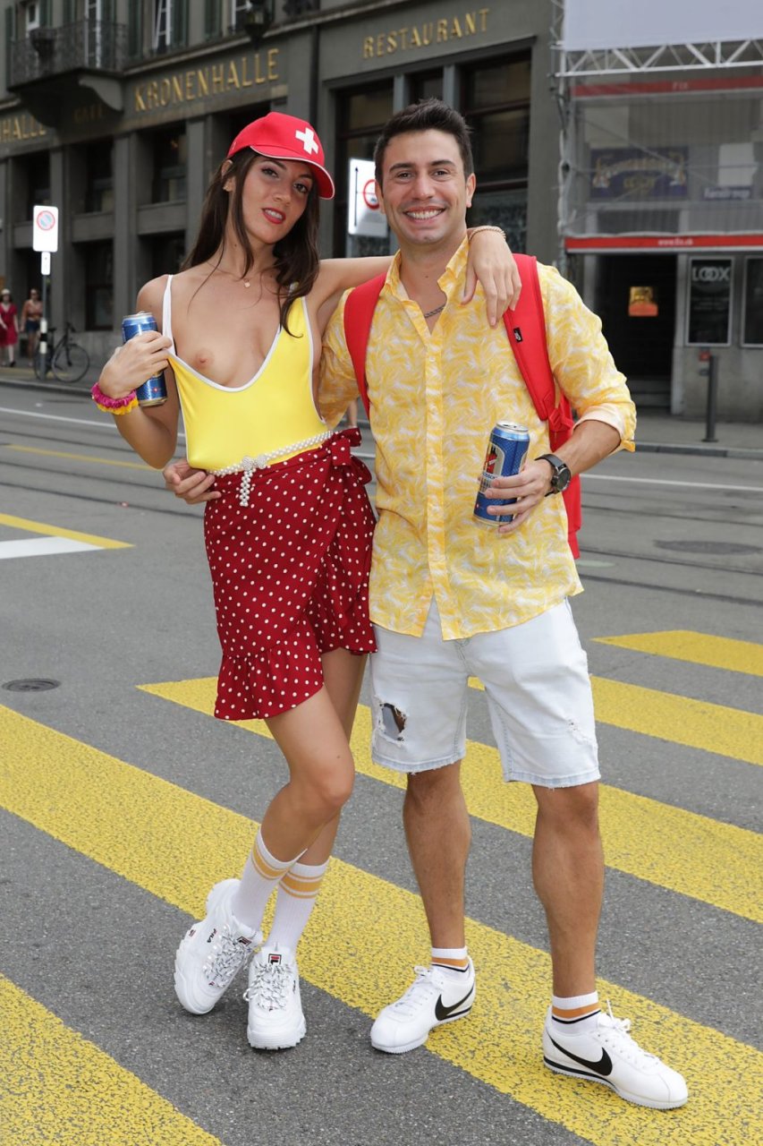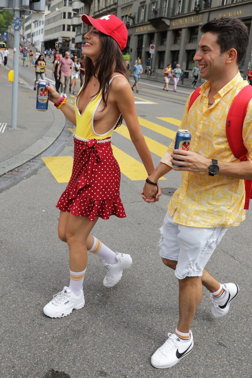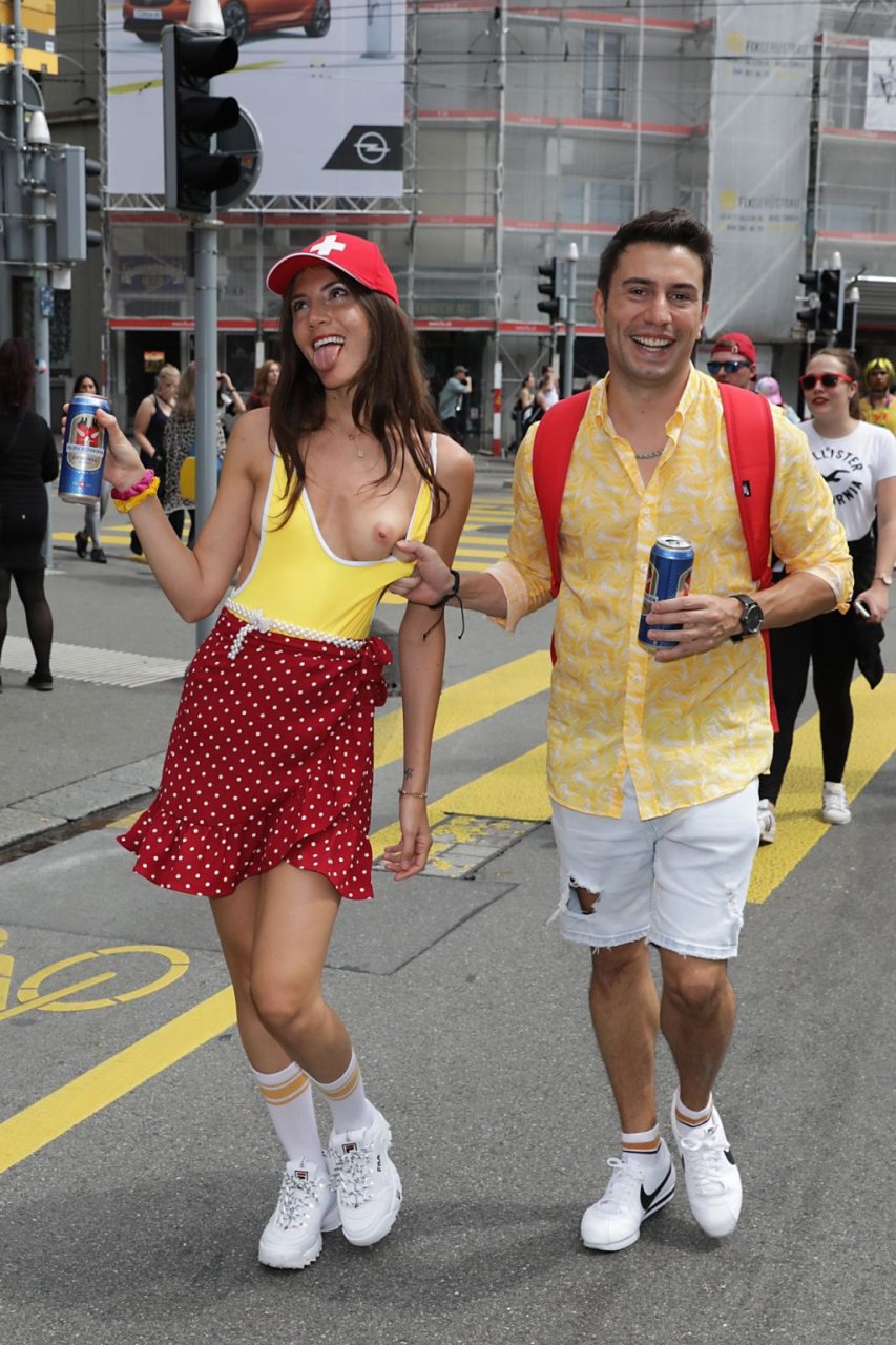 Kim & Paolo из MySweetApple (140 миллионов просмотров на Pornhub) замечены в Цюрихе во время Street Parade 2019, показывая свои сиськи, 08/11/2019.