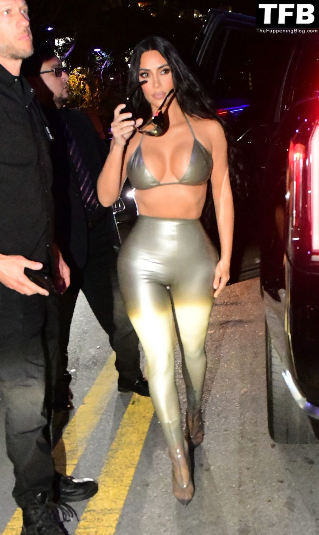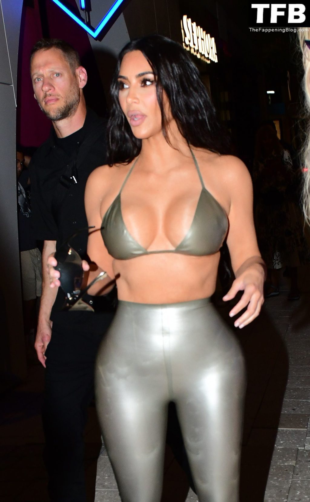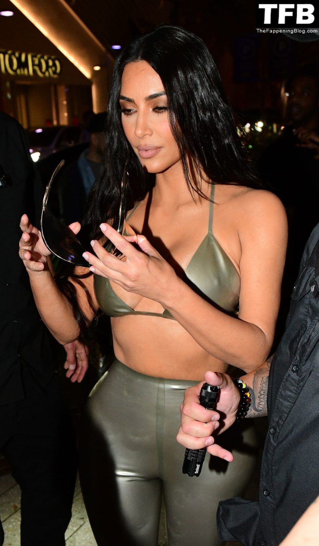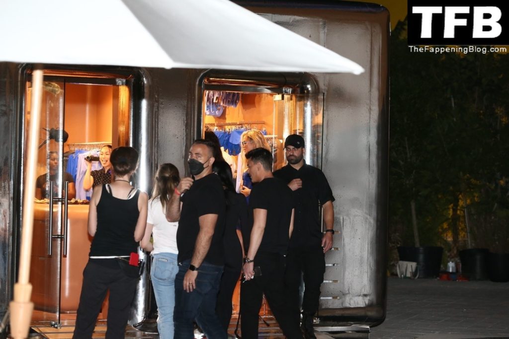 Ким носит откровенный топ и облегающие леггинсы, подчёркивающие её знаменитые формы. Хлои выбрала глубокое синее платье, которое полностью демонстрирует её стройные ноги! Мероприятие собрало множество поклонников, которые с нетерпением ждали встречи с звёздами реалити и возможности приобрести новинки мерча SKIMS.