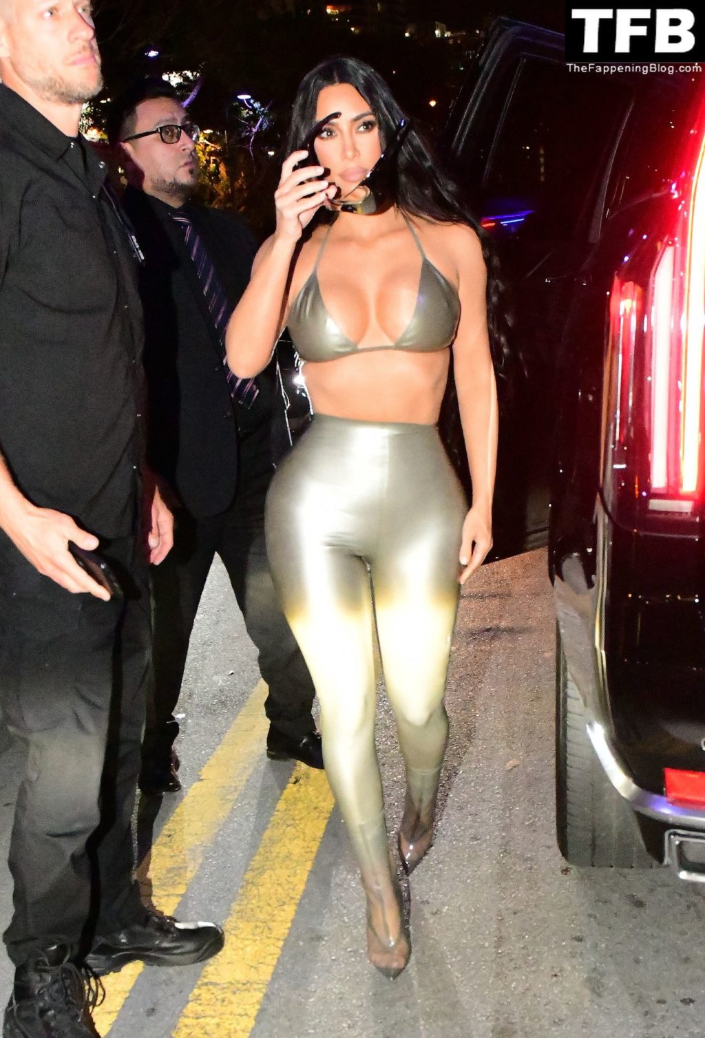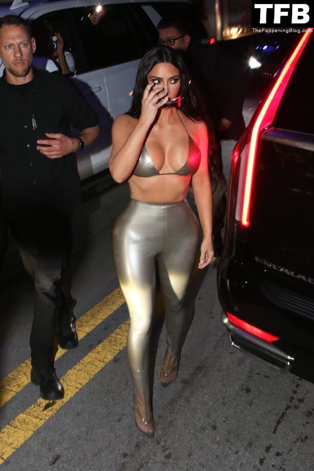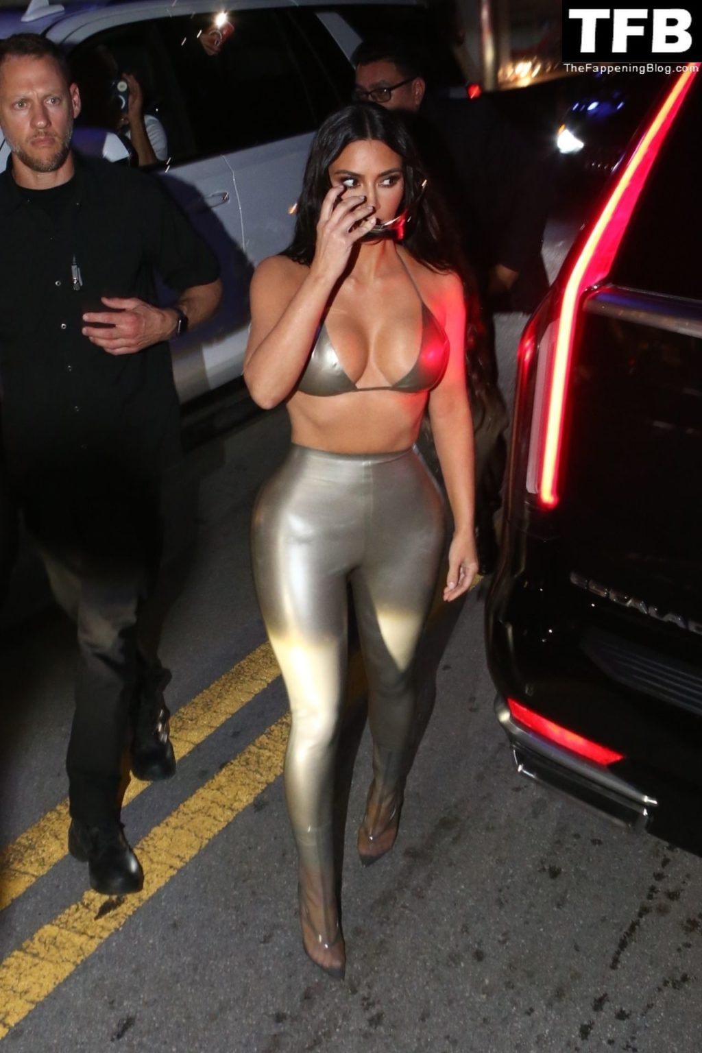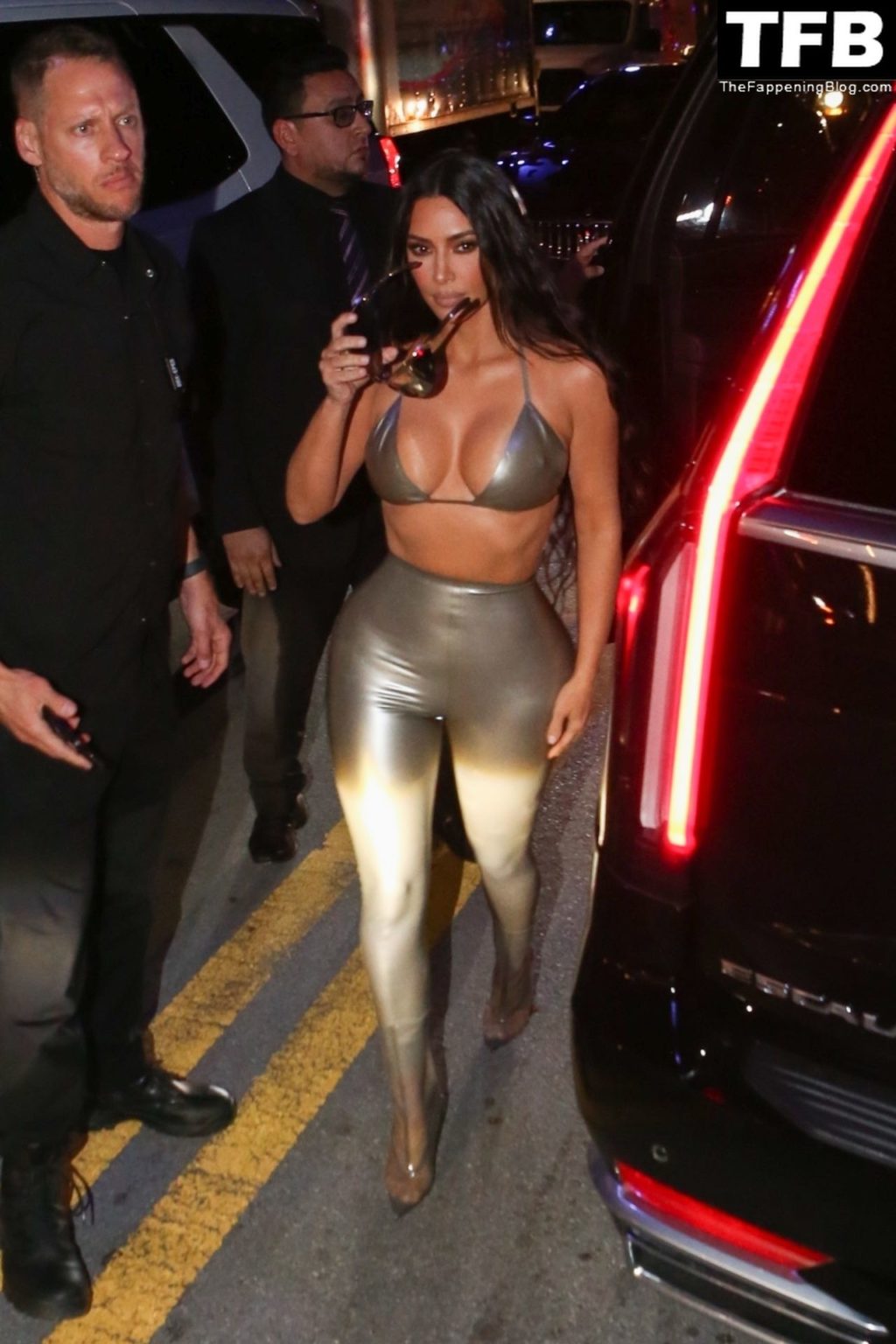 Ким носит откровенный топ и облегающие леггинсы, подчёркивающие её знаменитые формы. Хлои выбрала глубокое синее платье, которое полностью демонстрирует её стройные ноги! Мероприятие собрало множество поклонников, которые с нетерпением ждали встречи с звёздами реалити и возможности приобрести новинки мерча SKIMS.