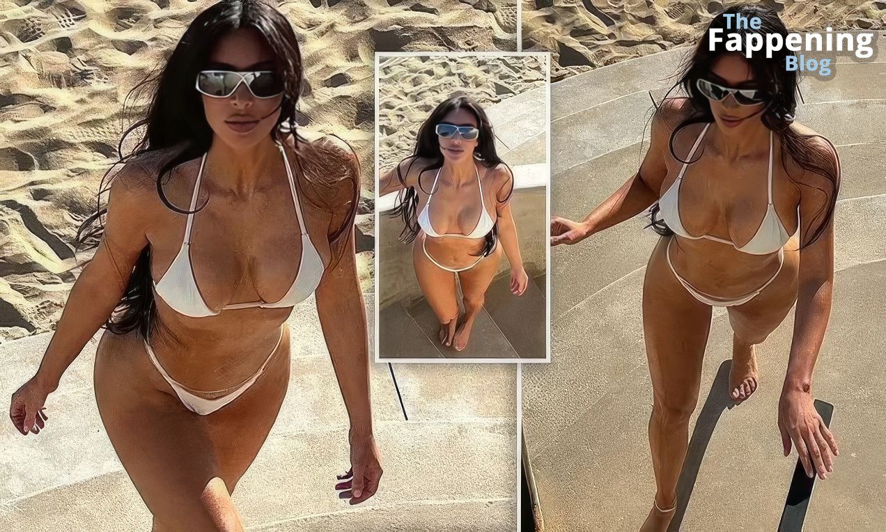Фотографии, сделанные Кендалл Дженнер, показывают Ким Кардашьян в белом бикини с пышными формами, несмотря на обвинения в том, что она сделала операцию, чтобы выглядеть как Меган Фокс – Instagram, 24.02.2023.