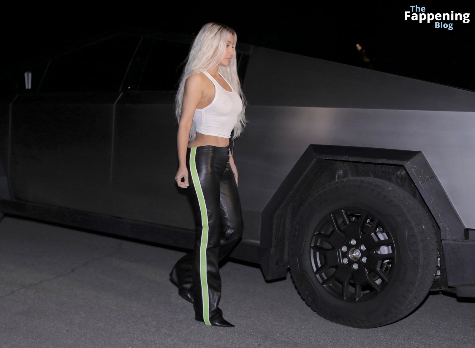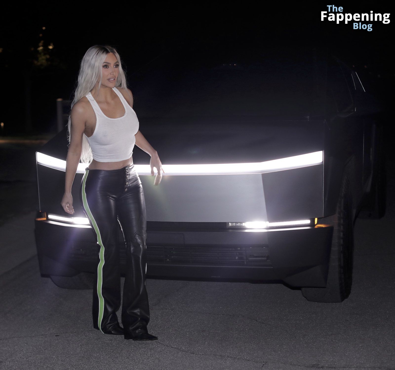 Ким Кардашьян показывает свои изгибы в Беверли-Хиллз, подчеркивая свою пышную грудь в прозрачном белом топе.