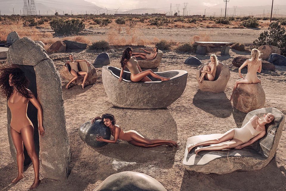 38-летняя звезда реалити-шоу очаровала фанатов своим новым проектом KKWBEAUTY. Обладательница пышных форм показала своё тело в нюдовом боди, позируя среди других девушек.
