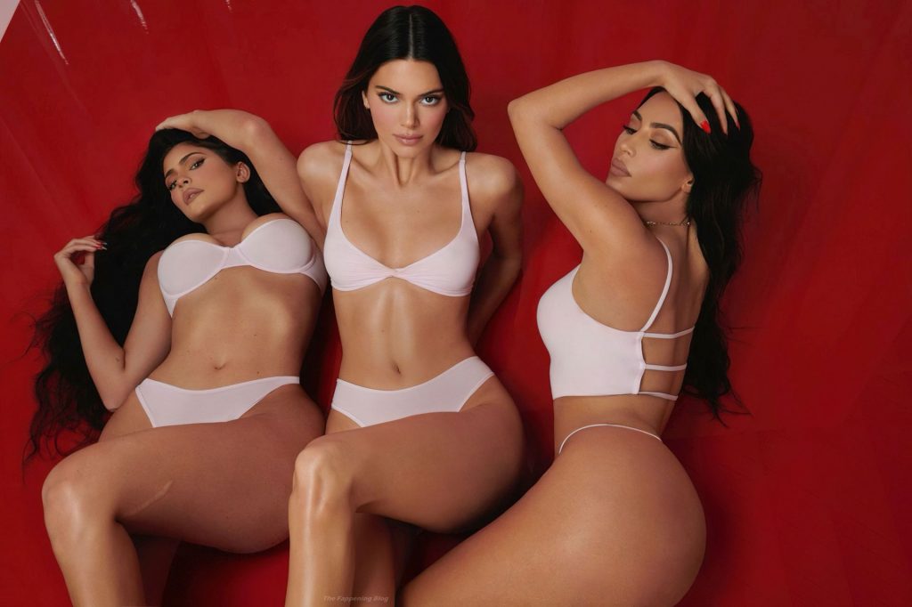 Ким Кардашьян, Кендалл & Кайли Дженнер демонстрируют свои формы, позируя в нижнем белье на промо-съемке коллекции SKIMS (февраль 2021).