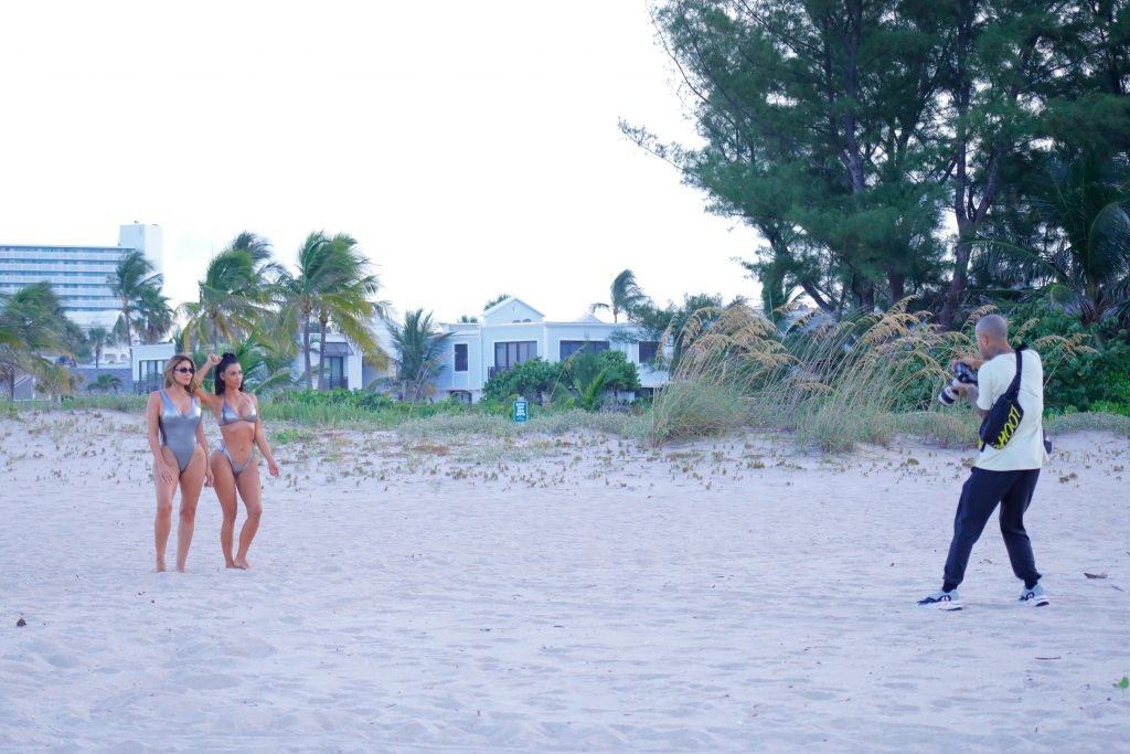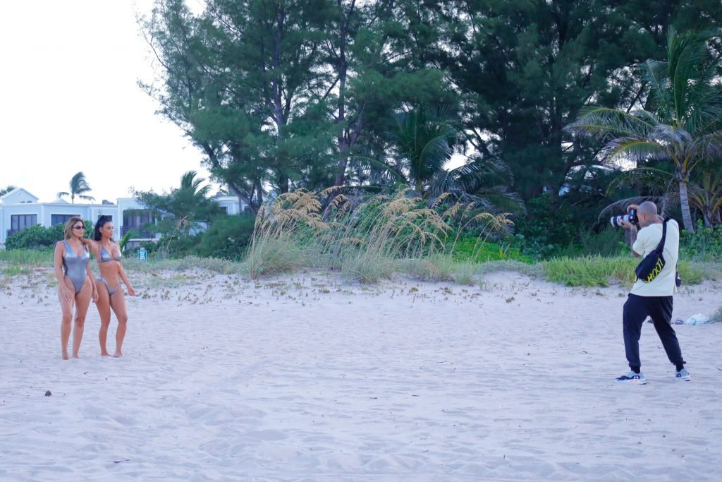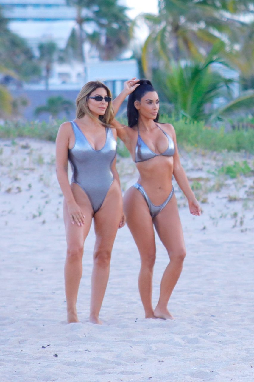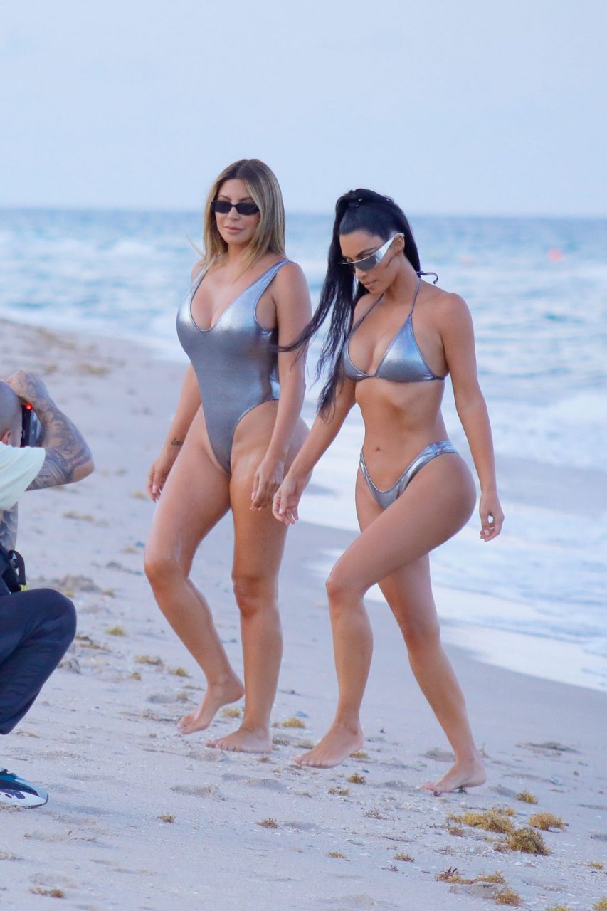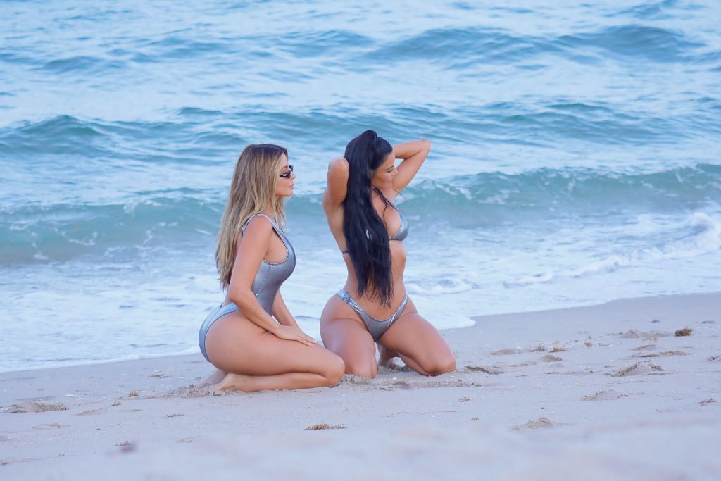 Пышные подруги Ким Кардашьян & Ларса Пиппен наслаждаются днем в одинаковых серебристых бикини/купальниках во время фотосессии в Майами, 18.08.2018.