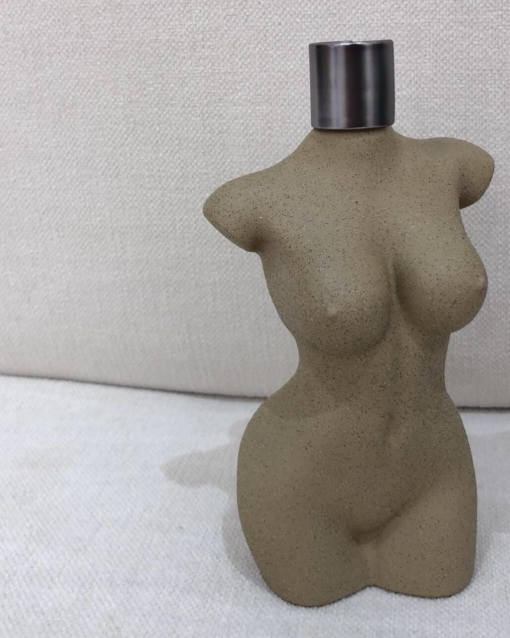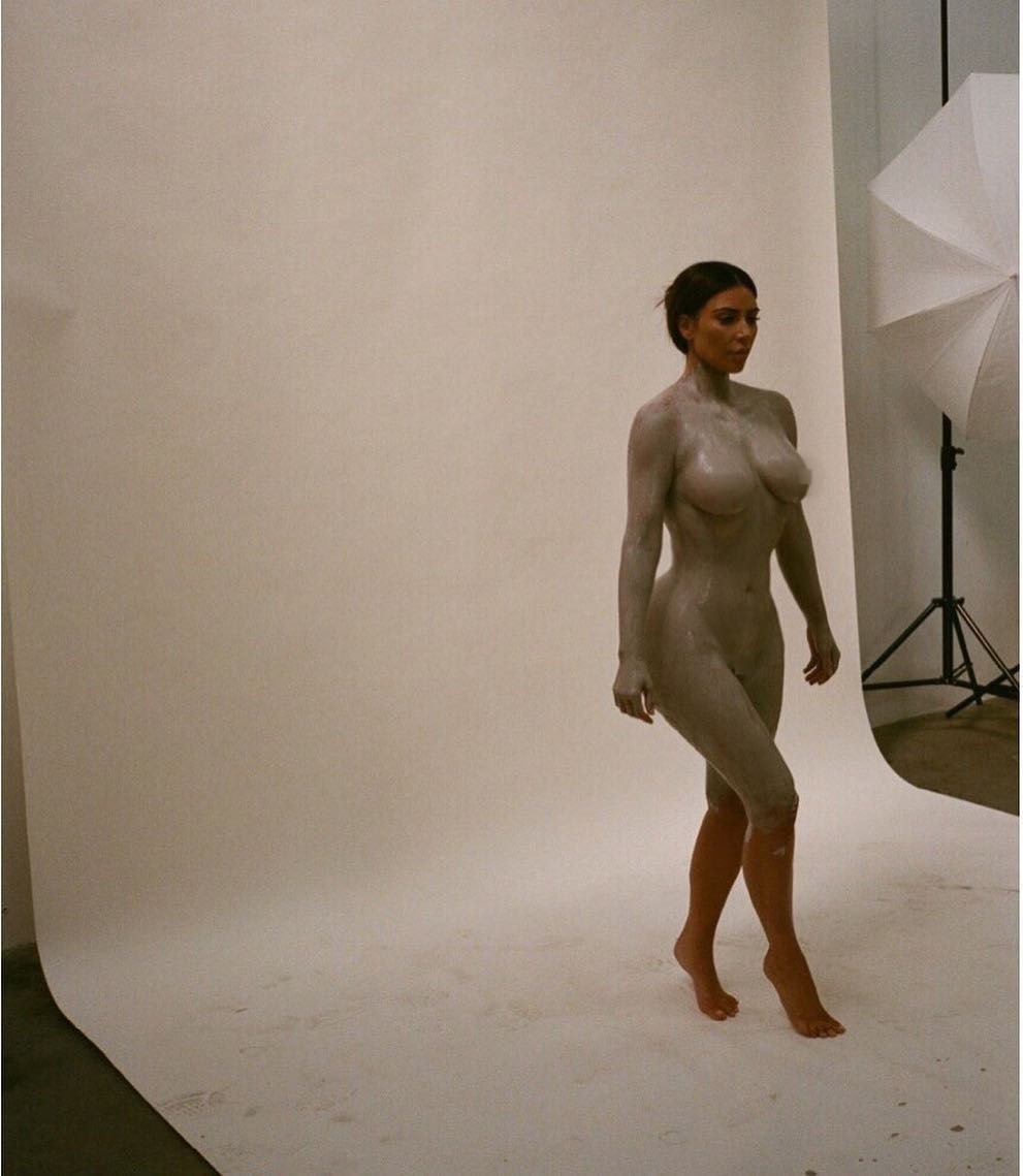 Флакон выполнен в форме её тела, которое она недавно показала участникам thefappeningblog.com и своим подписчикам в Instagram. Ким покрыла грудь, ягодицы и интимное место глиной, потому что делала слепок. Купите и храните маленькую копию Ким на своей полке.