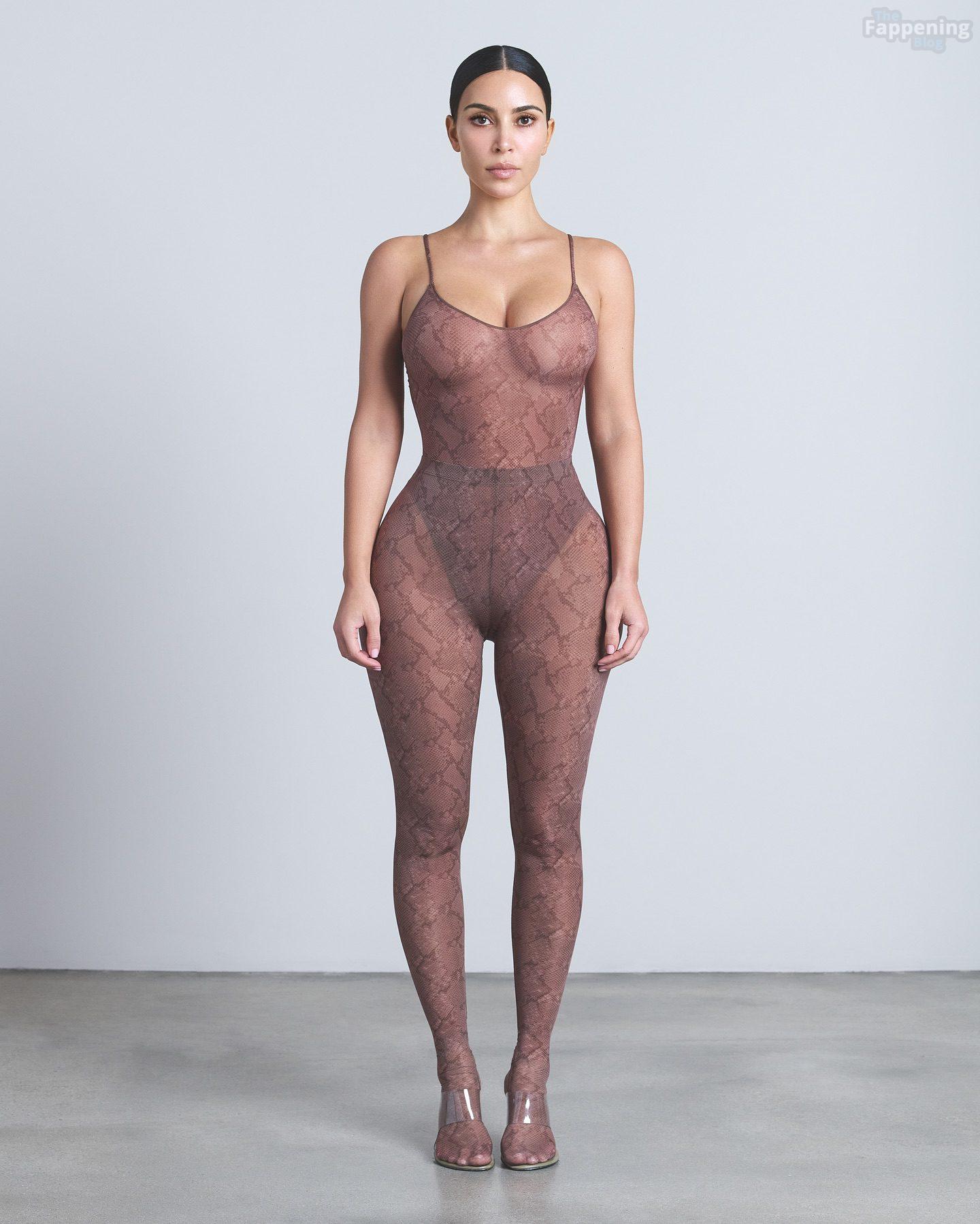Звезда The Fappening и предприниматель Ким Кардашьян демонстрирует свою грудь в новых снимках в змеиным принтом белья Skims.
