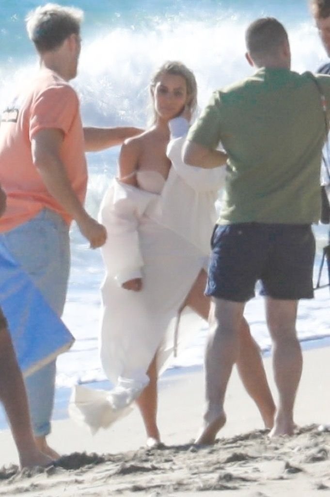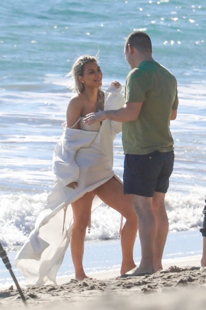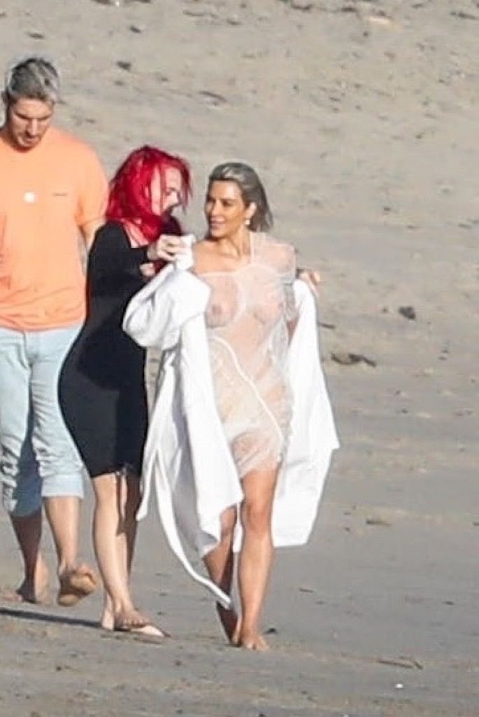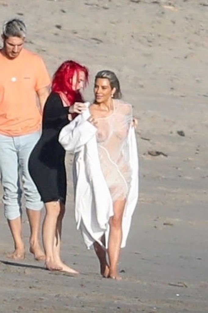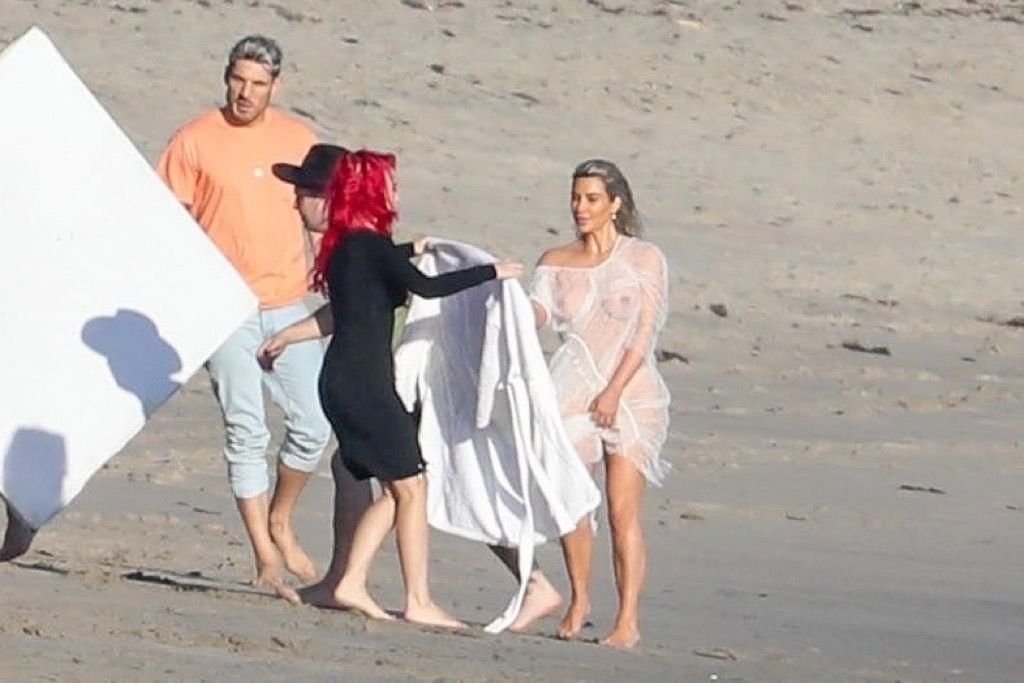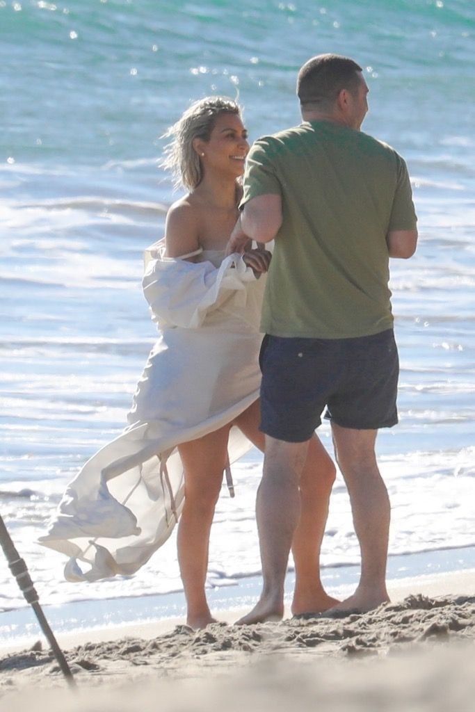 Телезвезда Ким Кардашьян, 37 лет, выглядит нелепо во время фотосессии на пляже в Малибу, 22.01.2018.
