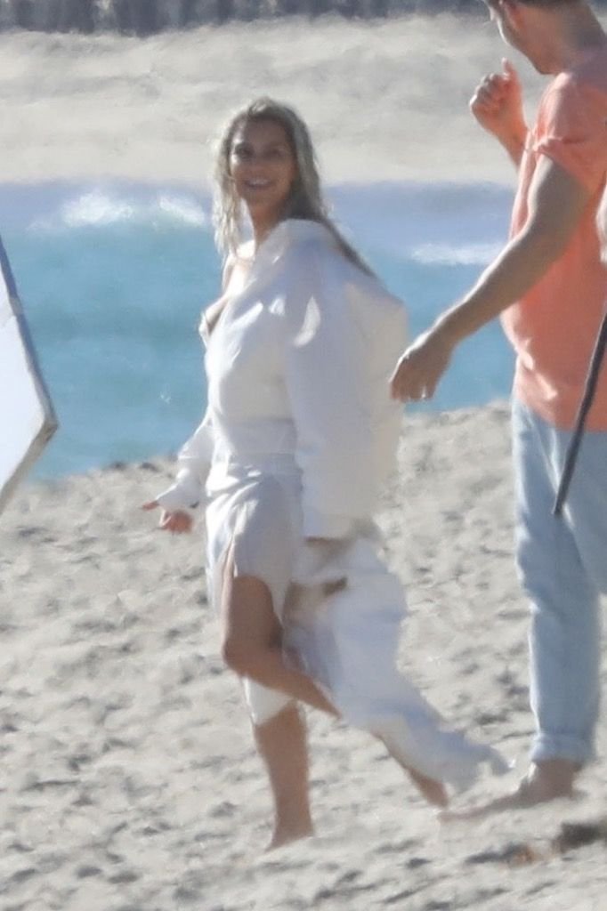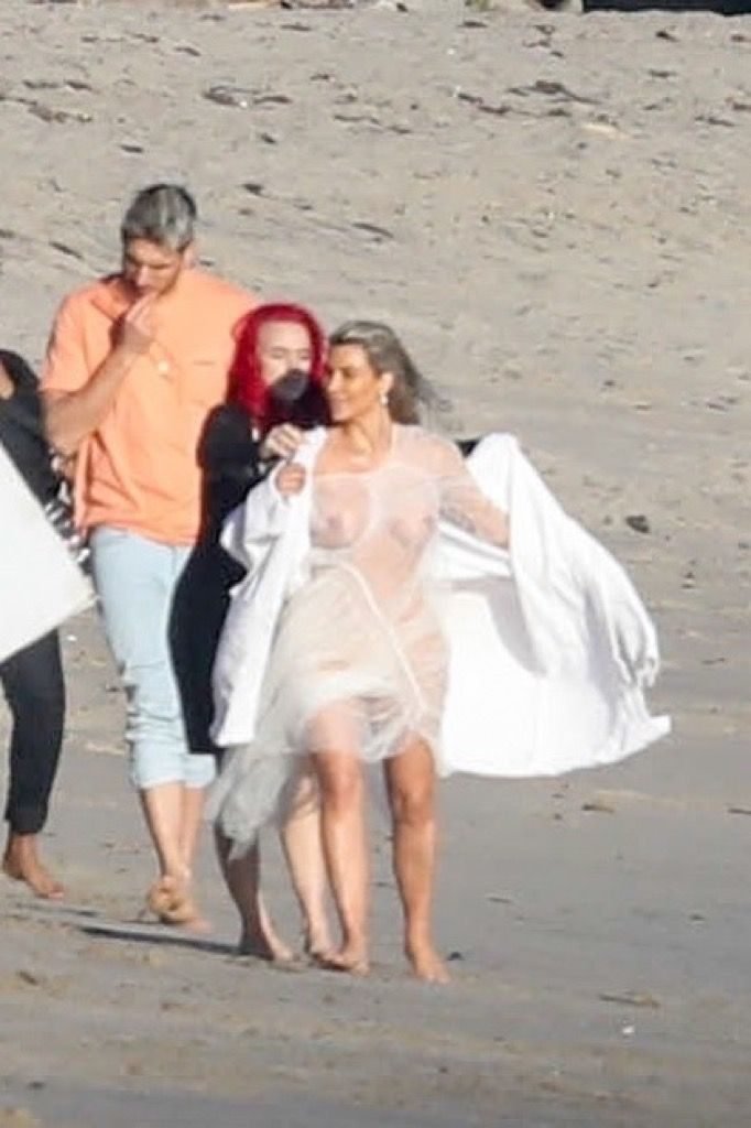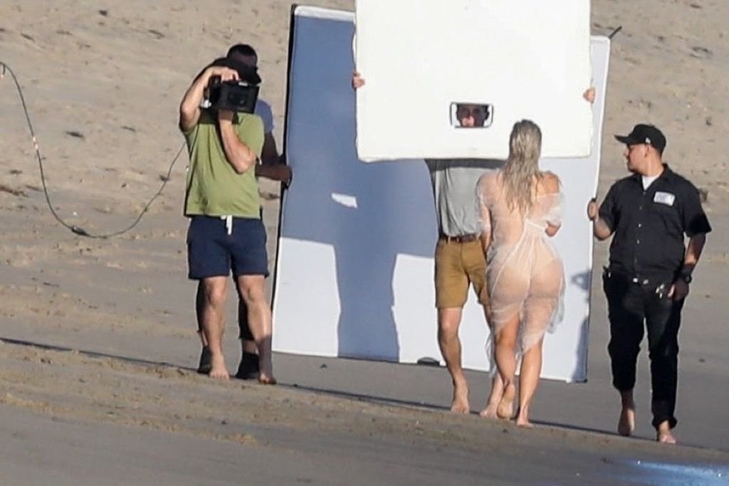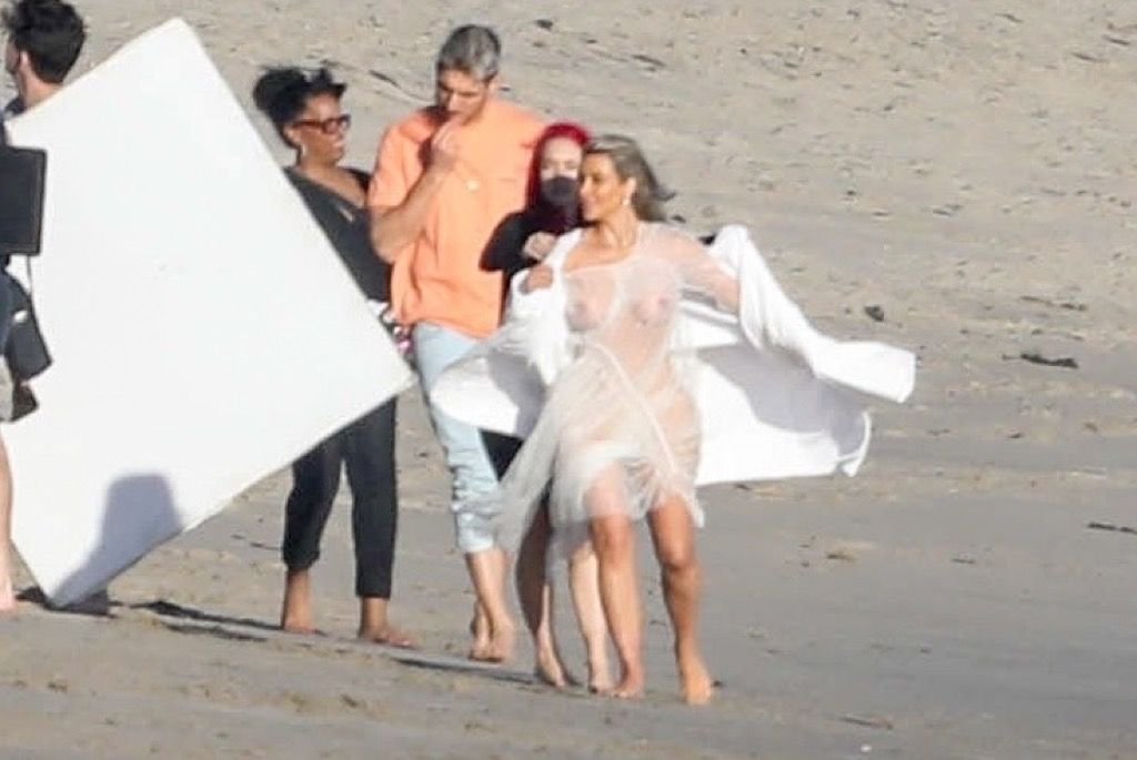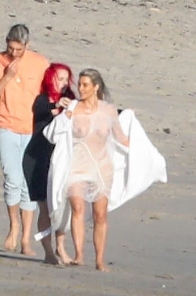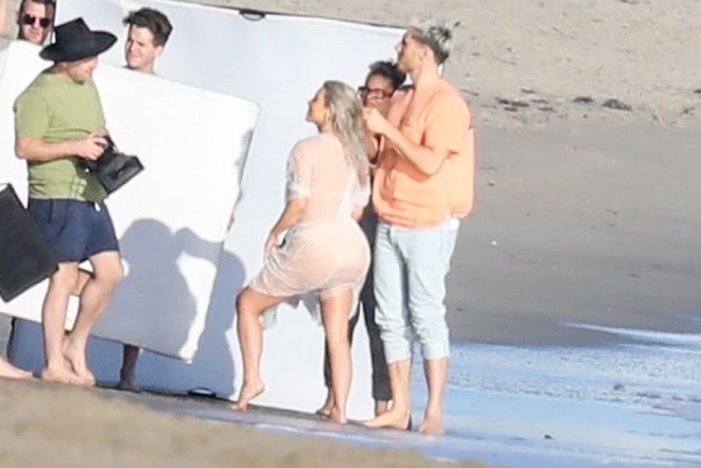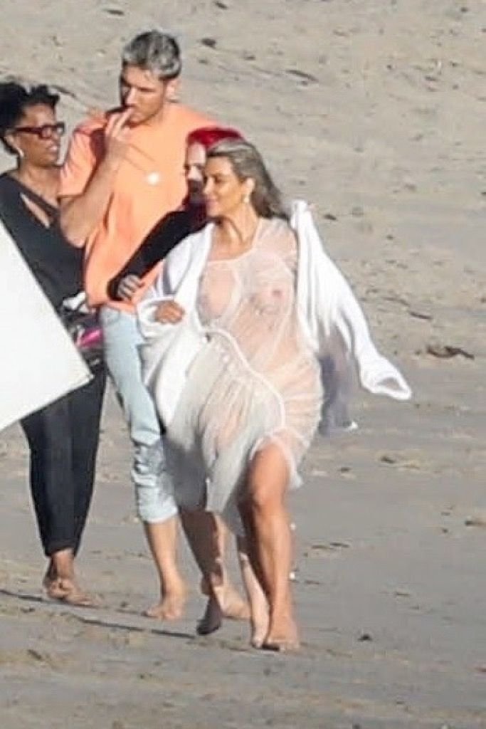 Телезвезда Ким Кардашьян, 37 лет, выглядит нелепо во время фотосессии на пляже в Малибу, 22.01.2018.