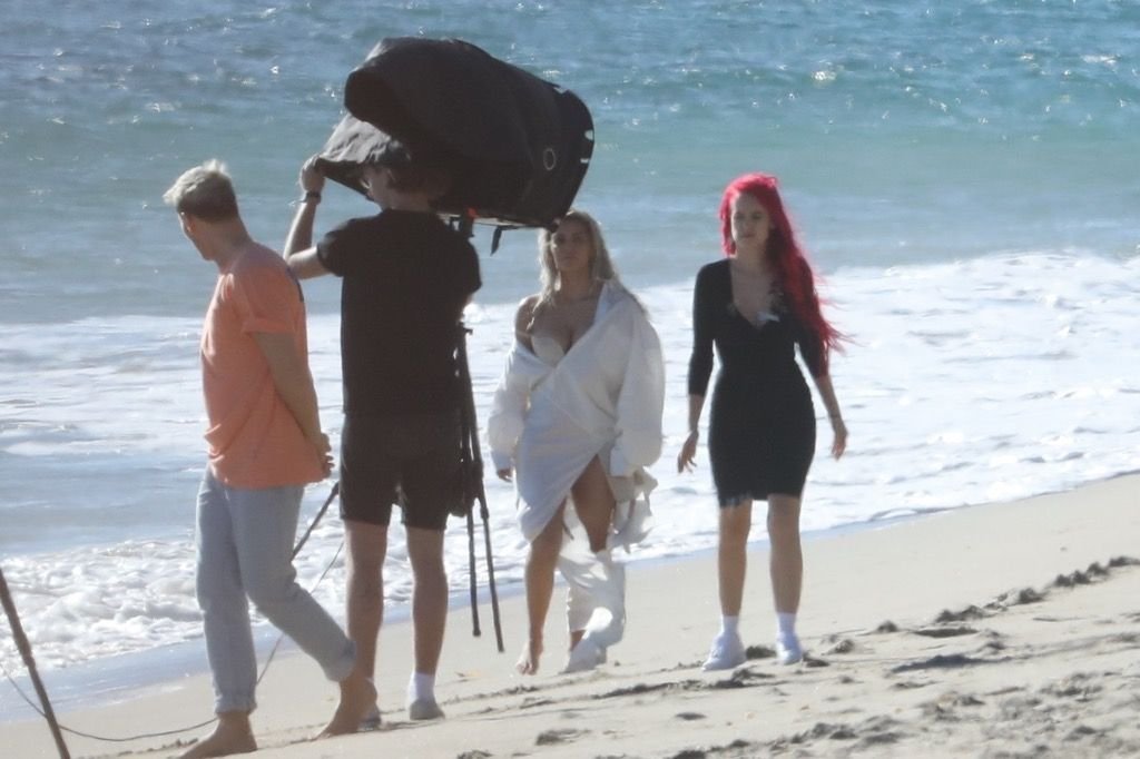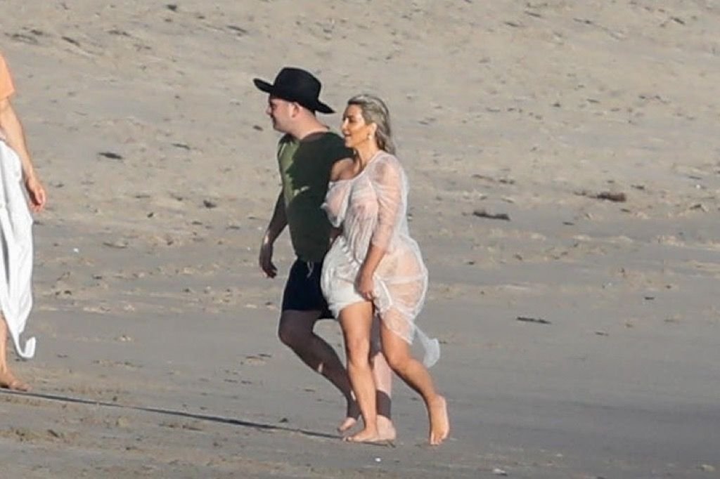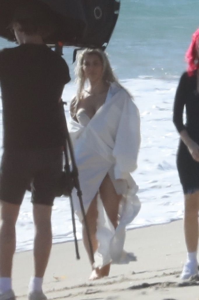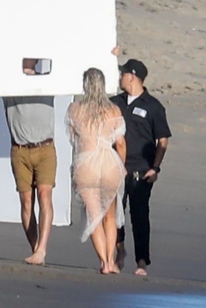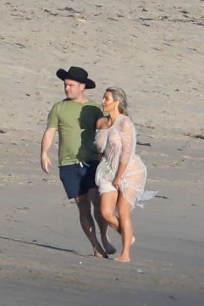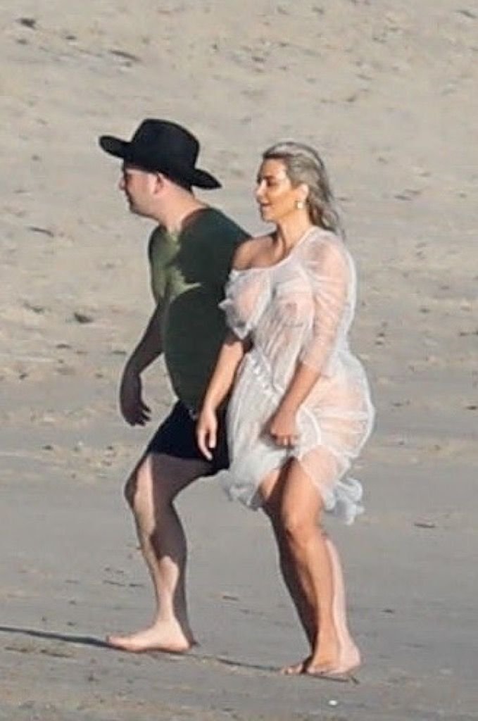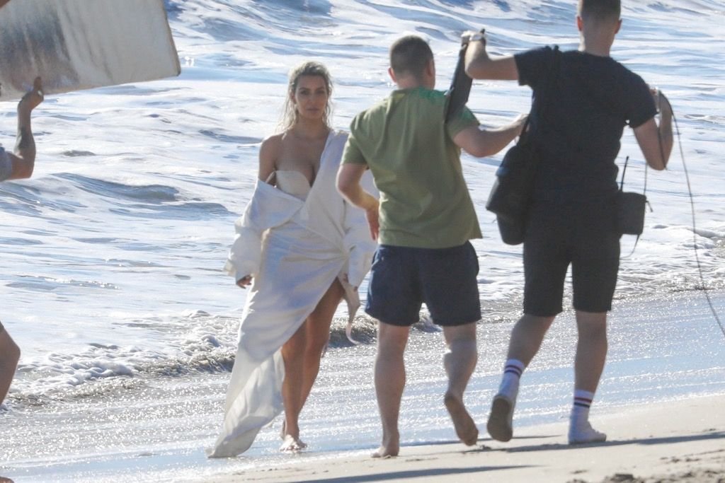Телезвезда Ким Кардашьян, 37 лет, выглядит нелепо во время фотосессии на пляже в Малибу, 22.01.2018.