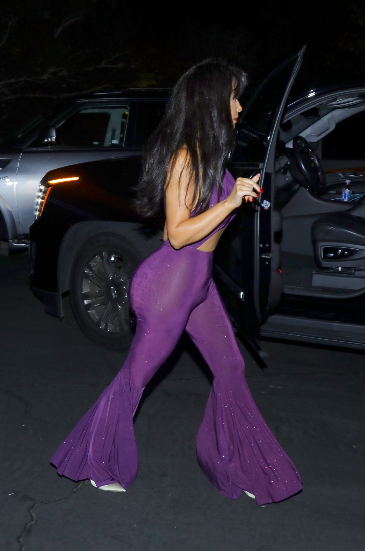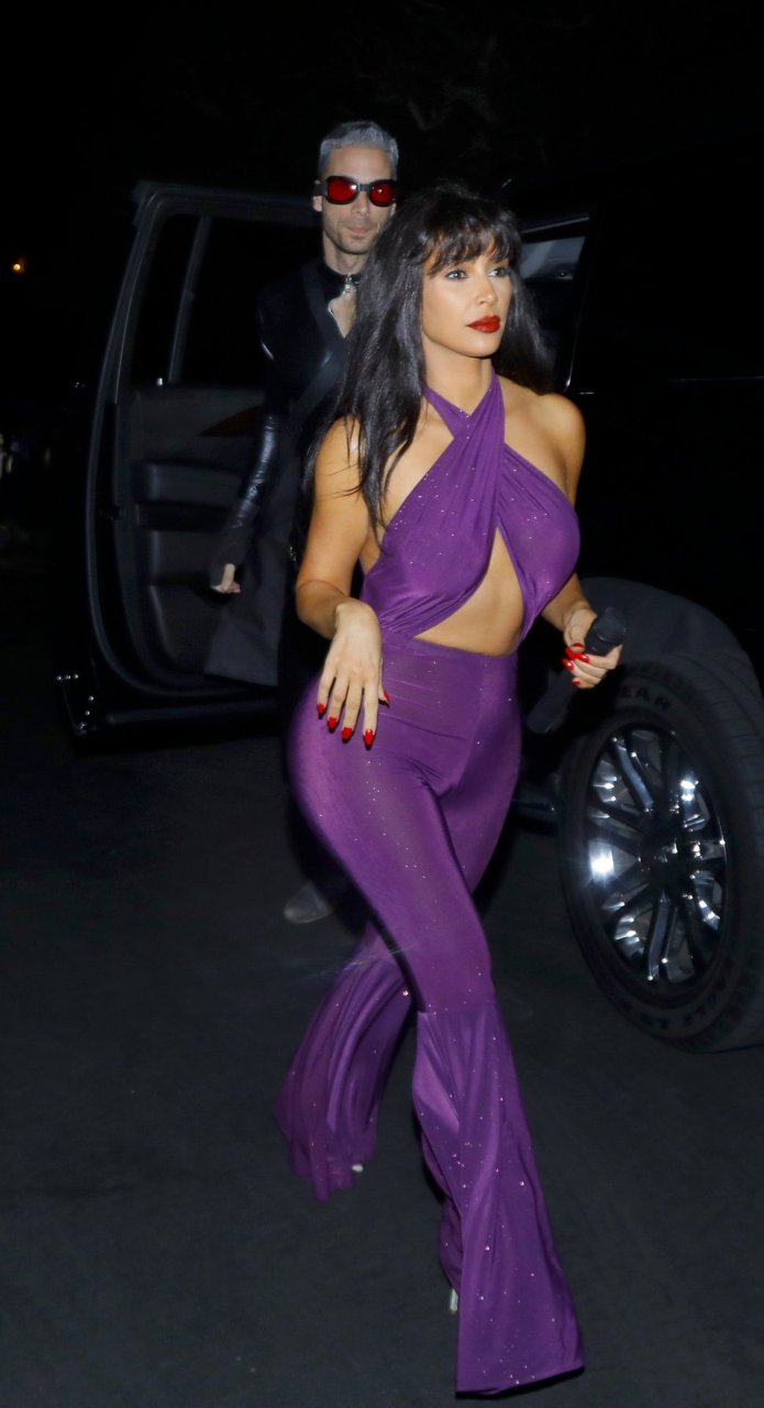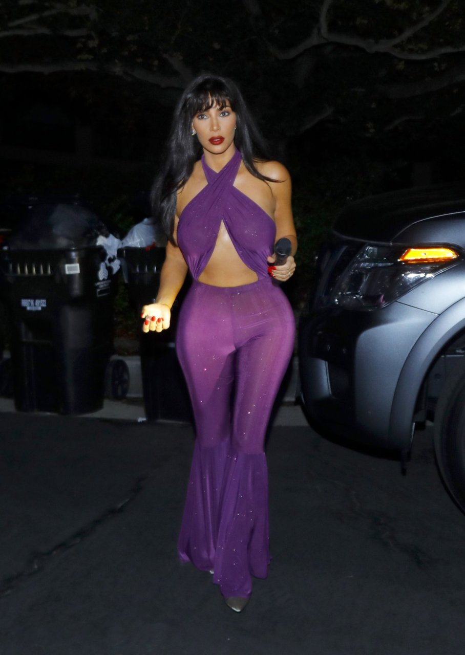 Так никто не собирается обсудить тот факт, что она одета точно так же, как Селена Квинтанилла? Это тот самый наряд, который Селена Квинтанилла носила на своем последнем живом выступлении в Хьюстоне, Техас, перед своей смертью. А теперь нам приходится смотреть на Ким Кардашьян в этом наряде. Думаю, это сработало, когда Дженнифер Лопес носила этот наряд в фильме, потому что у Дженнифер Лопес был похожий тип фигуры, и наряд был сделан из того же материала, а также потому, что она играла Селену Квинтаниллу в фильме. Этот наряд даже не выглядит сделанным из того же материала. Кажется, что этот наряд максимально растянут на Ким Кардашьян, и это очень плохо. Селена Квинтанилла на самом деле разработала этот наряд, и штанины должны быть выполнены в стиле клеш, потому что Селена была большой поклонницей диско. У Ким Кардашьян даже нет куртки, которая должна идти поверх. Этот наряд не только растянут вокруг её ягодиц и бедер, но и сделан из очень тонкого материала, через который определённо видно. Это совсем не хорошо.