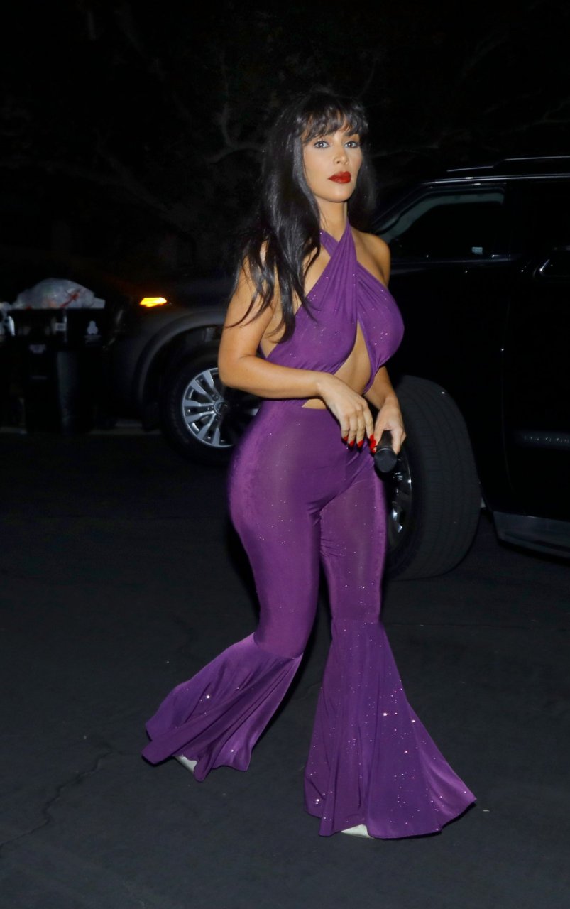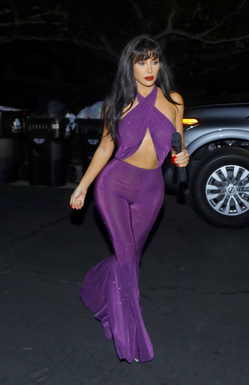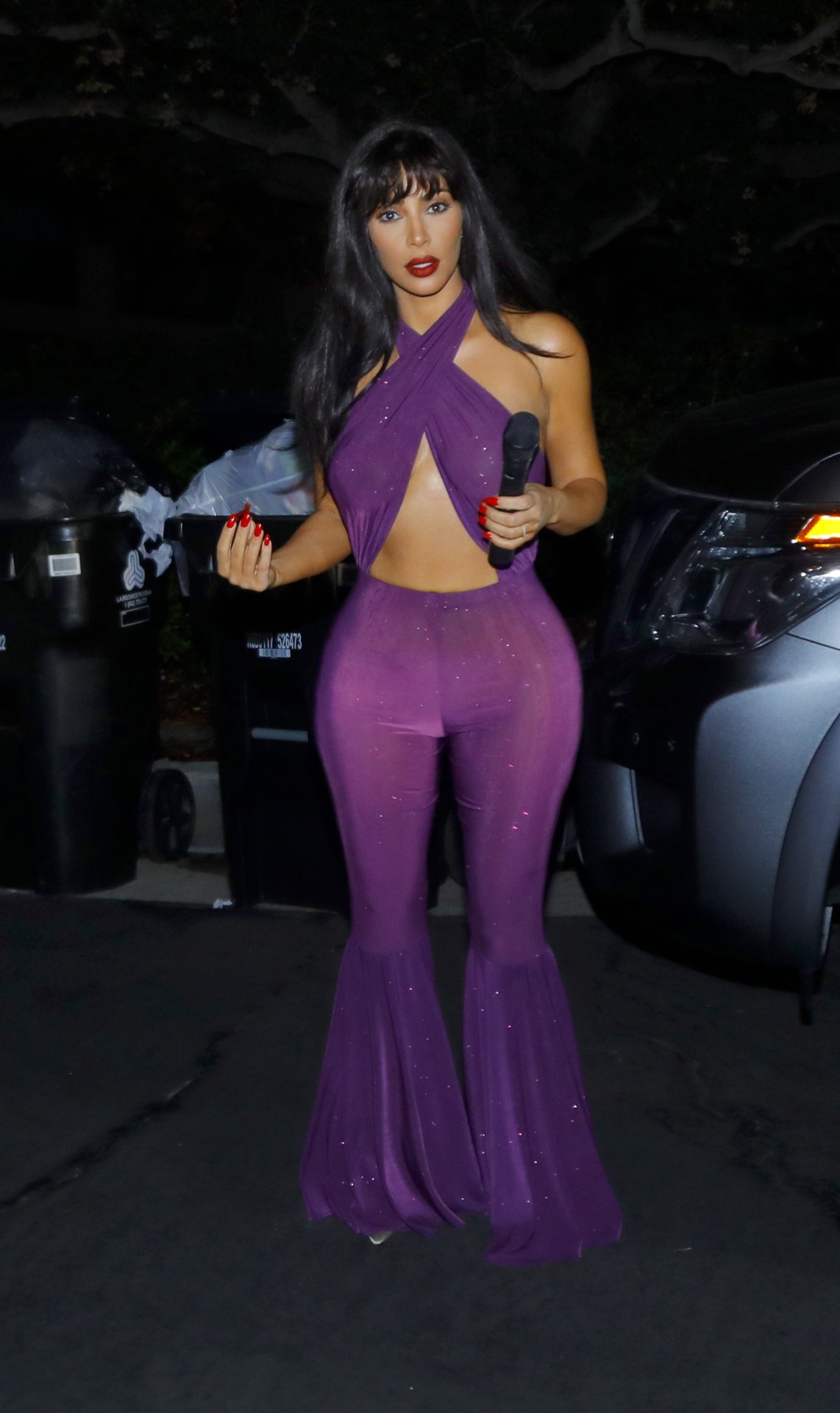 ‘Звезда шоу «Семейство Кардашьян» Ким Кардашьян наряжается в покойную певицу Селену Квинтанилья-Перес в Лос-Анджелесе, 31.10.2017.