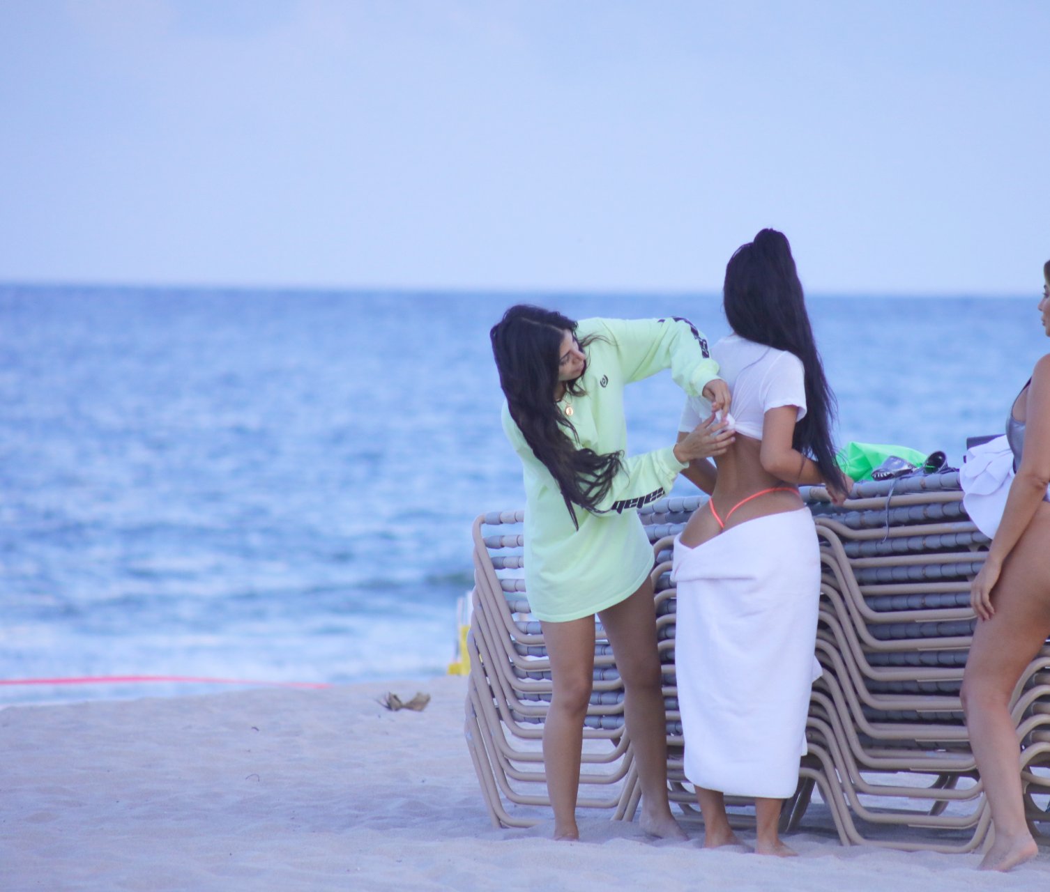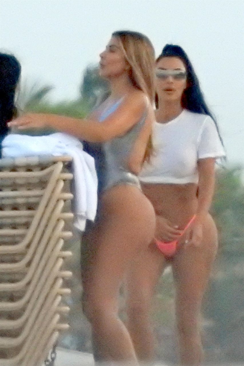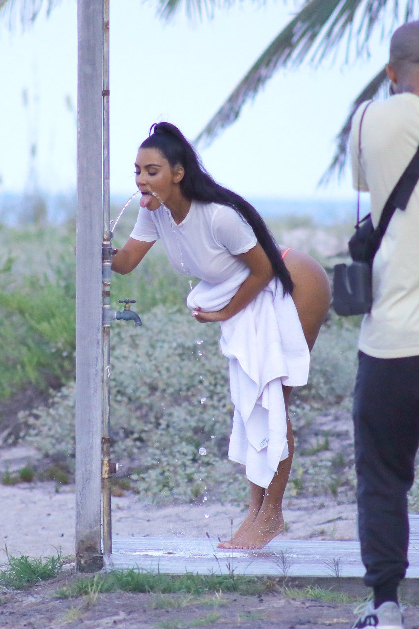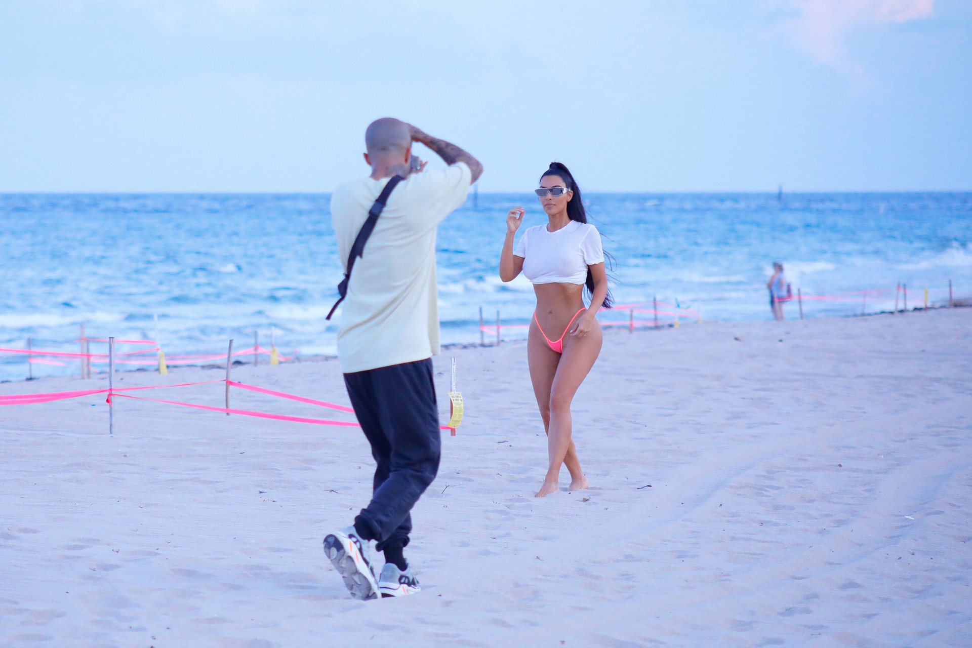 Ким Кардашьян Уэст демонстрирует свои знаменитые изгибы в Майами, надевая стринги-бикини, 17.08.2018. Всего через несколько мгновений после выхода в Майами, KKW смягчила образ для откровенной фотосессии, когда звезда реалити была замечена в неоново-розовом купальнике-стрингах.