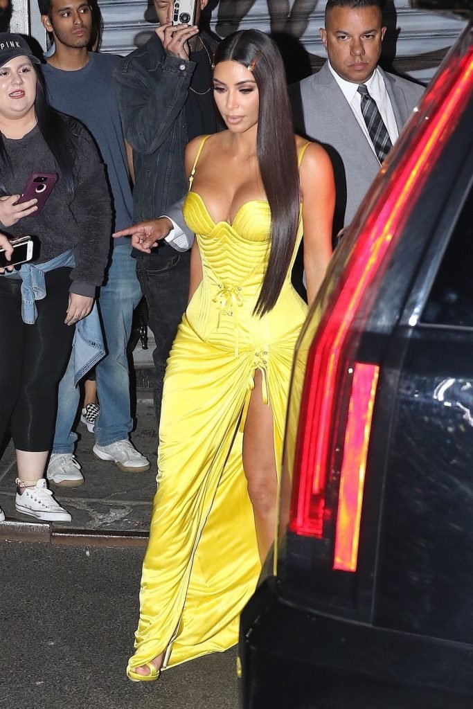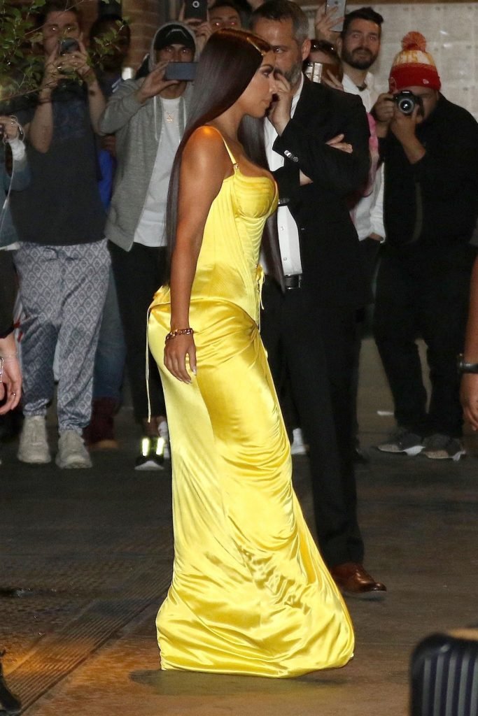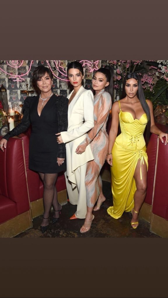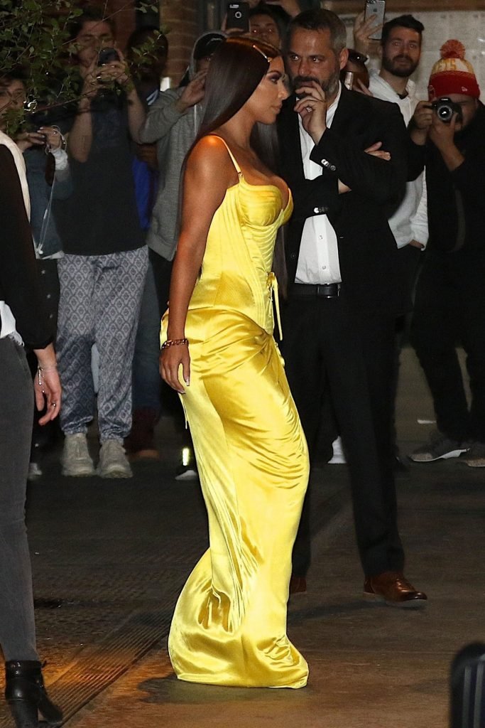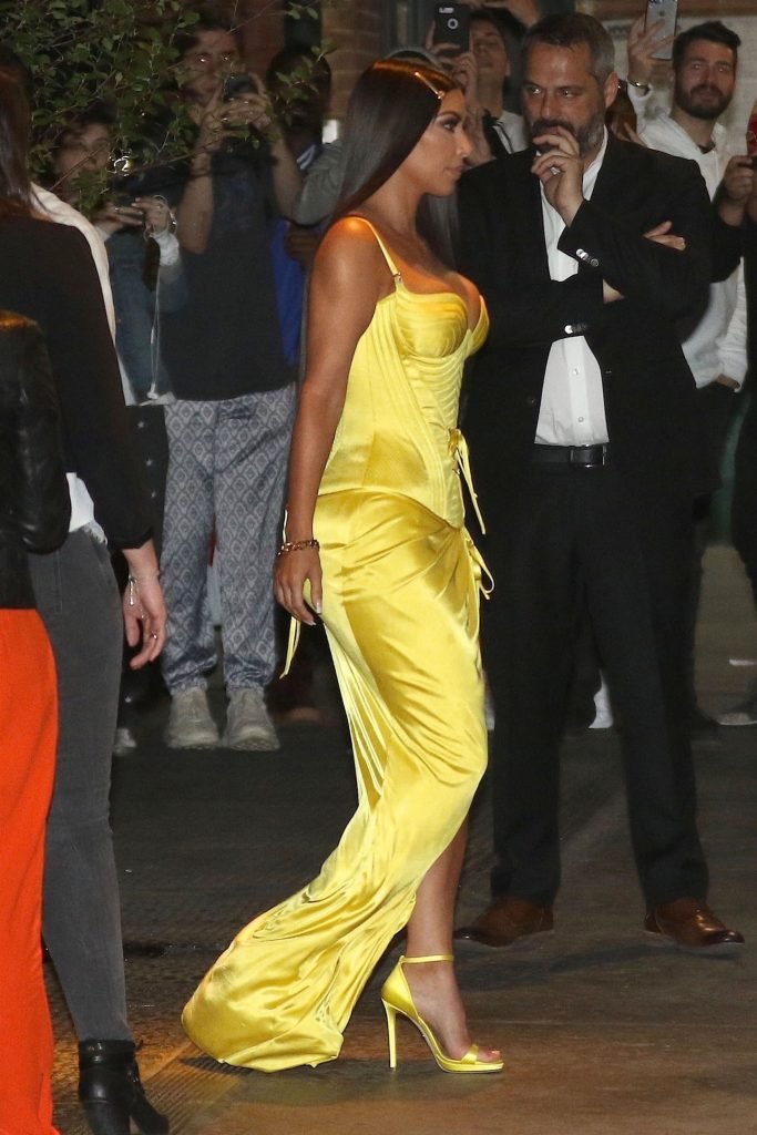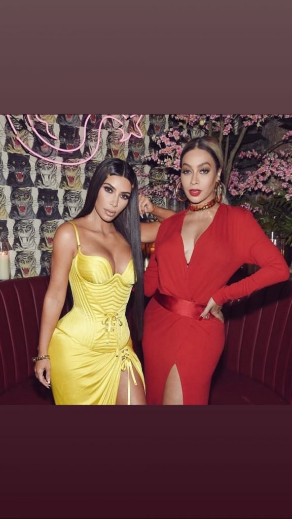 Ким Кардашьян, 37 лет, угощает Кайли Дженнер, Ла Ла Энтони и Джордин Вудс ужином в Нью-Йорке, 08.05.2018. Девушки все выглядели стильно в облегающих ярких платьях для своего ужина.