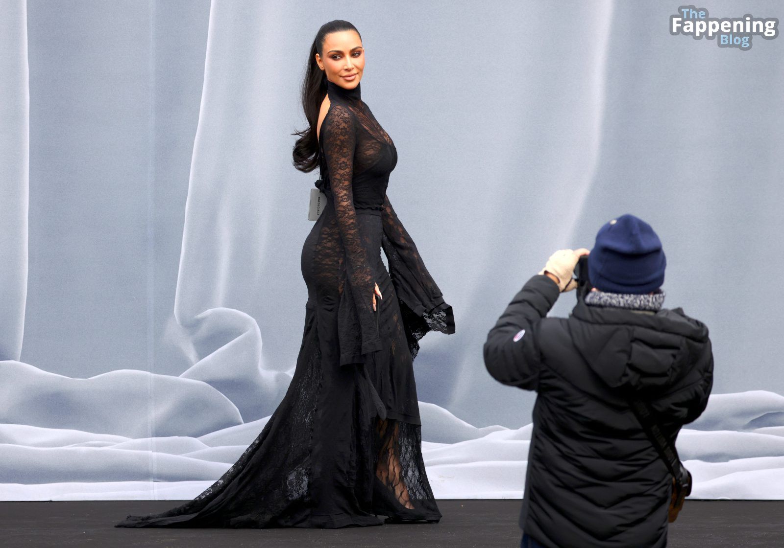 Поймайте потрясающую атмосферу Ким Кардашьян на показе мод Balenciaga, где она эффектно подчеркивает свои роскошные формы и знаменитые ягодицы.
