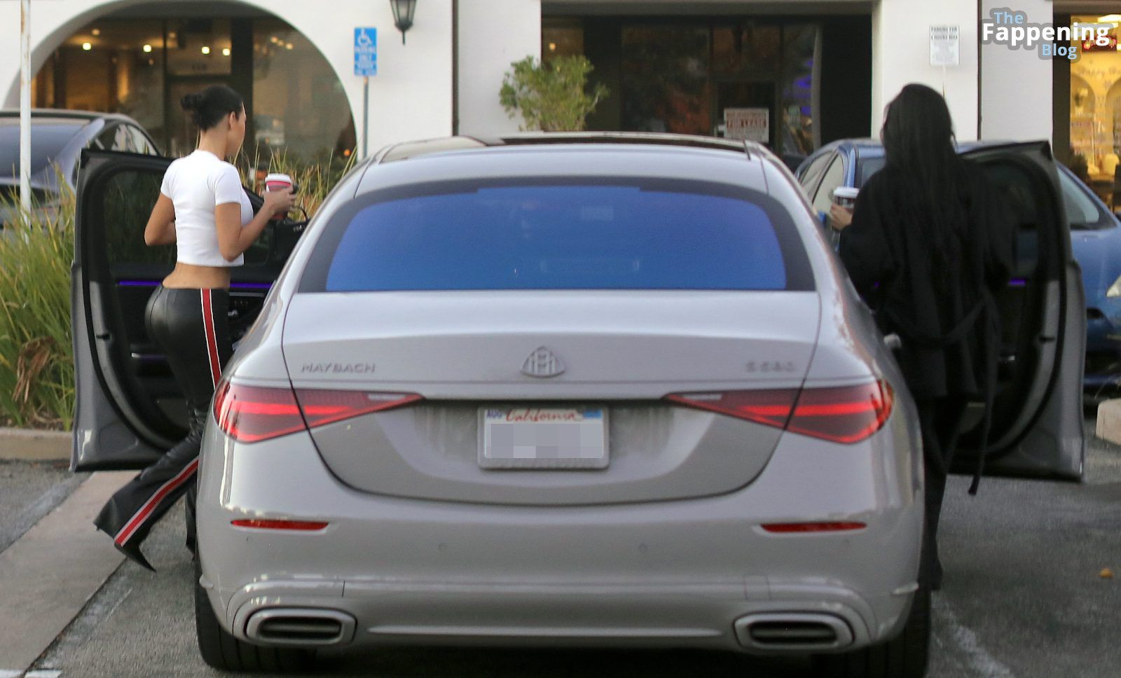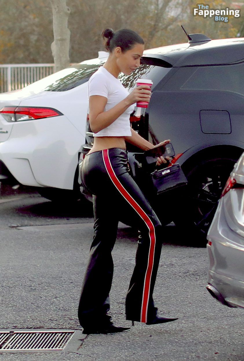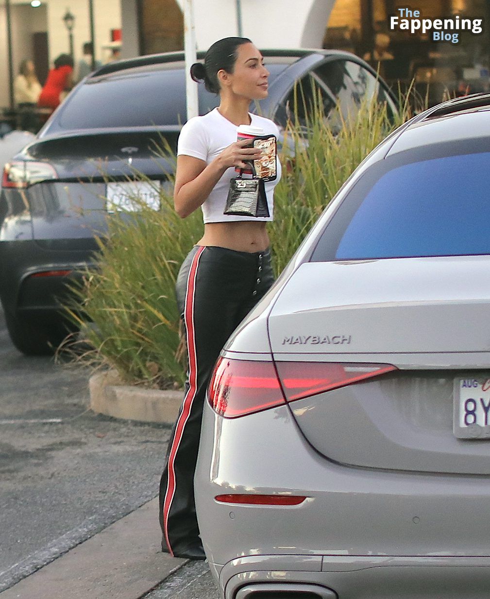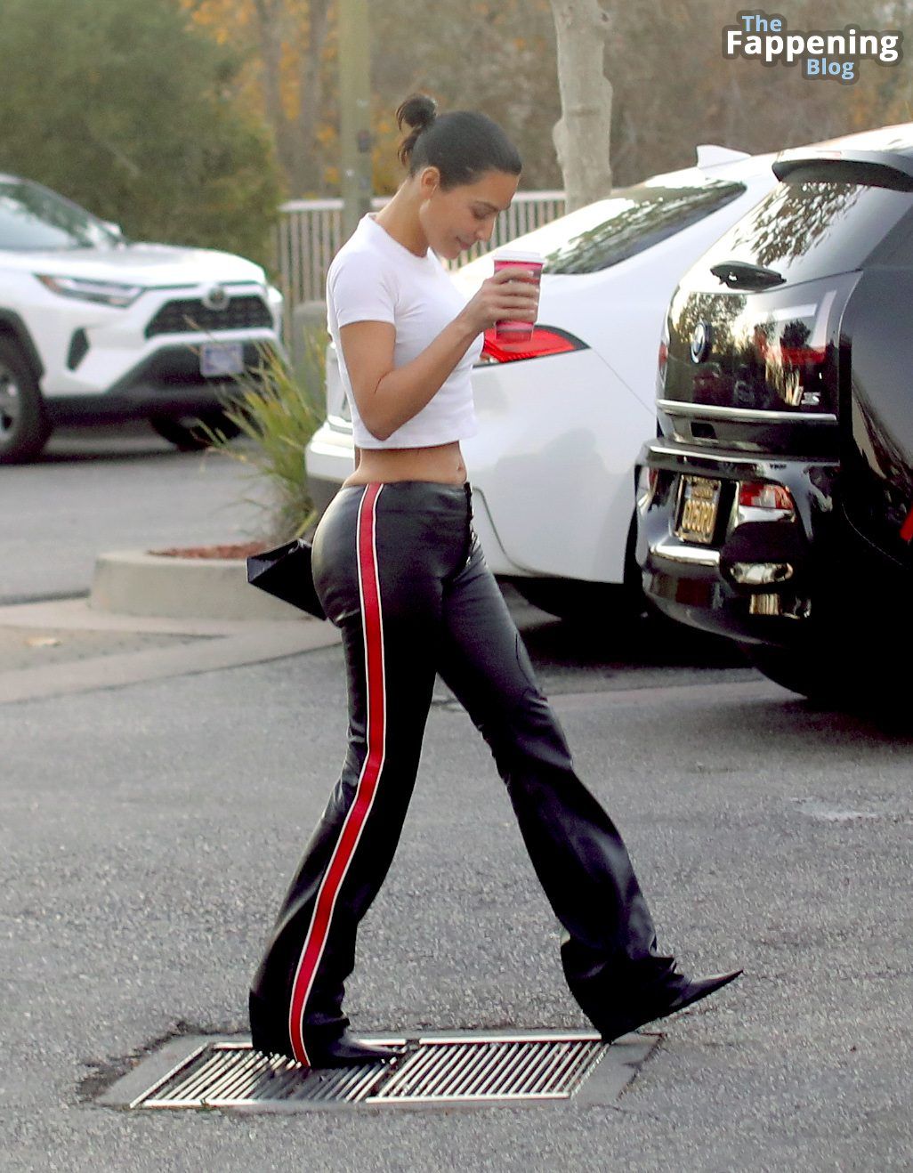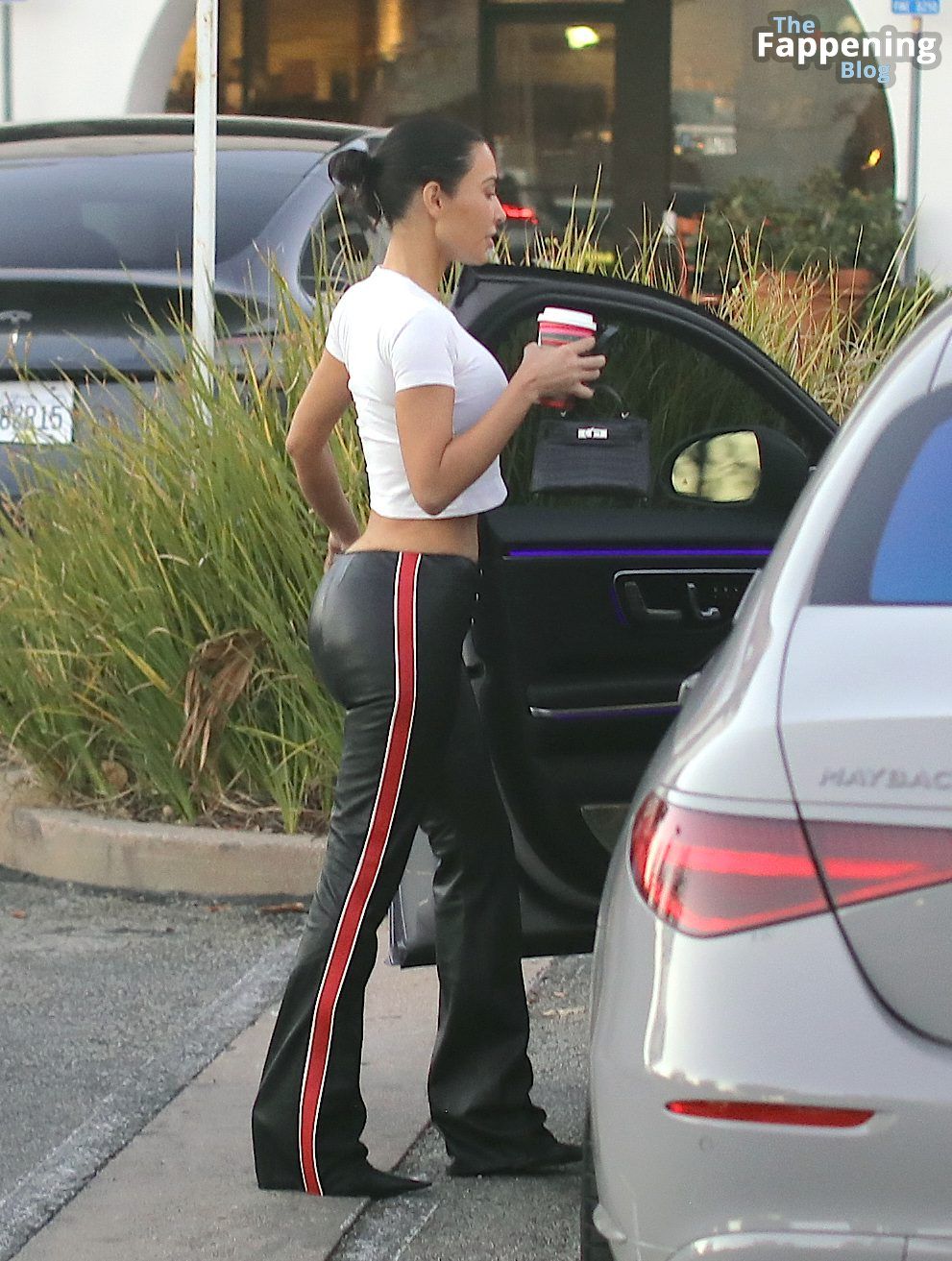 Ким Кардашьян демонстрирует свои достоинства в белом топе и кожаных брюках во время похода за кофе в Лос-Анджелесе.