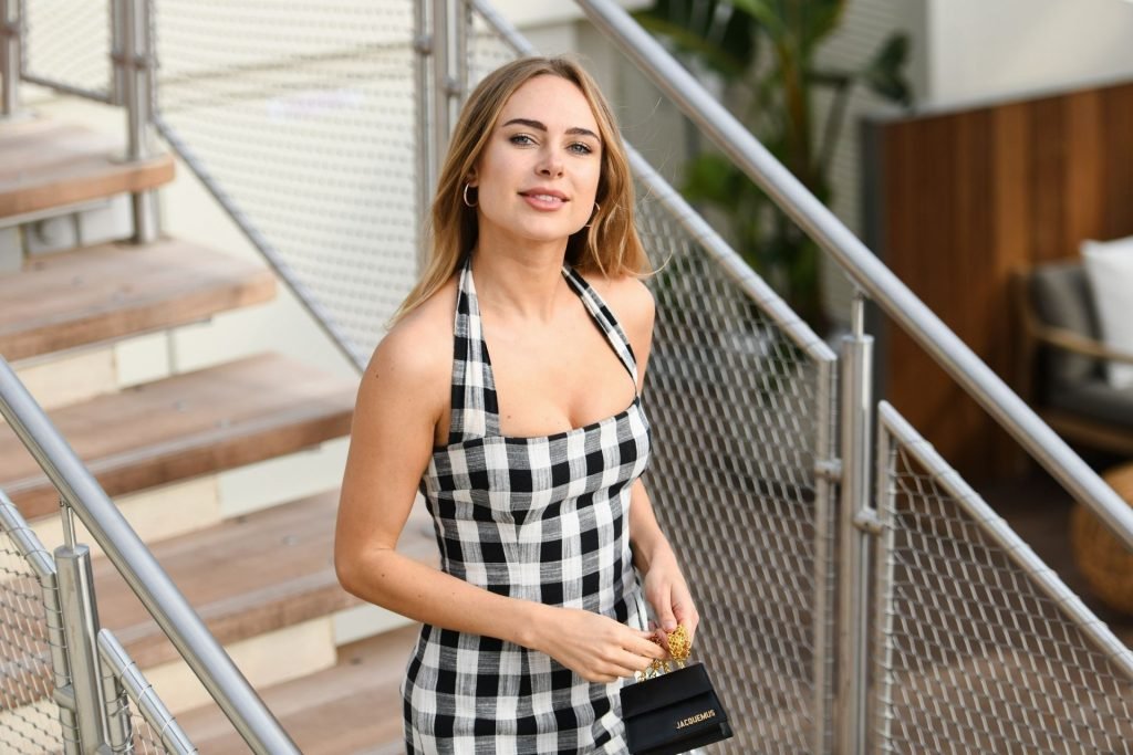 Длинноногие Кимберли Гарнер в клетчатом платье на Каннском кинофестивале в Каннах, Франция, 22.05.2019.