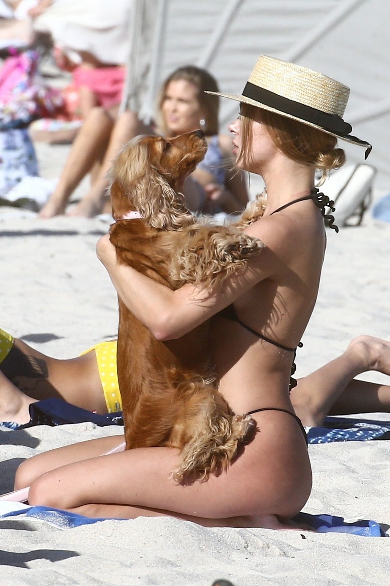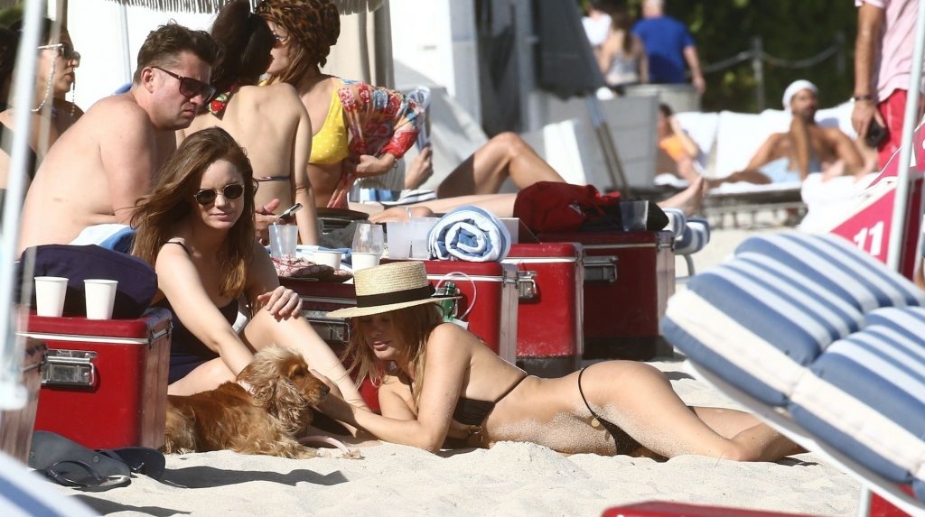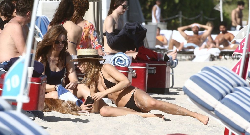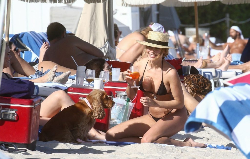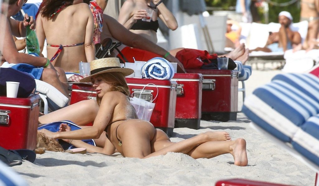Дизайнер купальников Кимберли Гарнер демонстрирует свою невероятно подтянутую фигуру, отдыхая на песке в солнечном Майами-Бич, 13.01.2020. Британская модная инфлюенсерша позже принимает душ на улице, чтобы смыть песок с ягодиц.