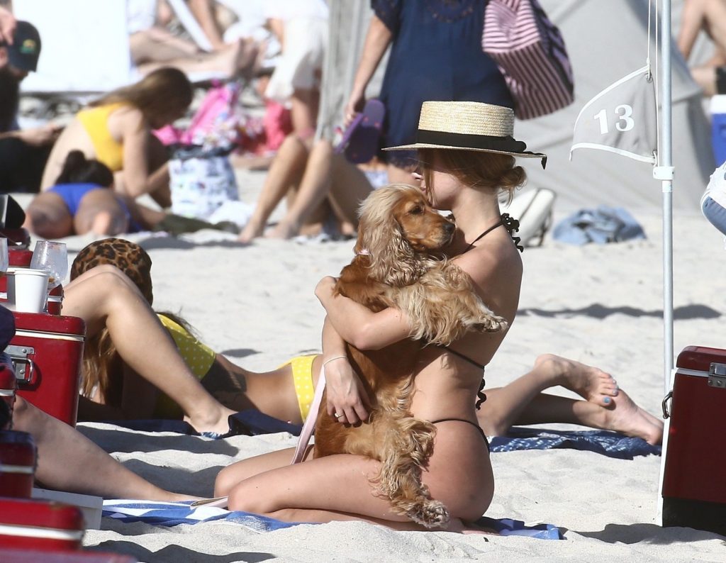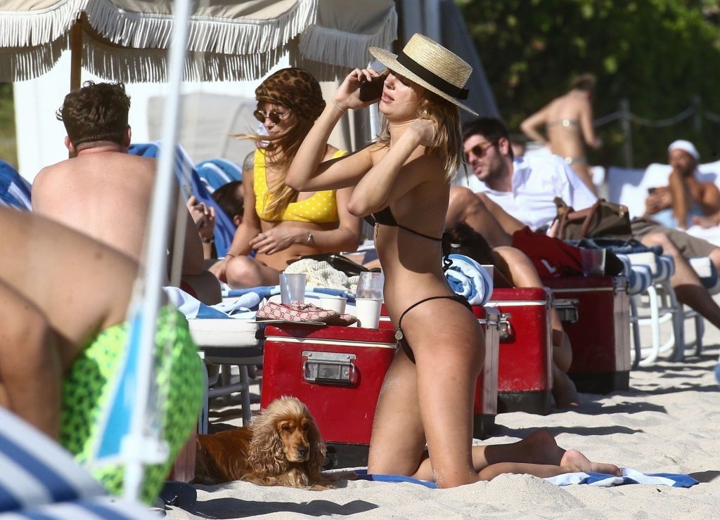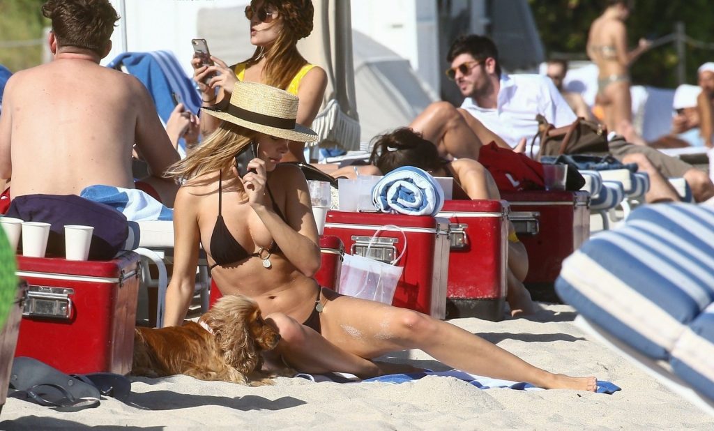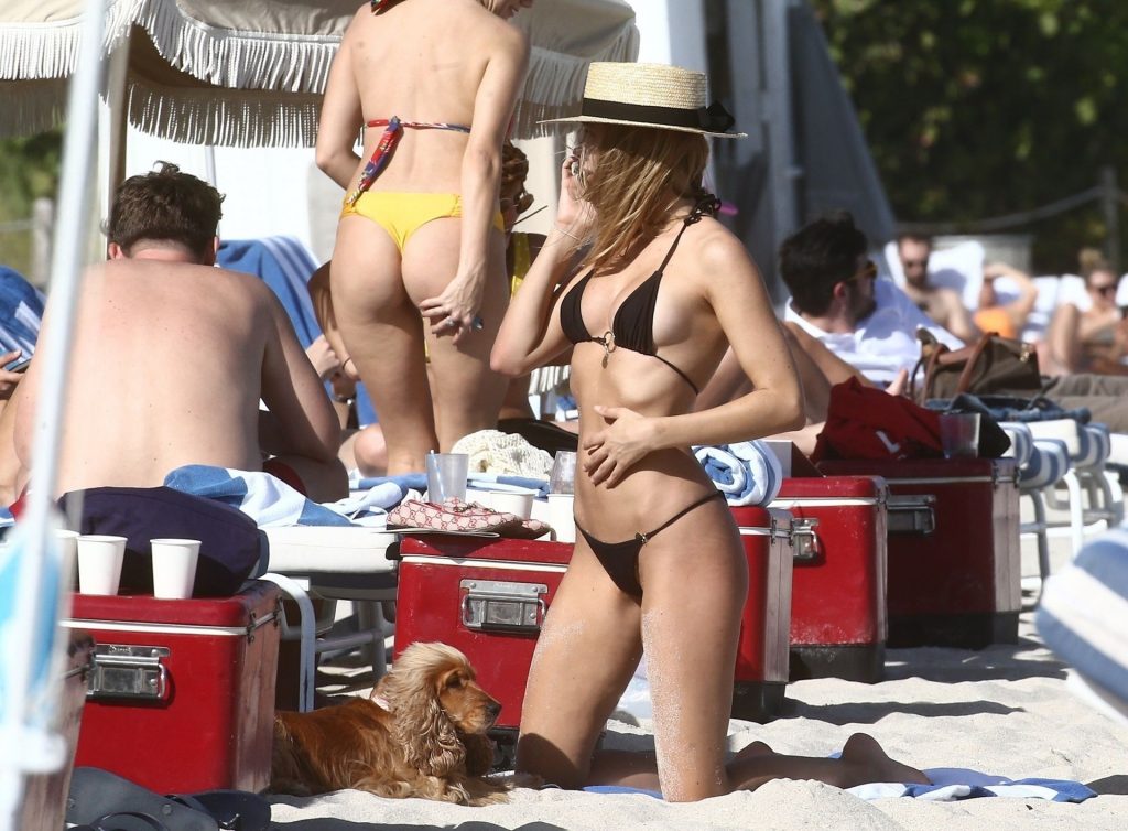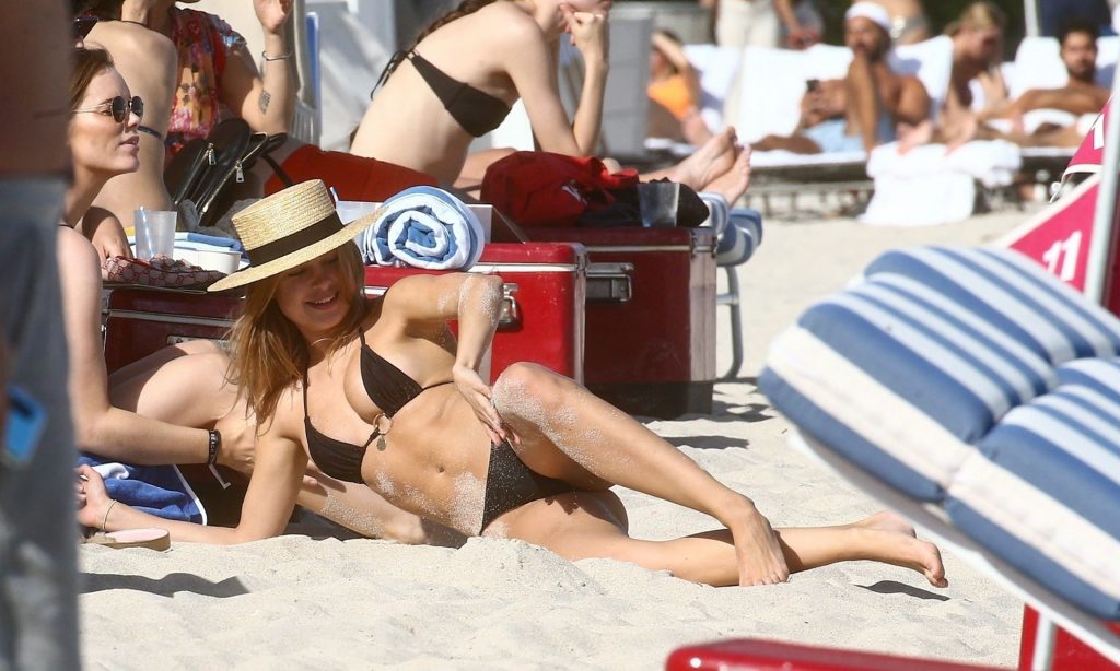 Дизайнер купальников Кимберли Гарнер демонстрирует свою невероятно подтянутую фигуру, отдыхая на песке в солнечном Майами-Бич, 13.01.2020. Британская модная инфлюенсерша позже принимает душ на улице, чтобы смыть песок с ягодиц.