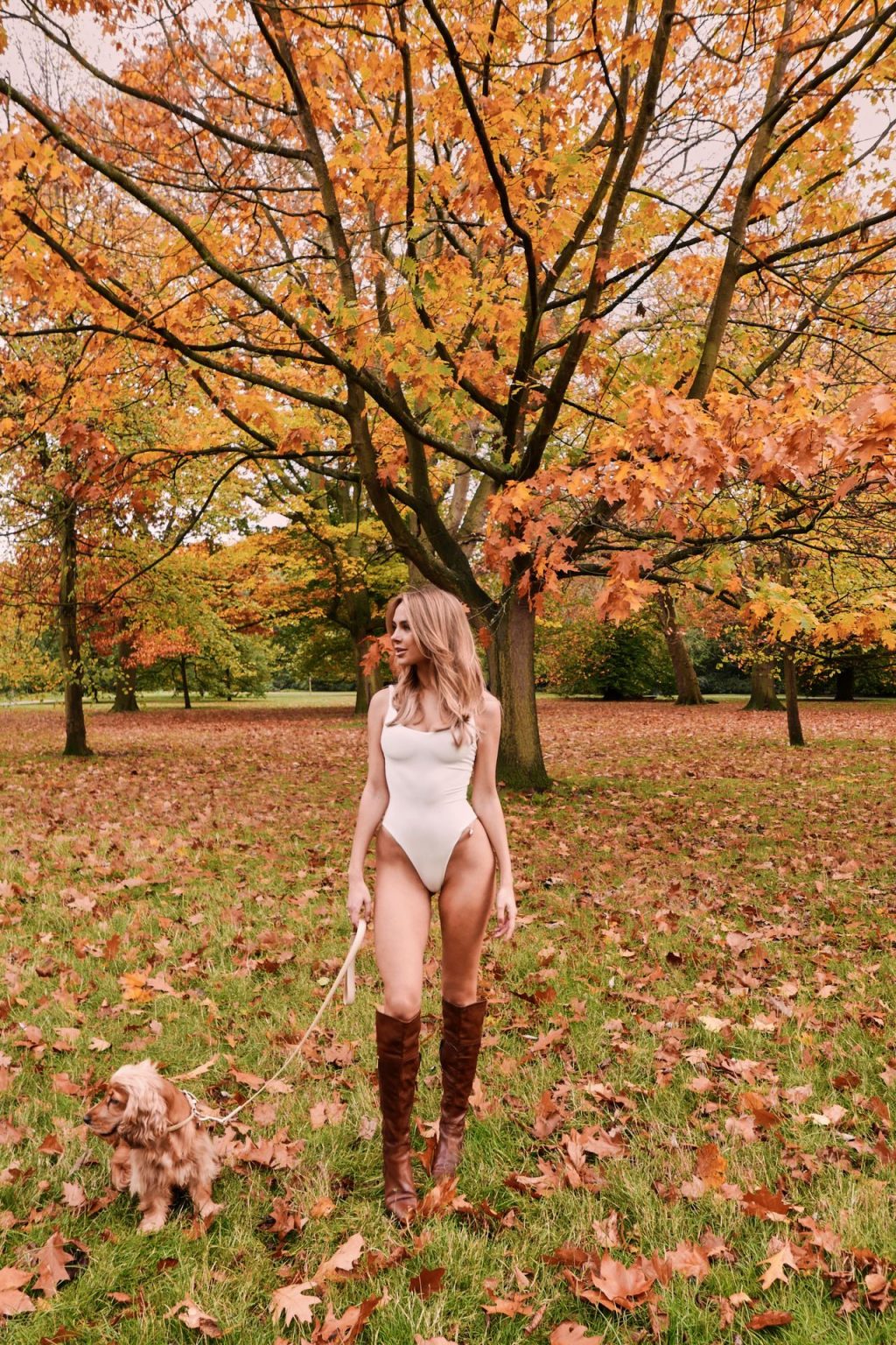 Кимберли Гарнер демонстрирует свое сексуальное тело и сочную попу, позируя в белом купальнике в Гайд-парке в Лондоне, 21.11.2019.