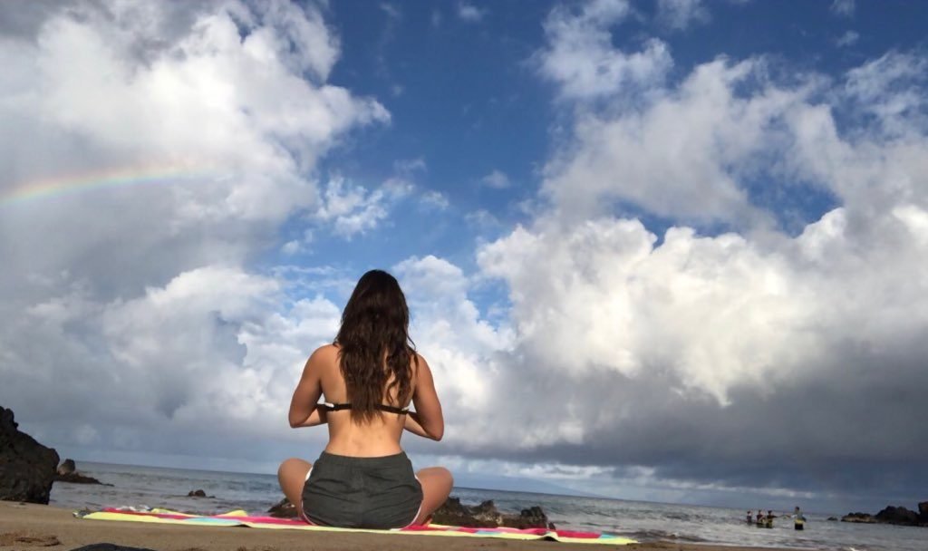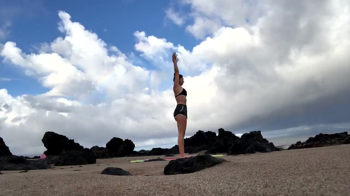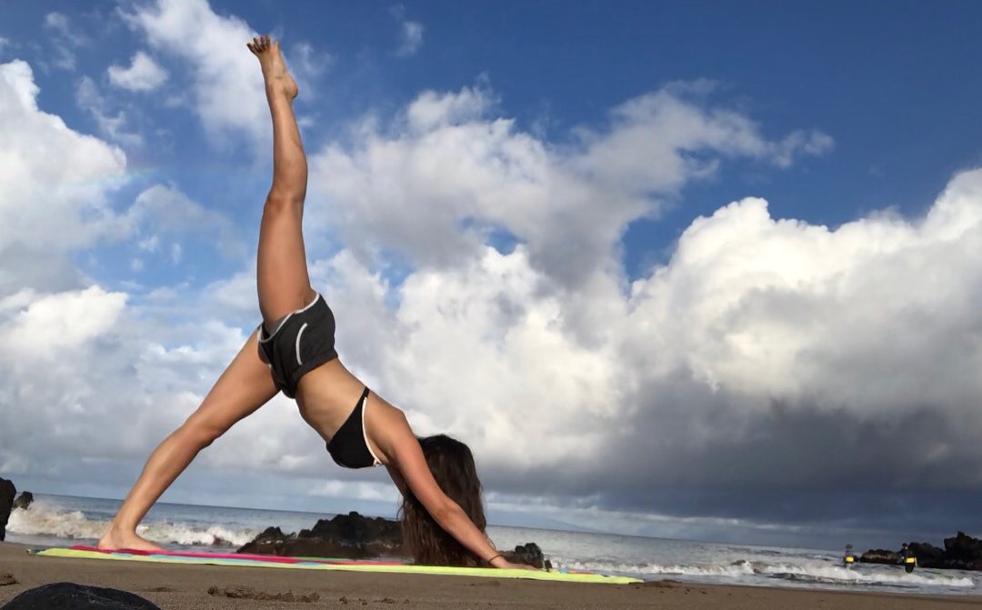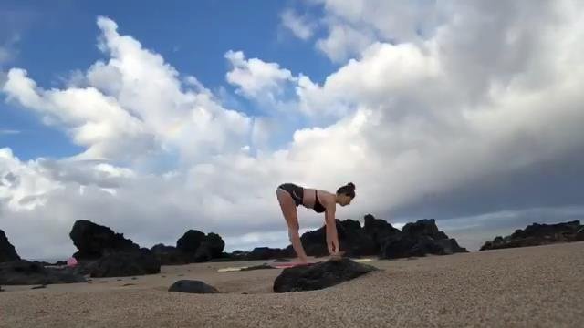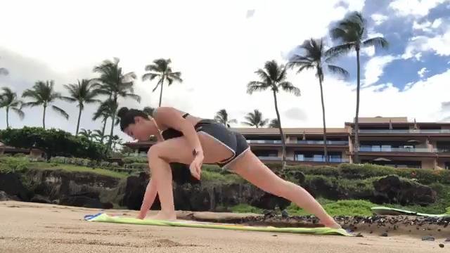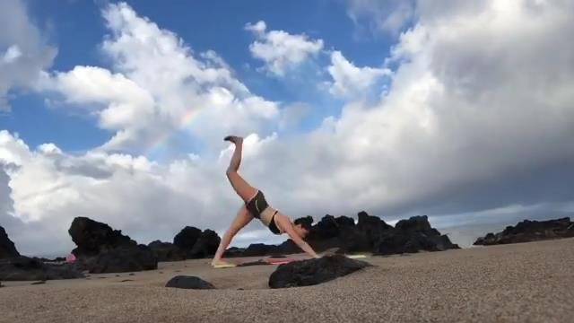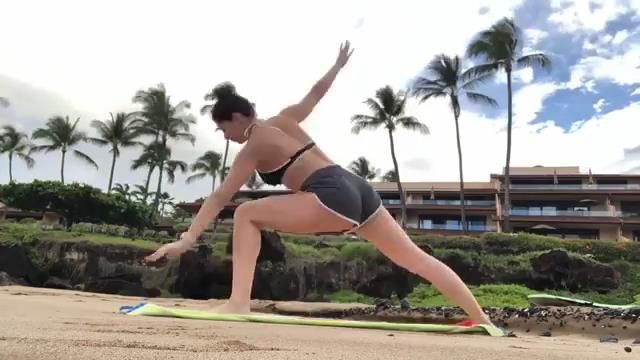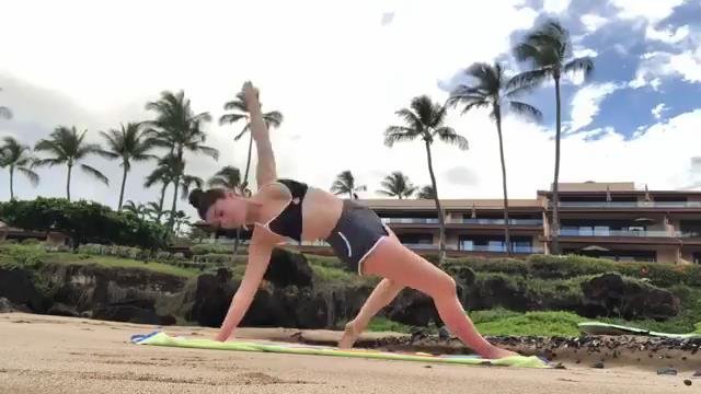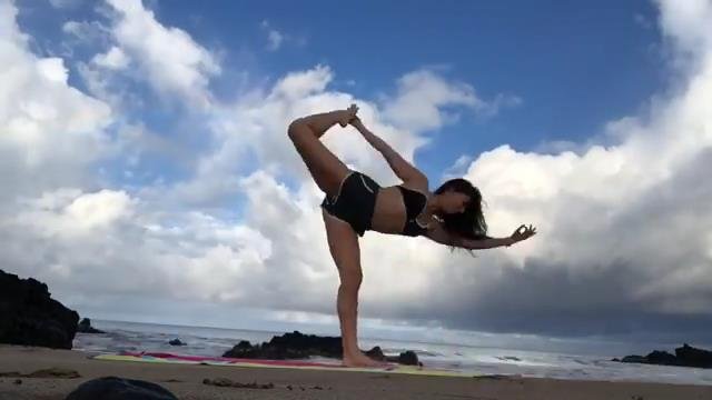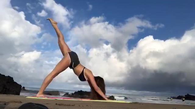 Небольшой фрагмент утренней практики йоги Киры Косарин на пляже. Кира Косарин — телеведущая актриса (Семейка Громов) из Бока-Ратон, Флорида. Возраст — 20.